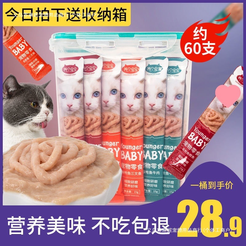 Лакомства для кошек 60 штук/ведро, полоски для кошек, жирные волосы, сушеная рыба для взрослых кошек и котят, пакет влажных кормов с соусом для лизания кошек быстрого приготовления