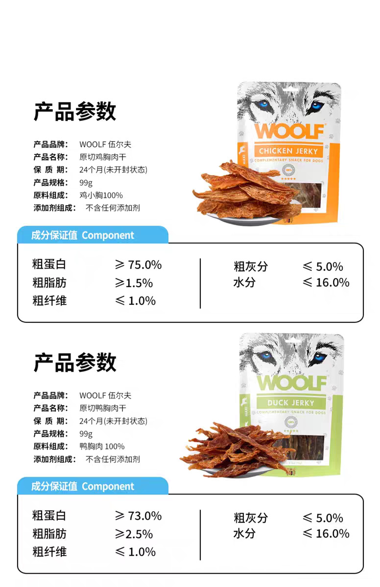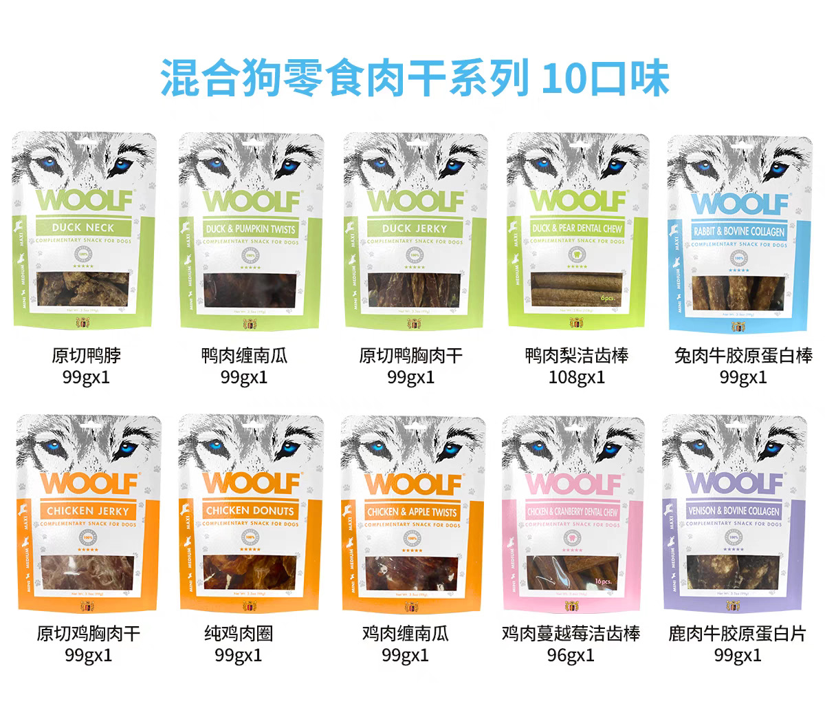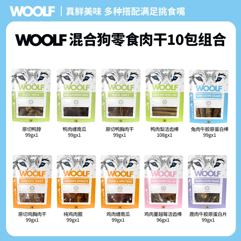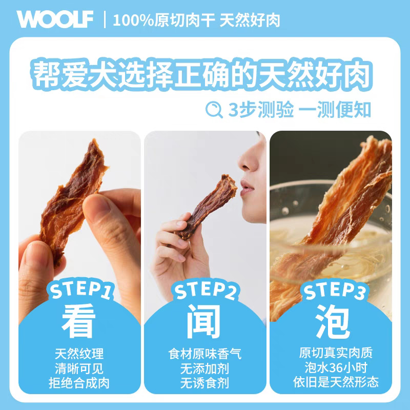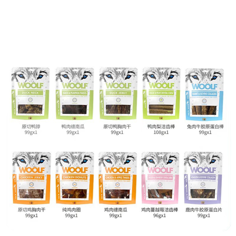 WOOLF Сухое мясо волка, закуски для прорезывания зубов для собак, чистое мясо, сушка, обучение, интерактивные закуски для поощрения