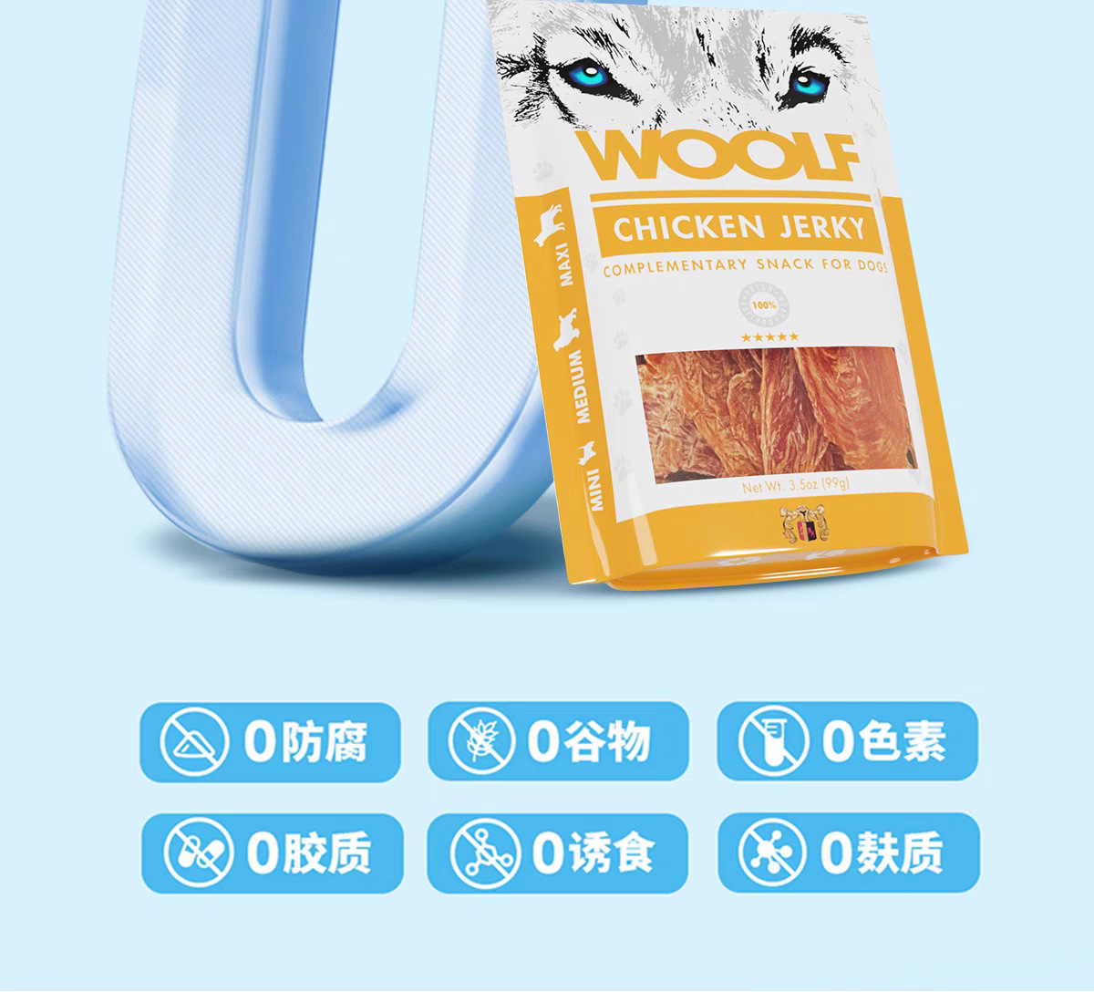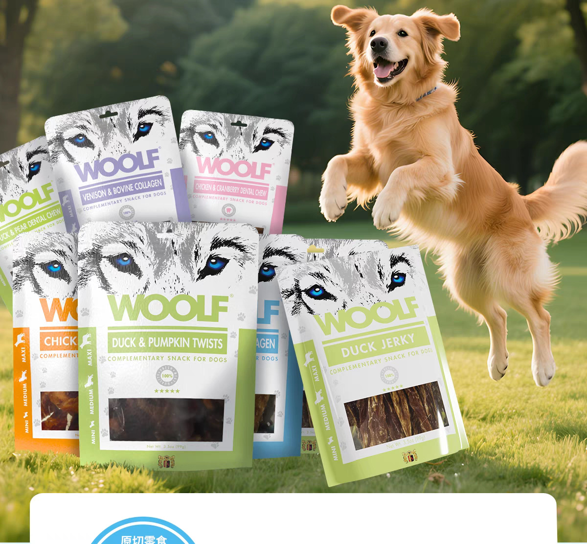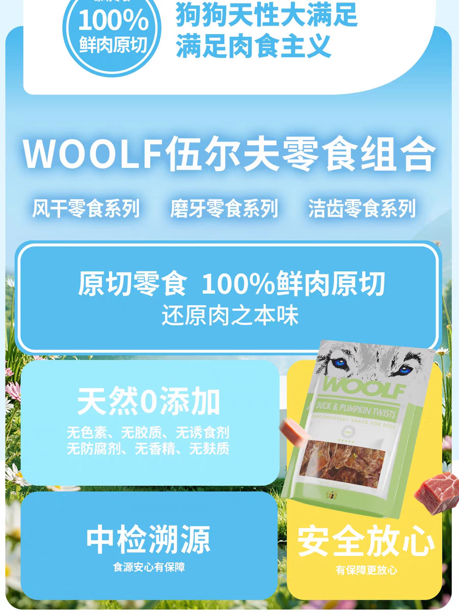 WOOLF Сухое мясо волка, закуски для прорезывания зубов для собак, чистое мясо, сушка, обучение, интерактивные закуски для поощрения
