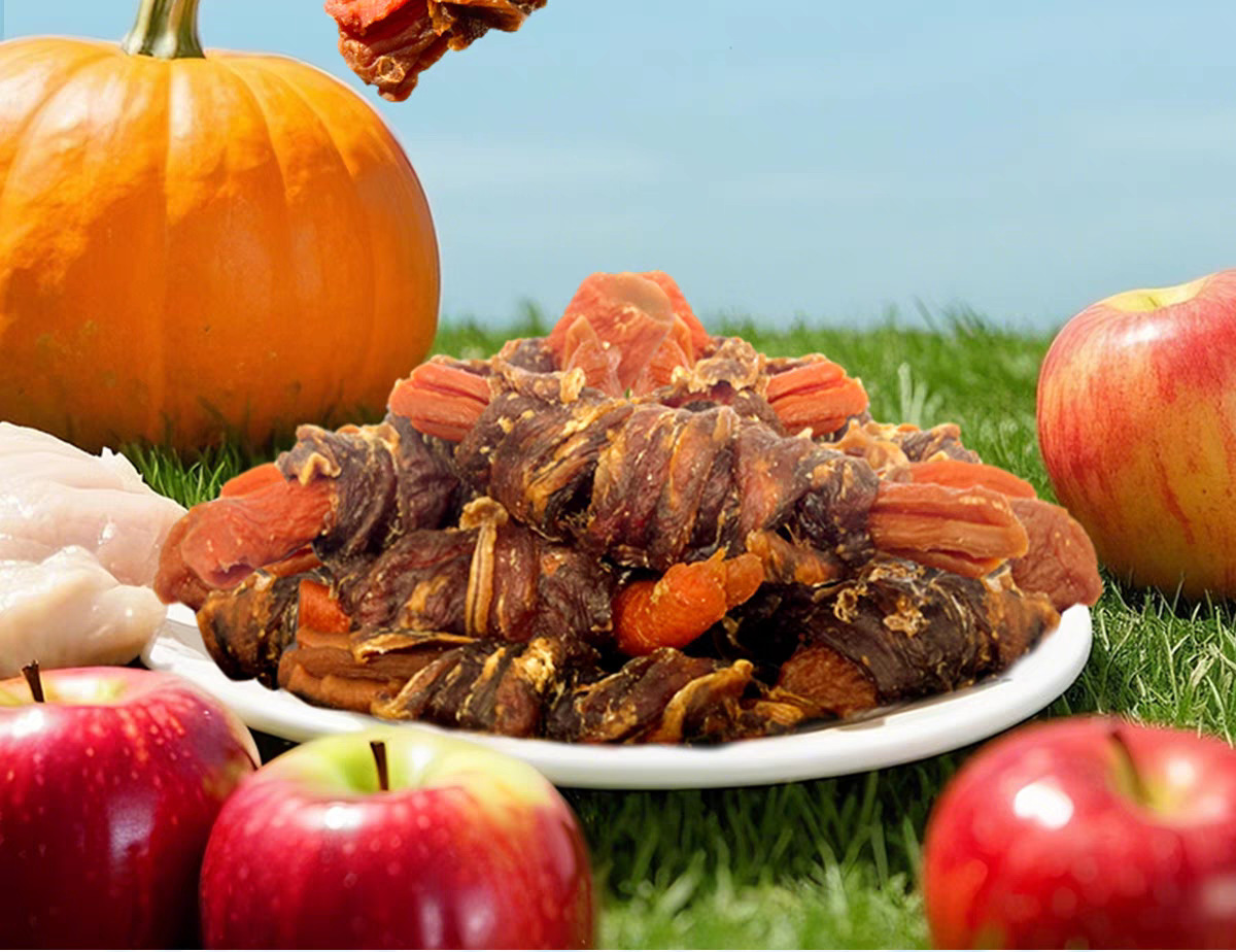Начинка из куриной грудки для собак 99г; Нарезка из утиной грудки, закуски для собак 99г; Вяленая куриная грудка для собак 907г; Вяленая грудка утки, собачьи закуски 907г