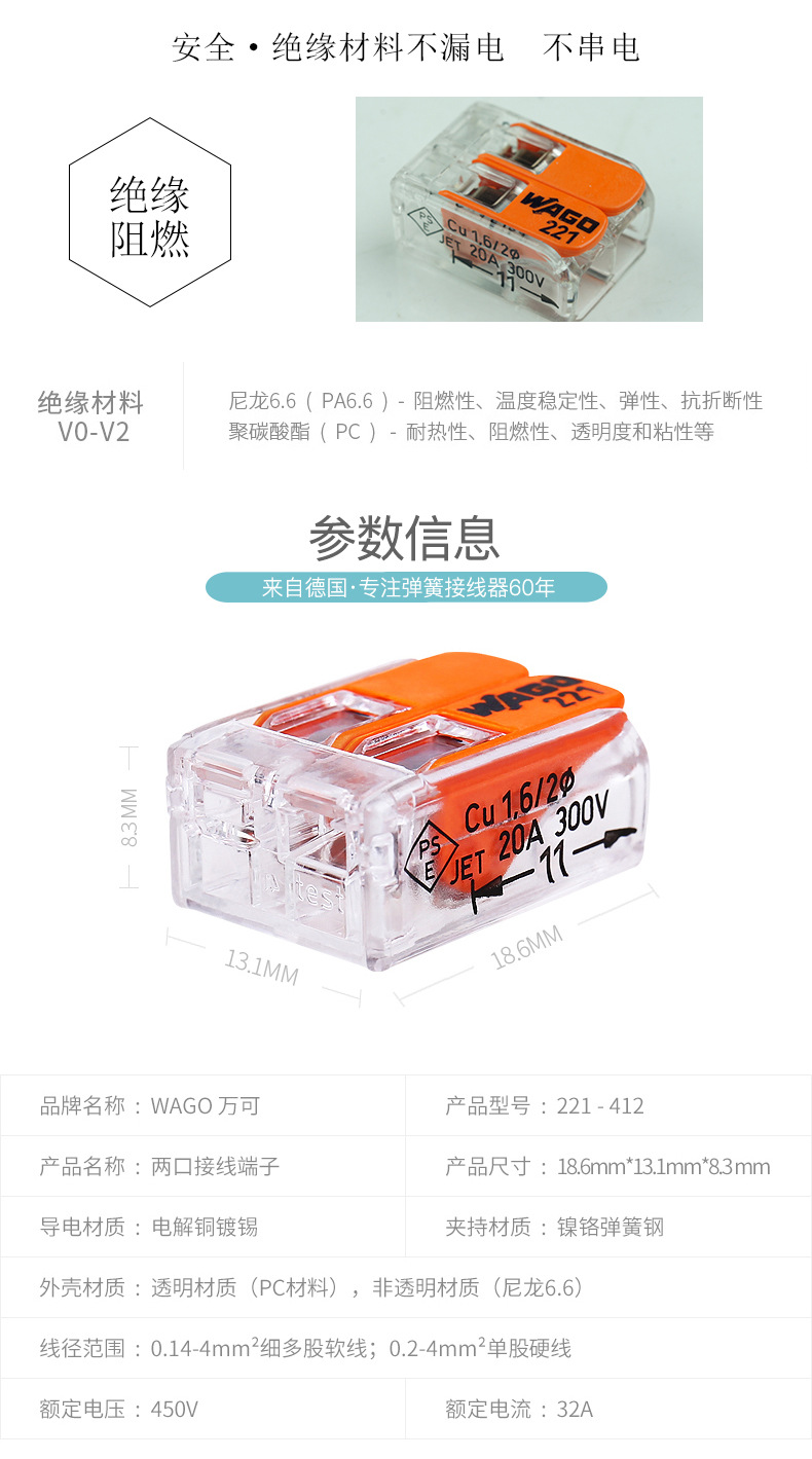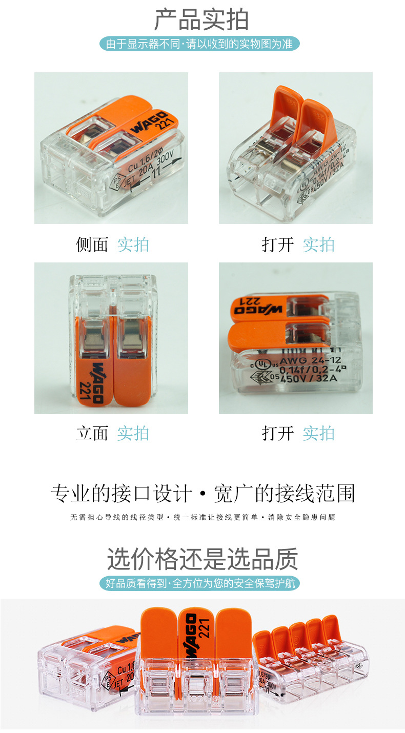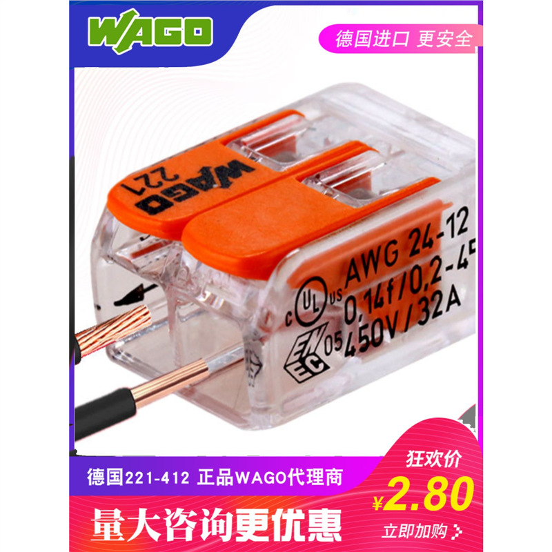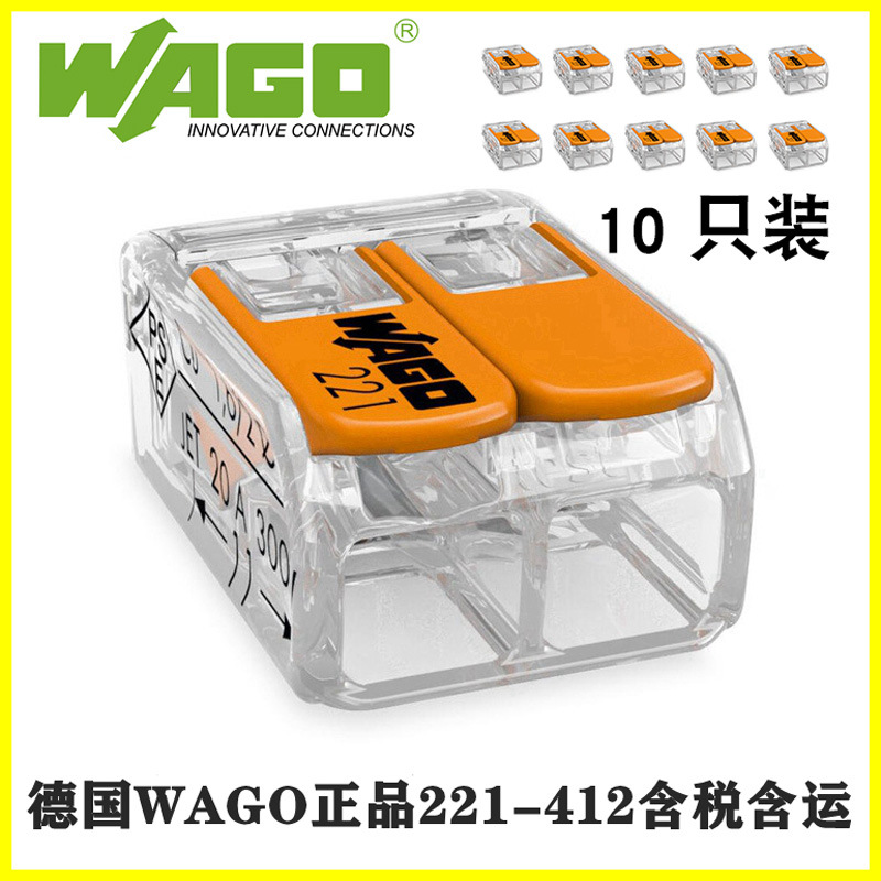 Немецкий клеммный блок WAGO 221-412, разъем для лампы, быстрый разъем, 10 шт., бесплатная доставка