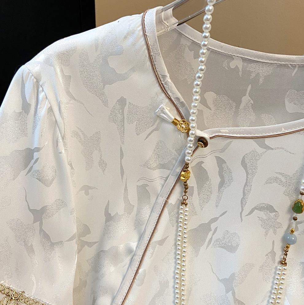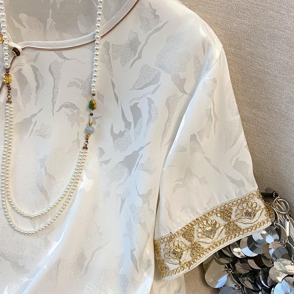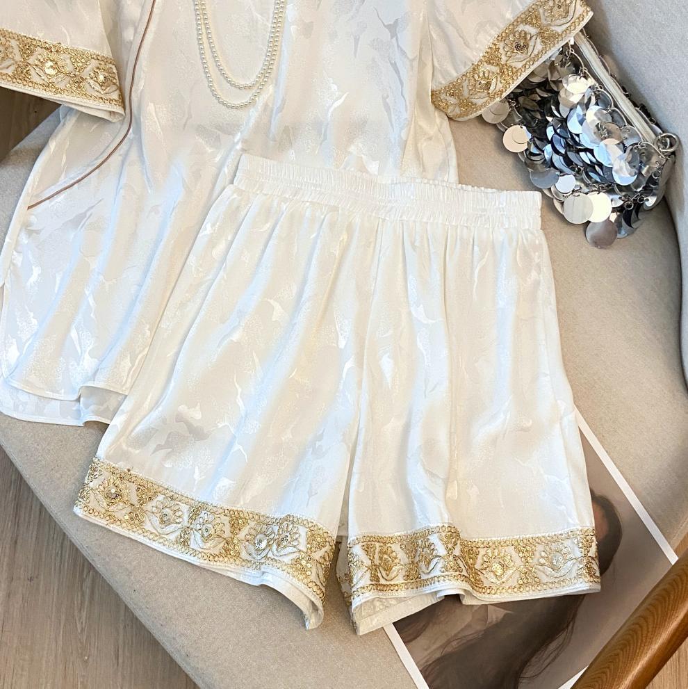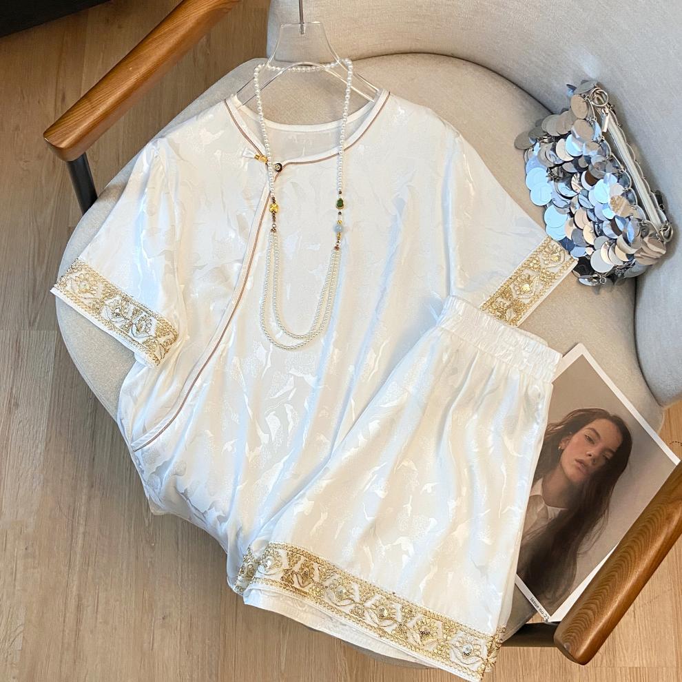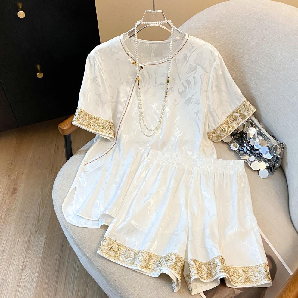 Фактический снимок нового летнего костюма в китайском стиле 2025 года, атласный жаккард, ретро, тяжелая вышивка, комплект из двух предметов