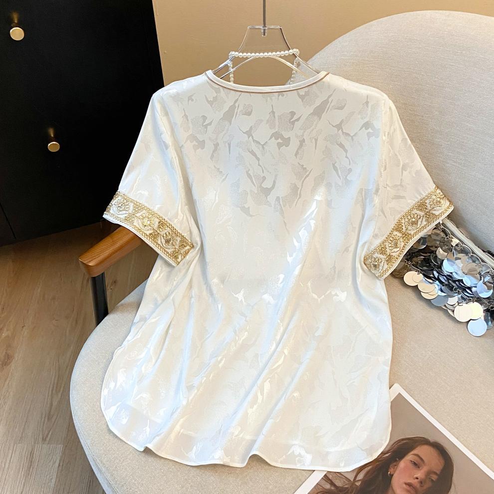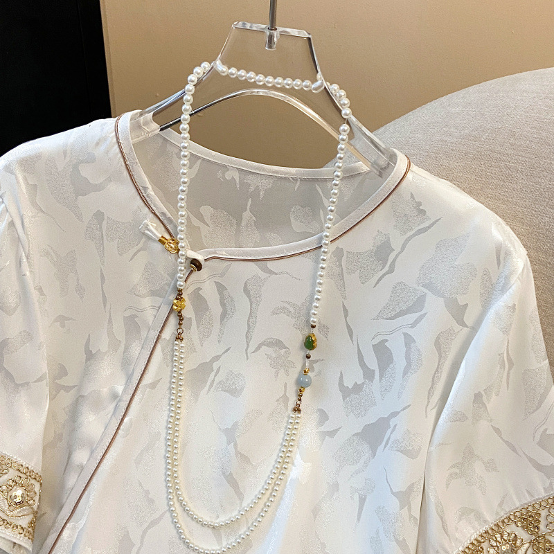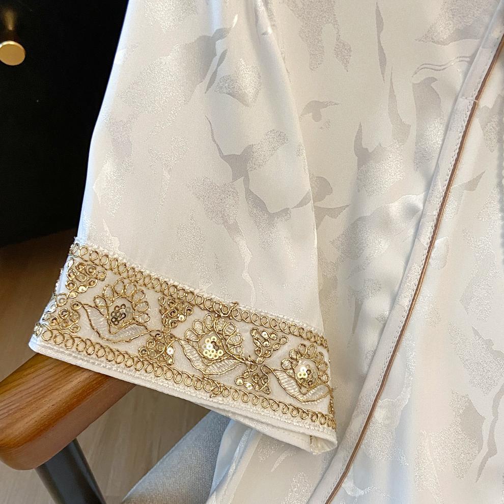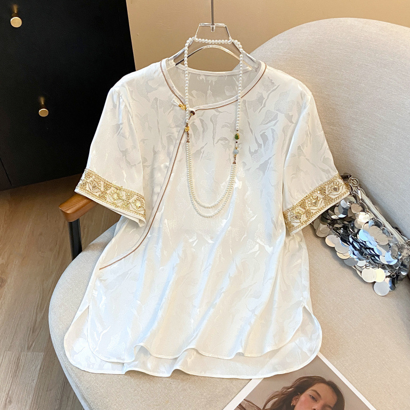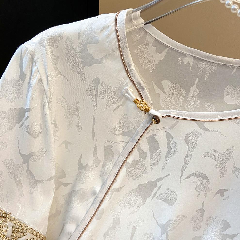 Фактический снимок нового летнего костюма в китайском стиле 2025 года, атласный жаккард, ретро, тяжелая вышивка, комплект из двух предметов