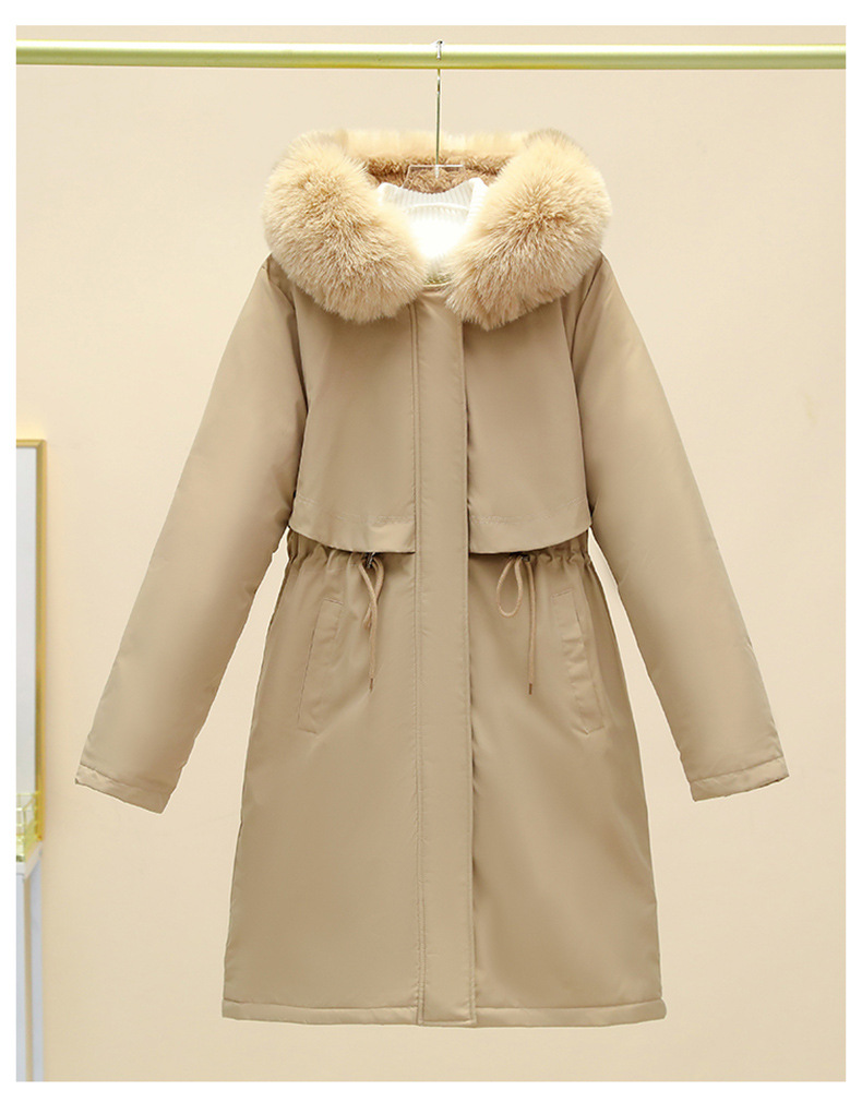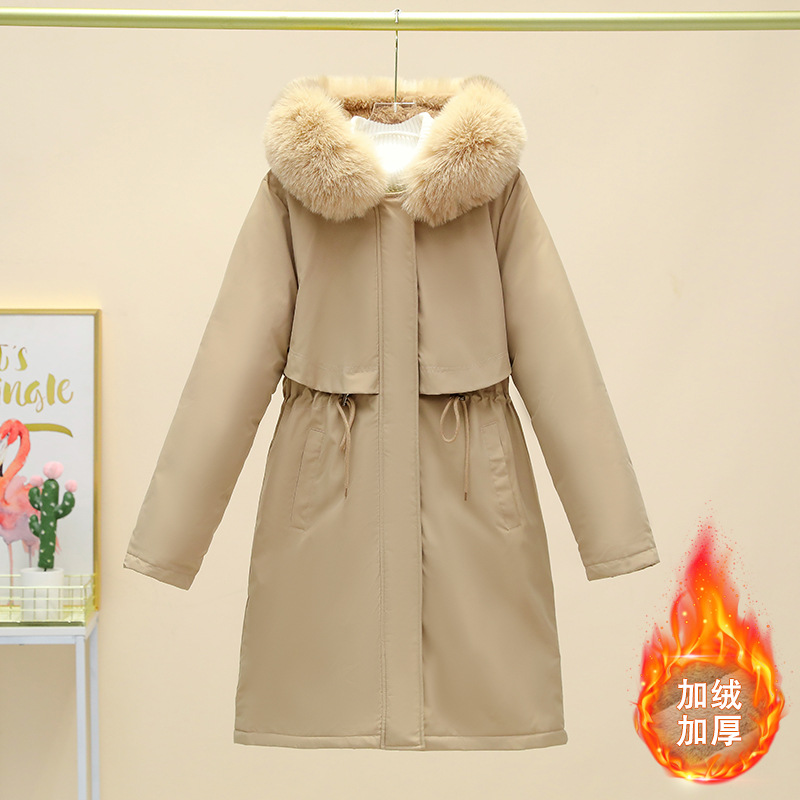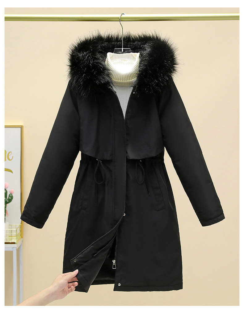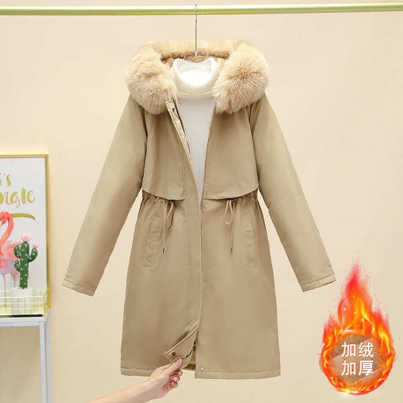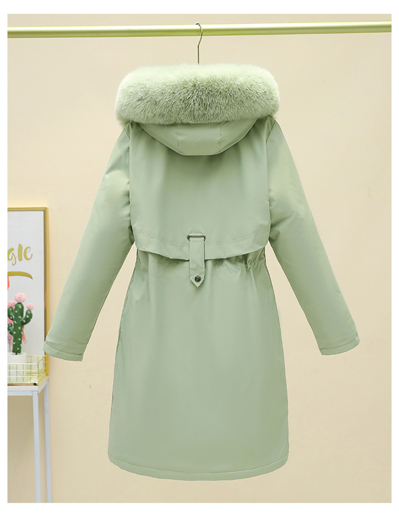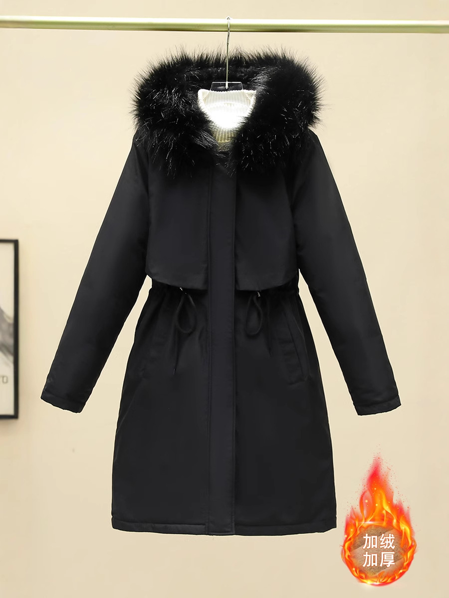 Женская толстая парка на флисовой подкладке, новинка 2025 года, хлопковое пальто средней длины, зимняя корейская версия, свободного кроя с большим меховым воротником.