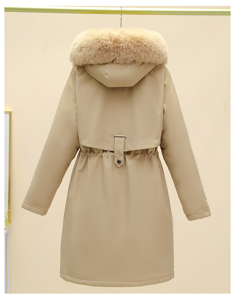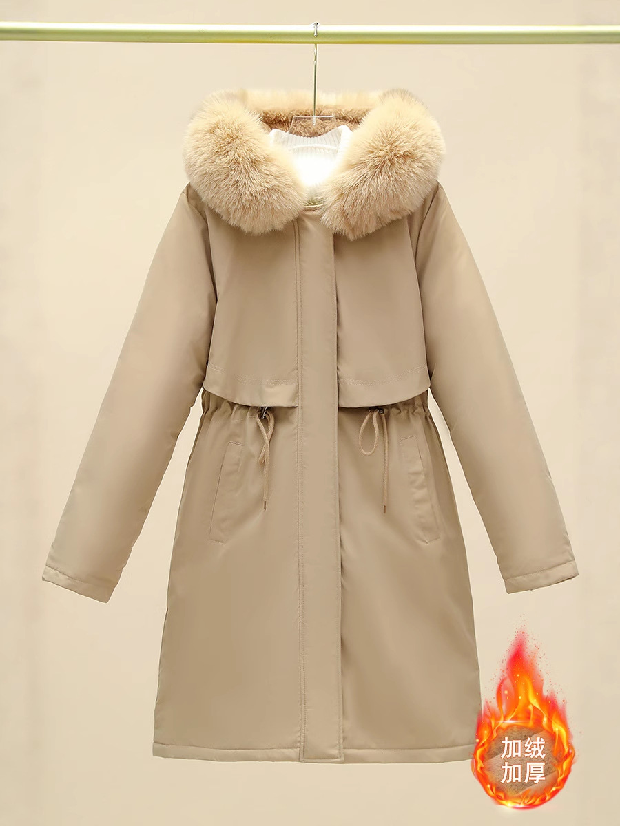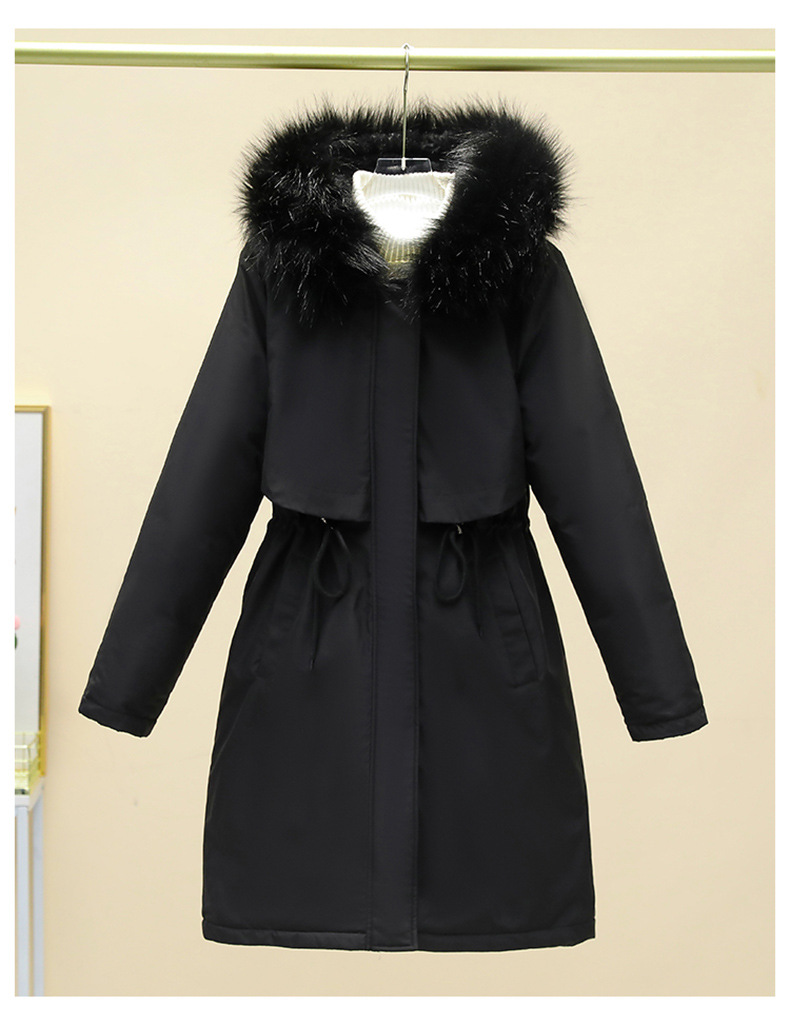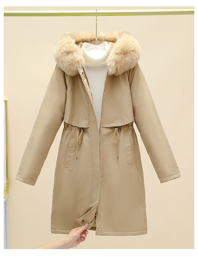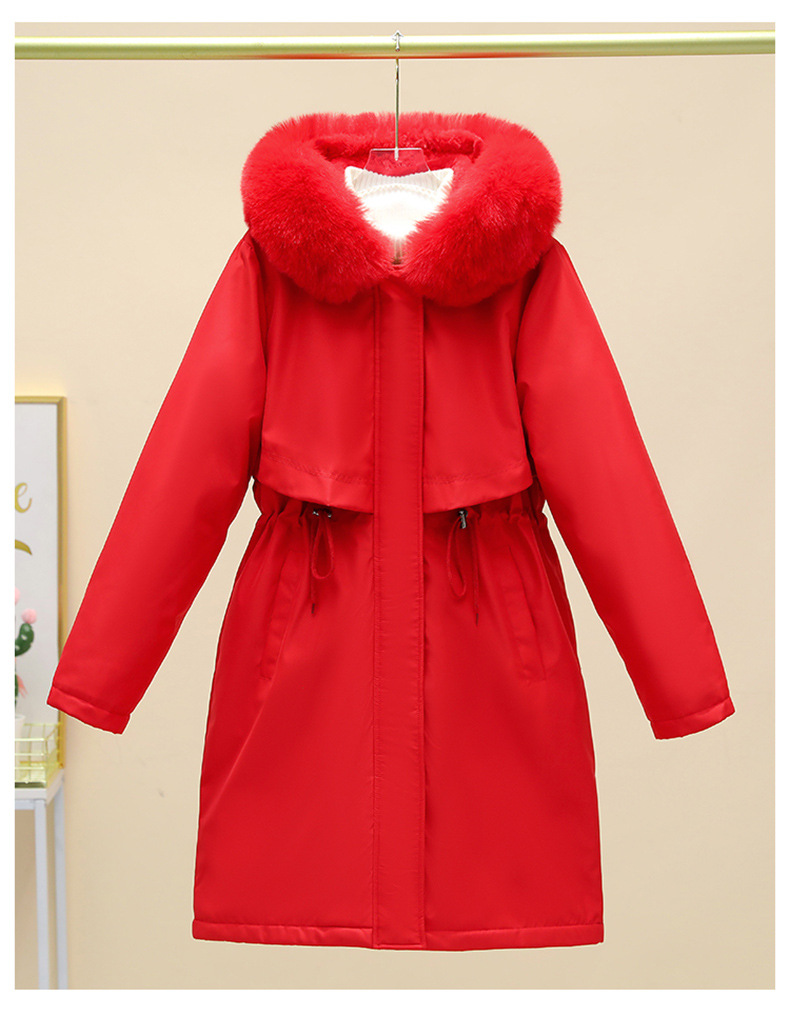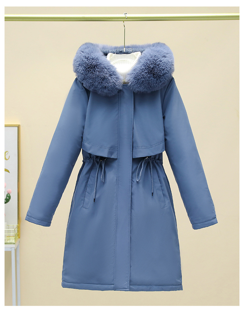 Женская толстая парка на флисовой подкладке, новинка 2025 года, хлопковое пальто средней длины, зимняя корейская версия, свободного кроя с большим меховым воротником.