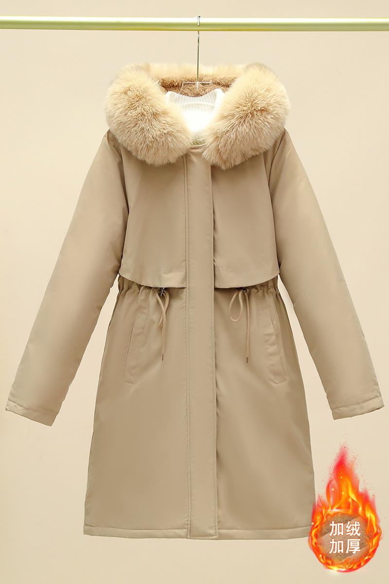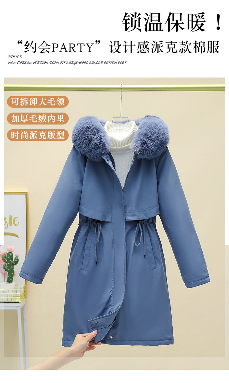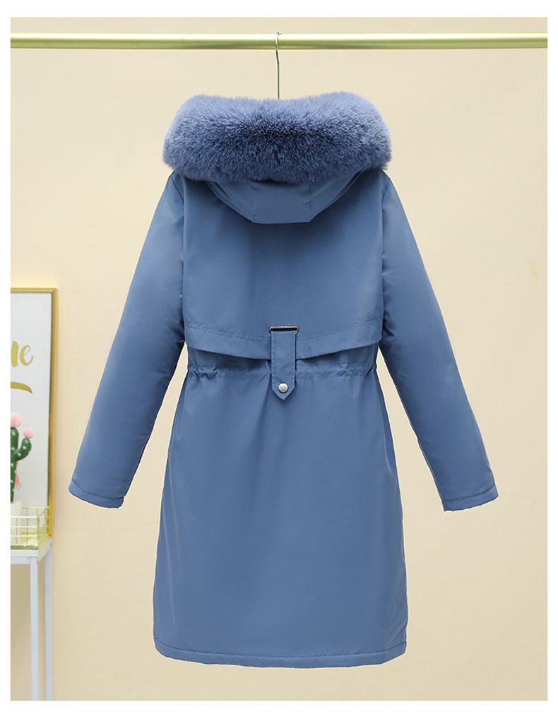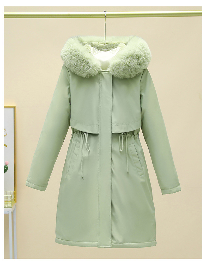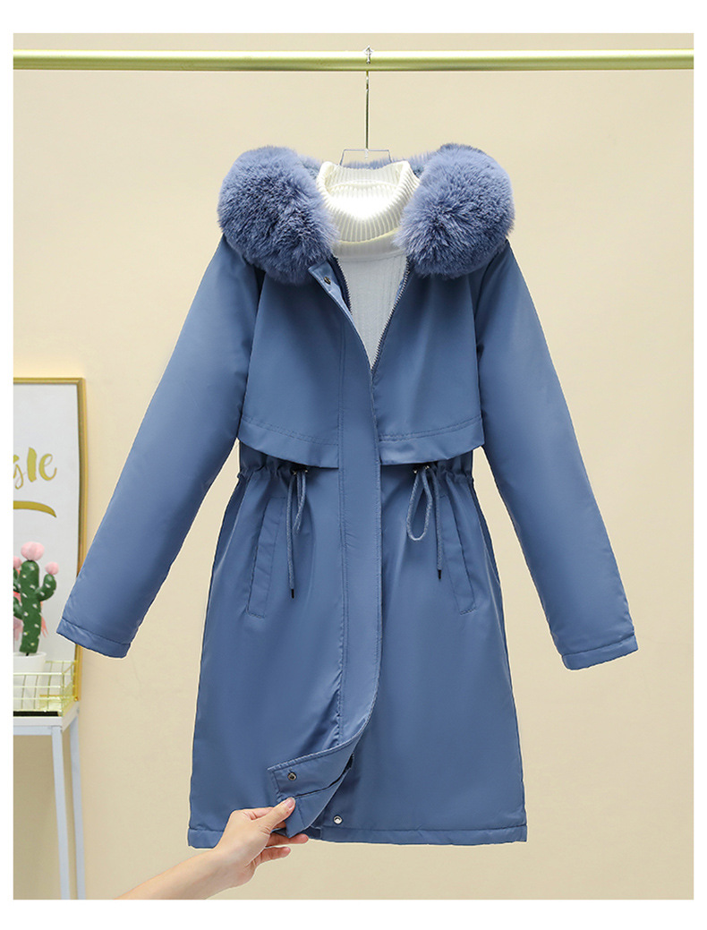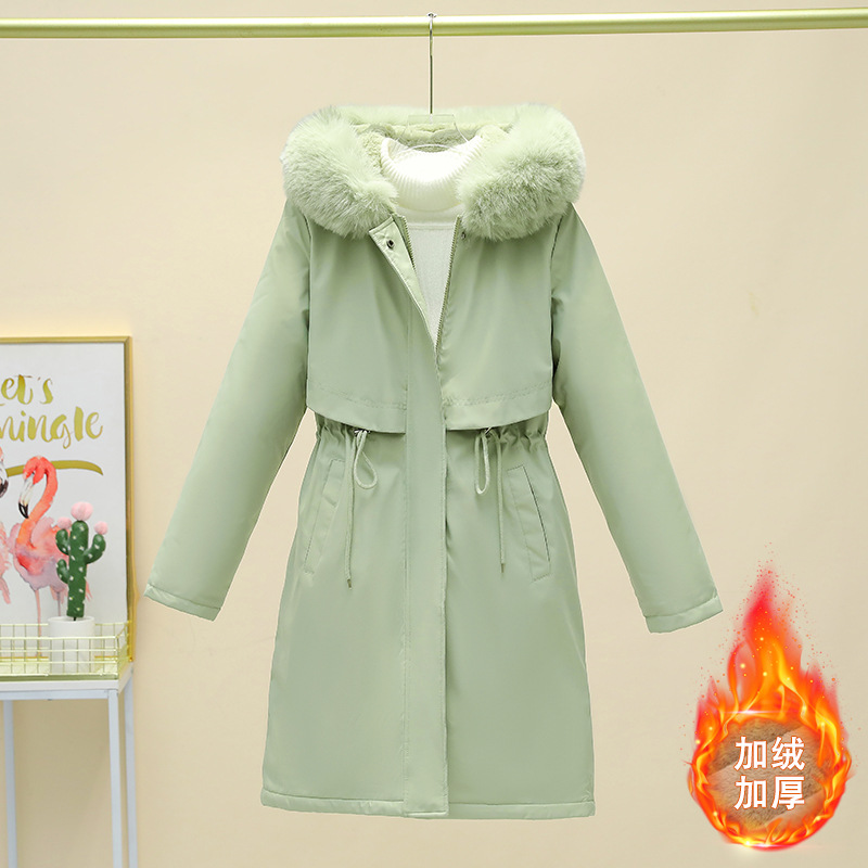 Женская толстая парка на флисовой подкладке, новинка 2025 года, хлопковое пальто средней длины, зимняя корейская версия, свободного кроя с большим меховым воротником.