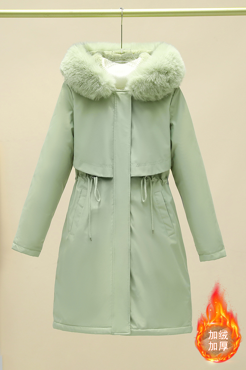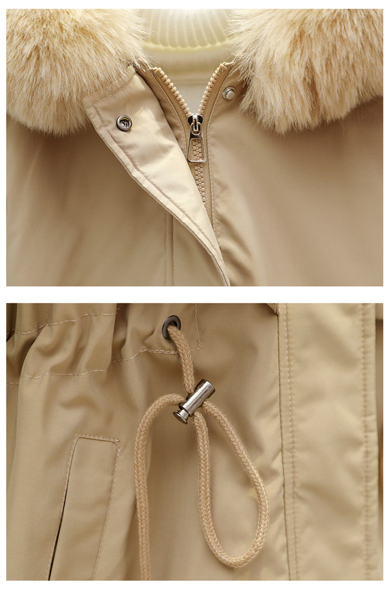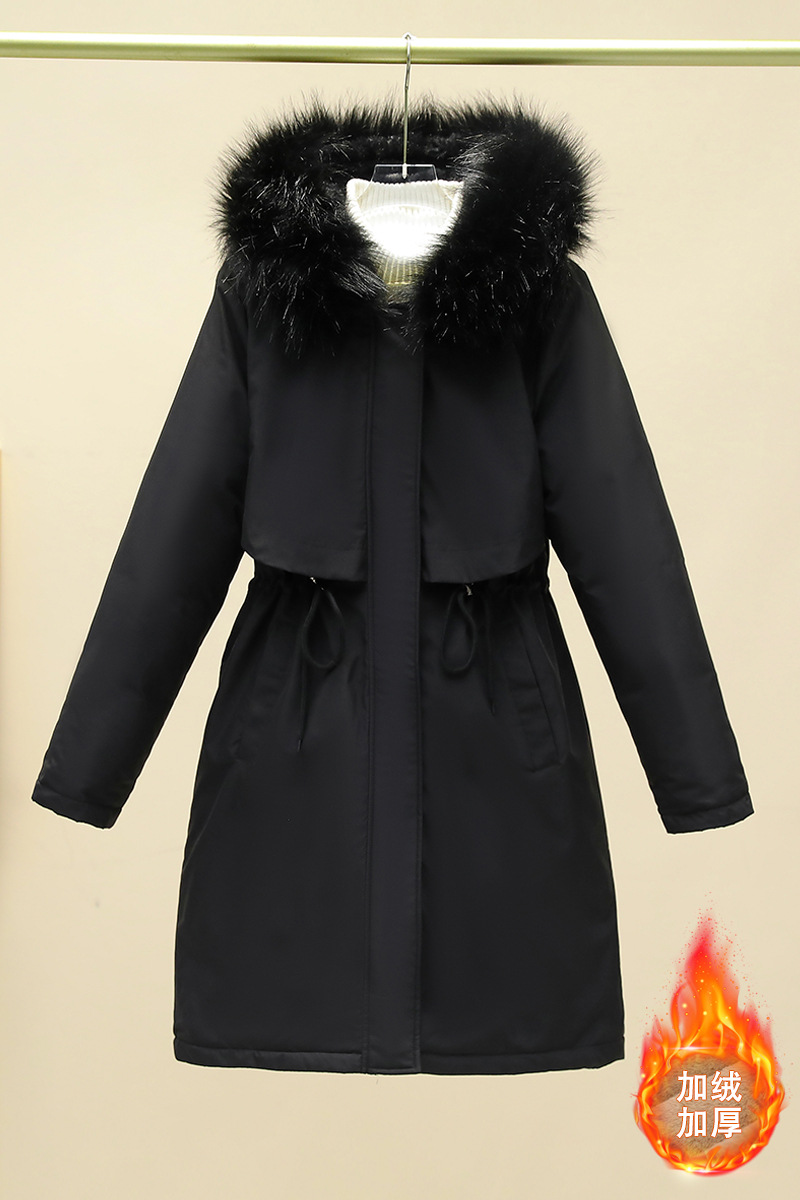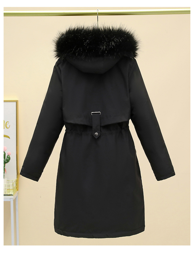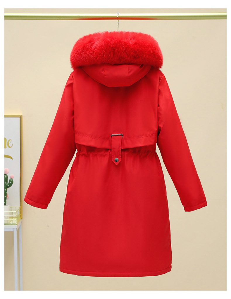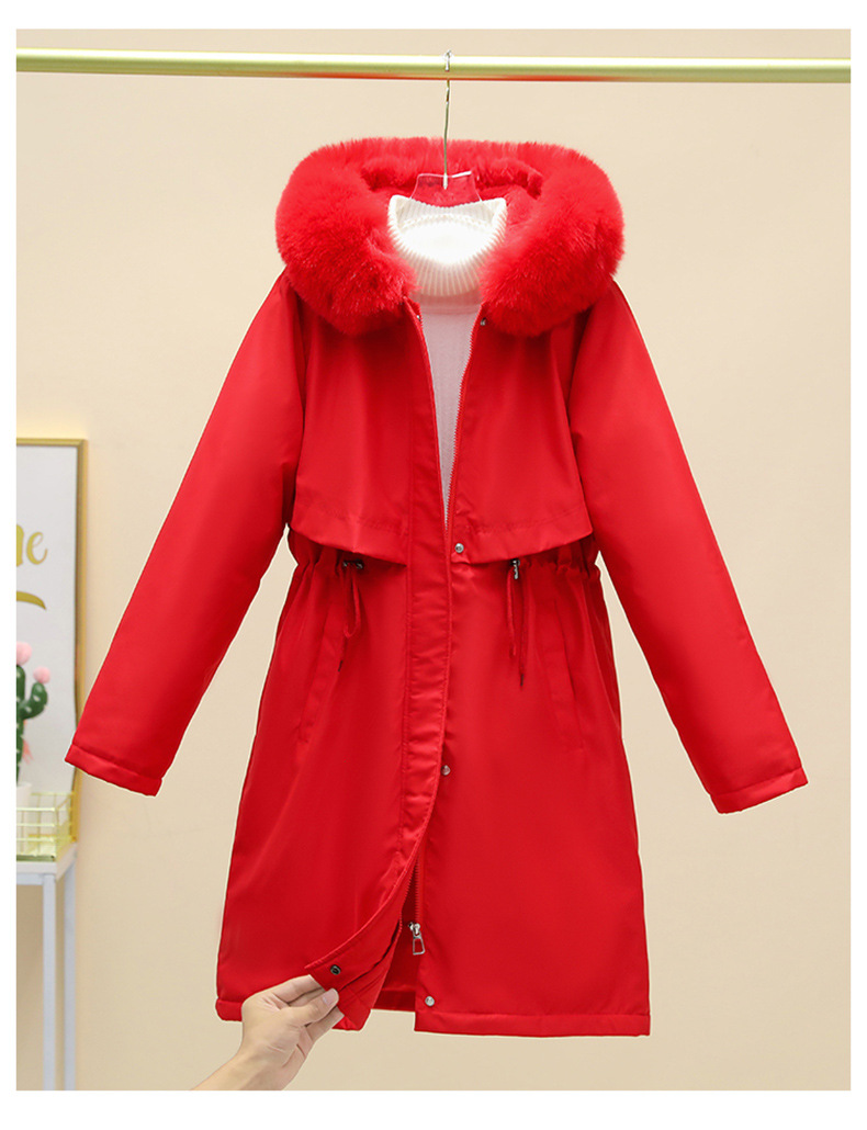 Женская толстая парка на флисовой подкладке, новинка 2025 года, хлопковое пальто средней длины, зимняя корейская версия, свободного кроя с большим меховым воротником.
