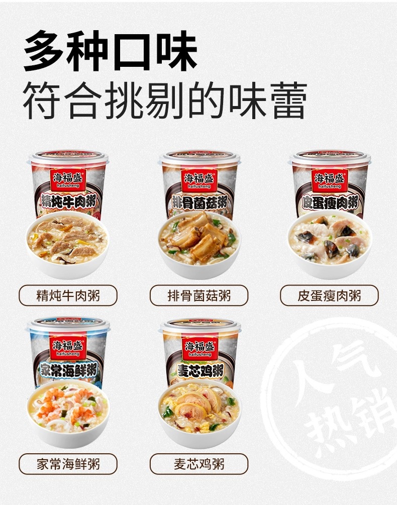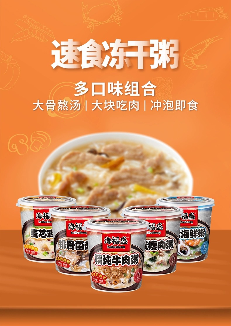 Каша в чашке Haifusheng, лиофилизированная каша, еда для завтрака, готовый к употреблению завтрак, удобный и питательный, питательный для желудка, офисных работников и ленивых людей.