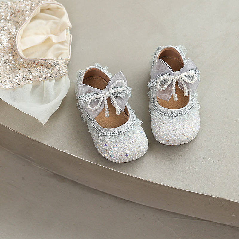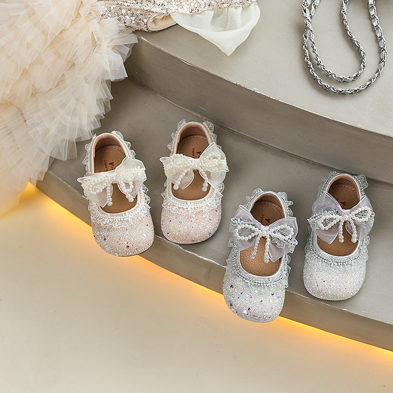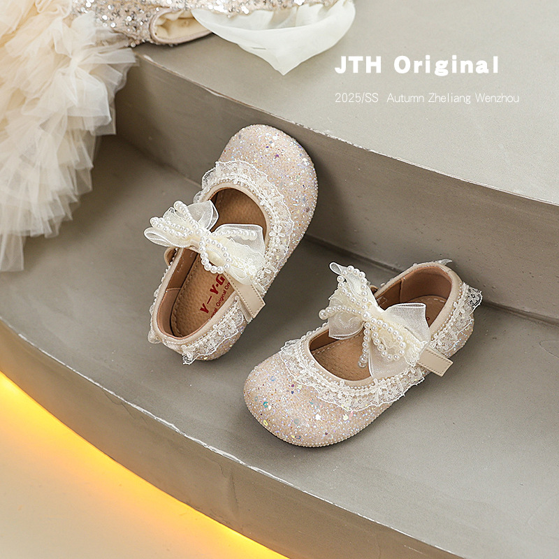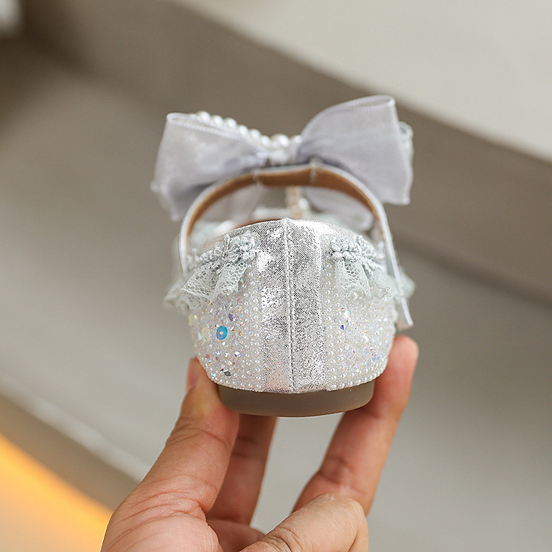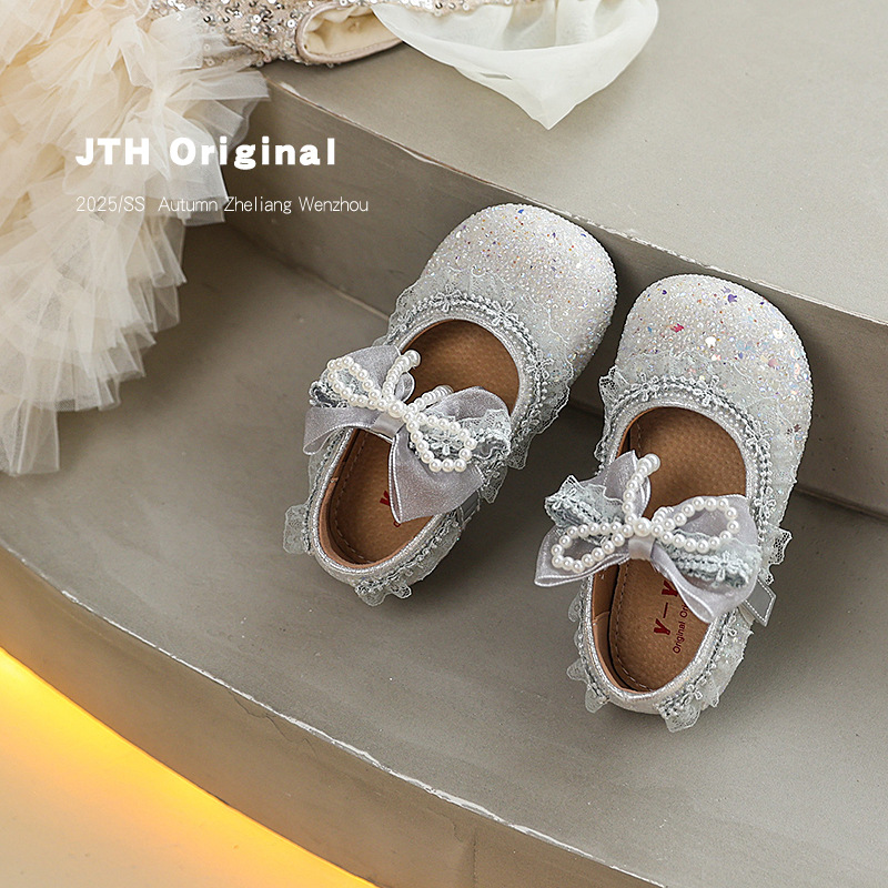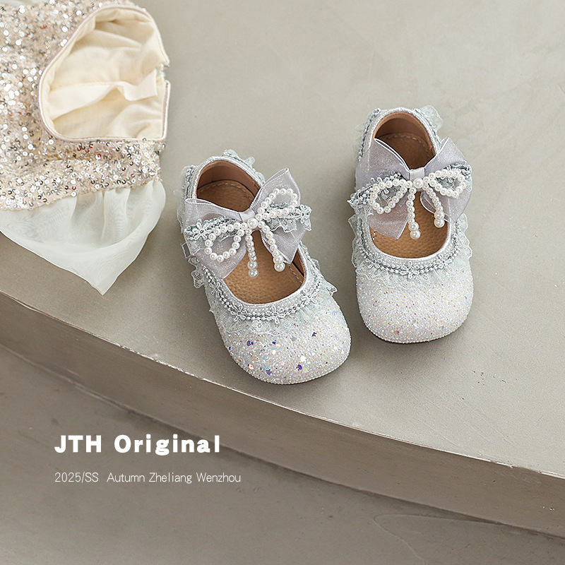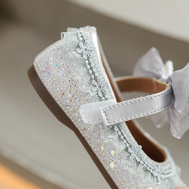 2025 новые осенние девичьи туфли-принцессы с милым бантом, элегантные туфли для девочек с камнями и пайетками, маленькие кожаные туфли для выступлений