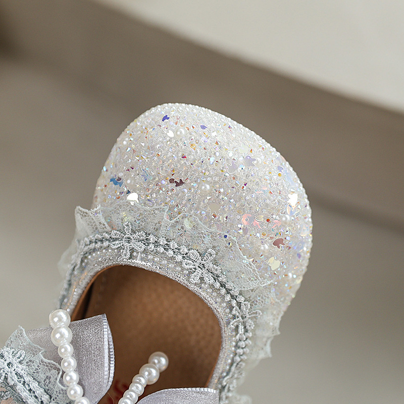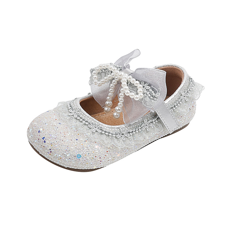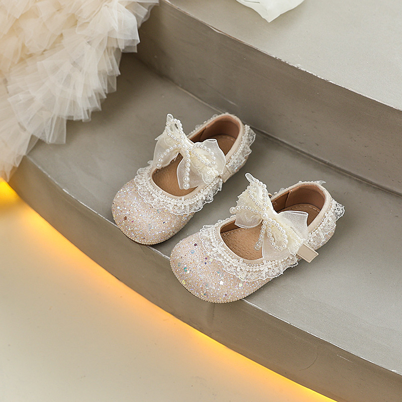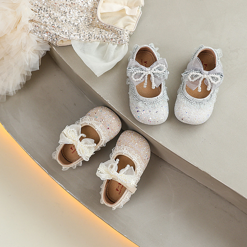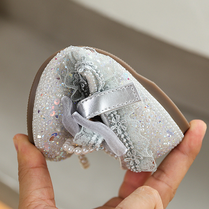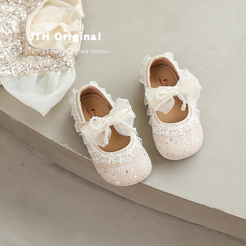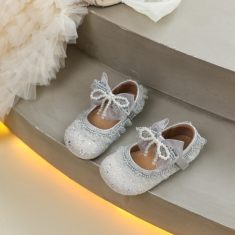 2025 новые осенние девичьи туфли-принцессы с милым бантом, элегантные туфли для девочек с камнями и пайетками, маленькие кожаные туфли для выступлений