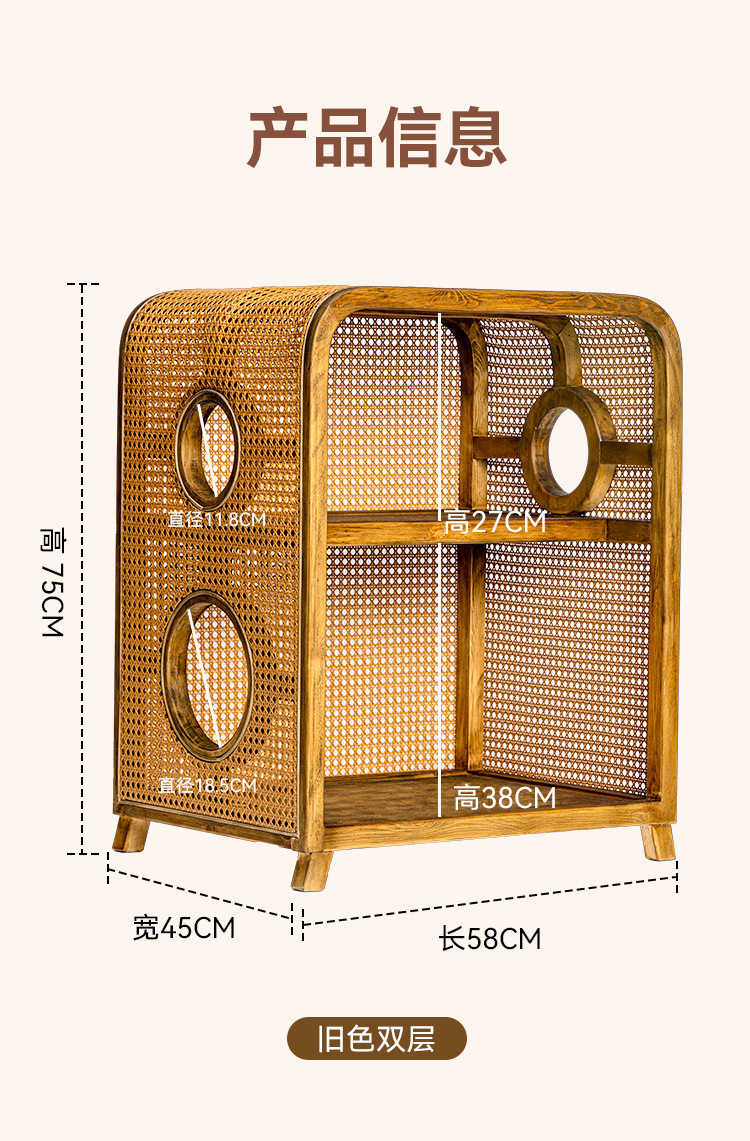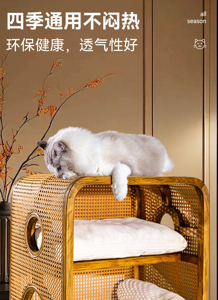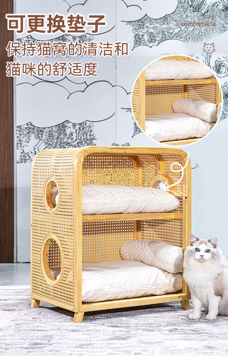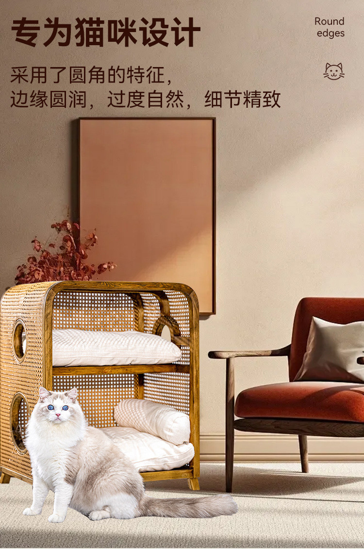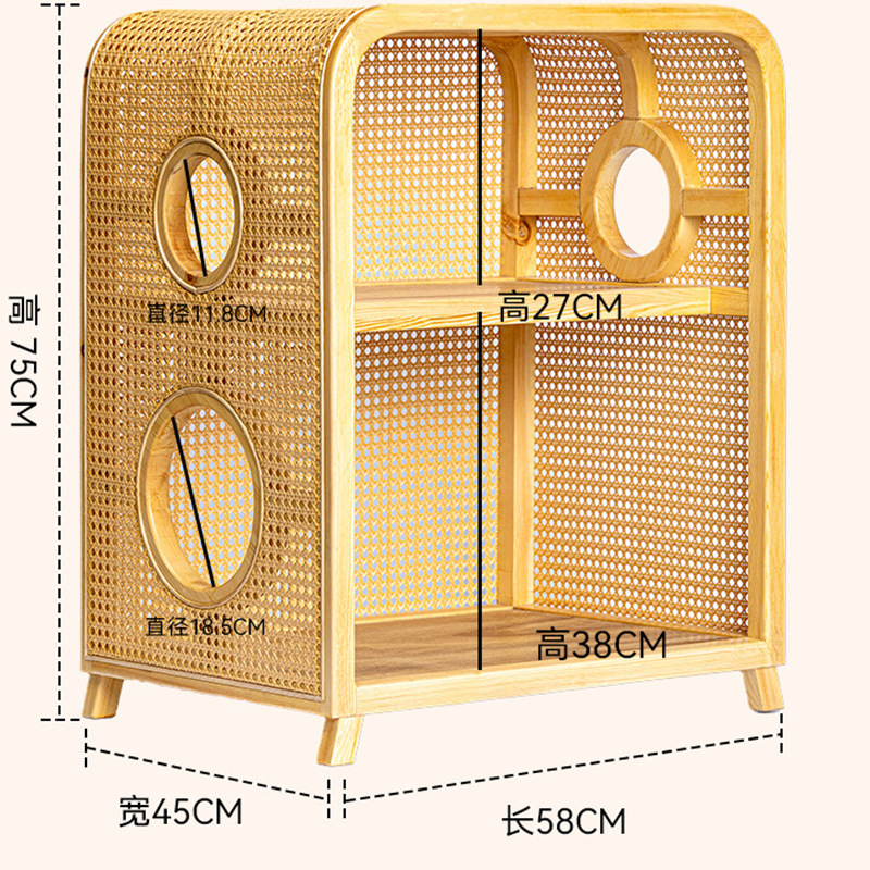 Кошачье гнездо из массива ротанга, новая мебель в китайском стиле ваби-саби, ретро-мебель, кошачье гнездо, прикроватная тумбочка, полузакрытая вилла, кошачий домик «два в одном»