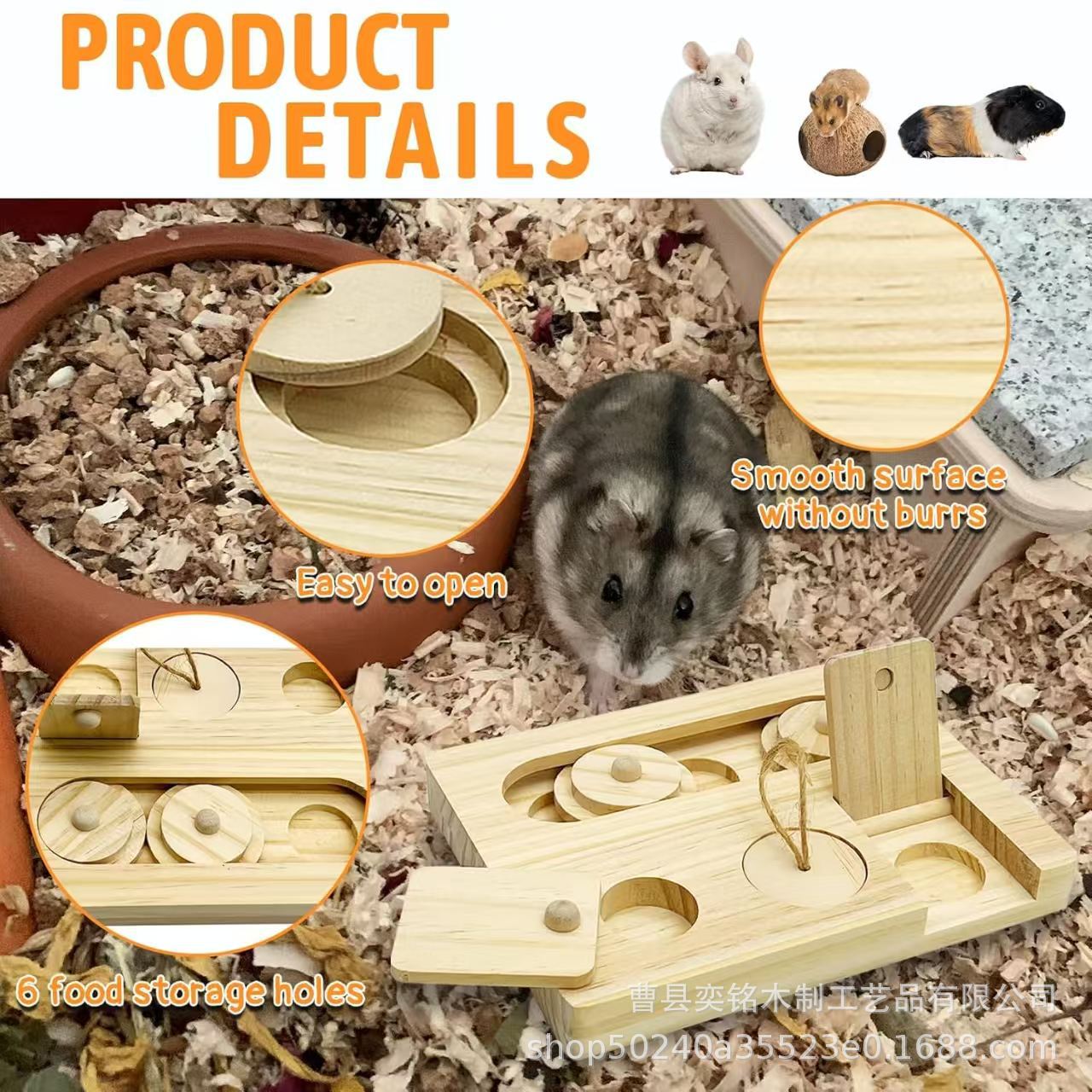 Деревянная кормушка для хомяка "Золотой медведь", лоток для закусок маленьким питомцам, домашний кормушка для животных из массива дерева.