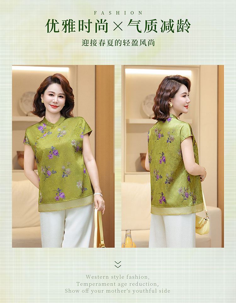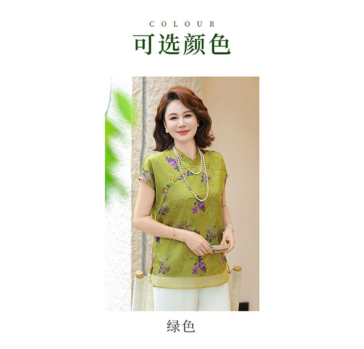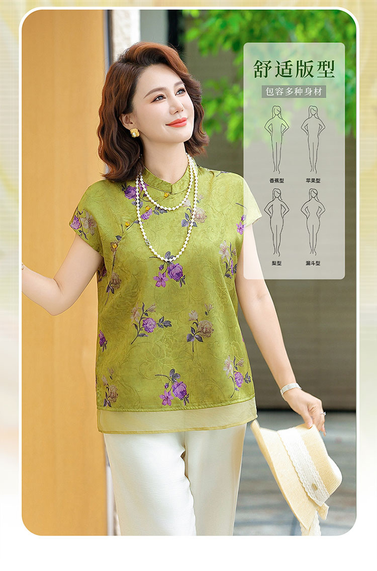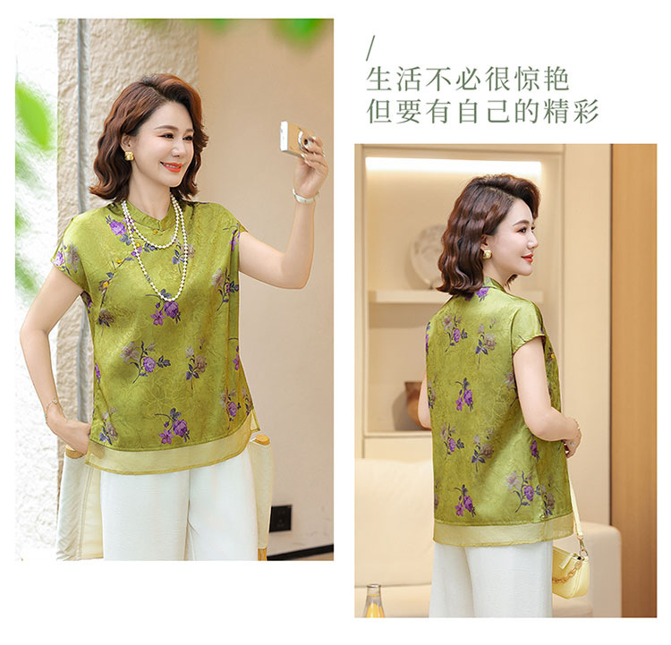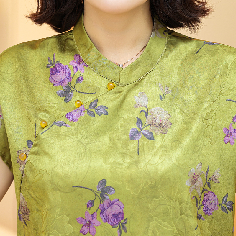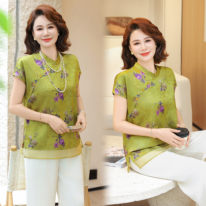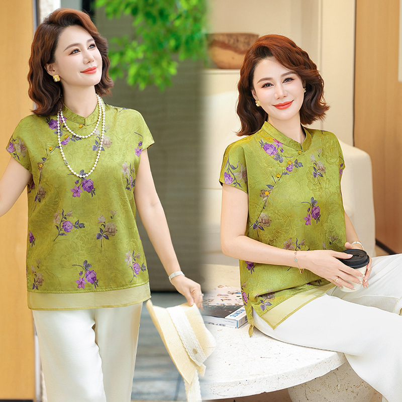 Одежда для матери среднего возраста, новая летняя рубашка в национальном стиле в стиле шинуазри, женская модная футболка с короткими рукавами и воротником Cheongsam для женщин среднего и пожилого возраста, топ
