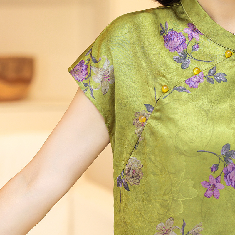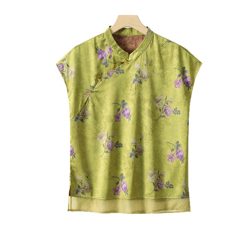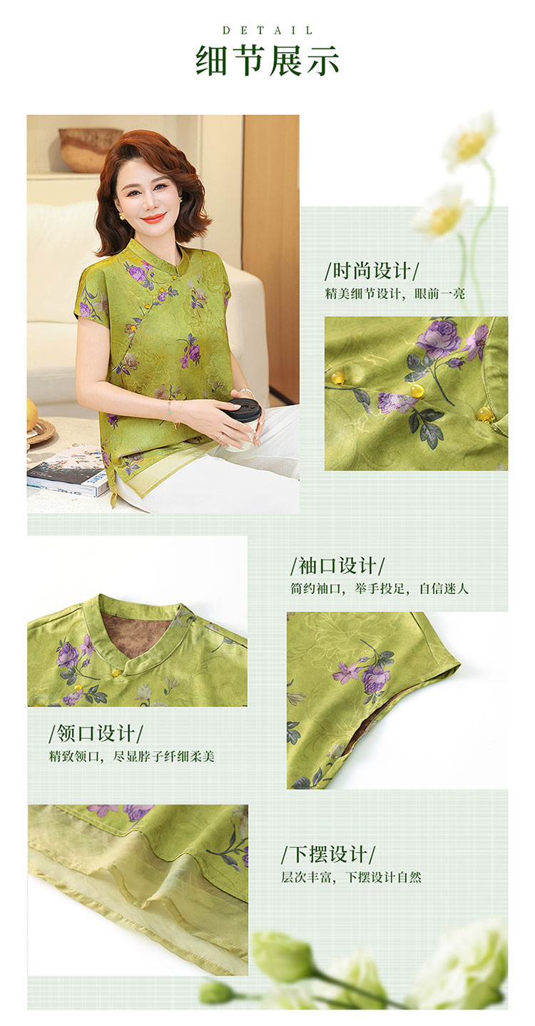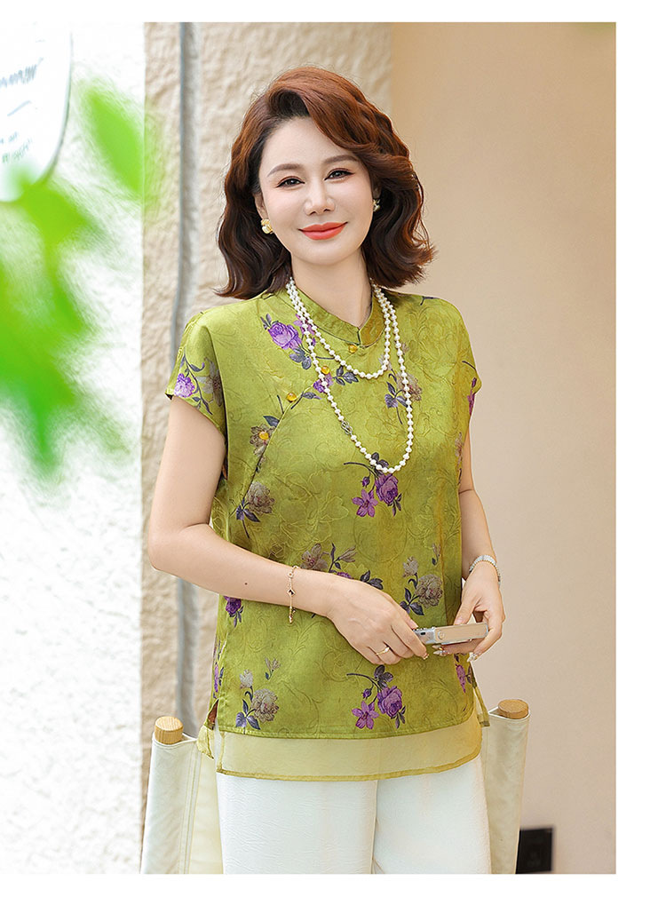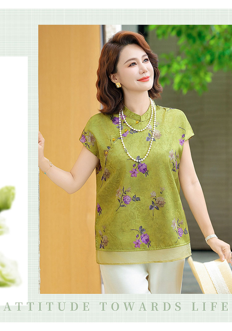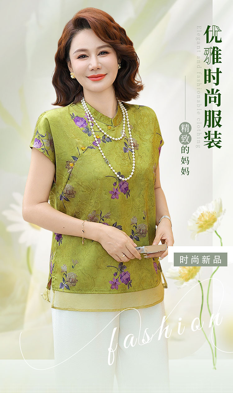 Одежда для матери среднего возраста, новая летняя рубашка в национальном стиле в стиле шинуазри, женская модная футболка с короткими рукавами и воротником Cheongsam для женщин среднего и пожилого возраста, топ
