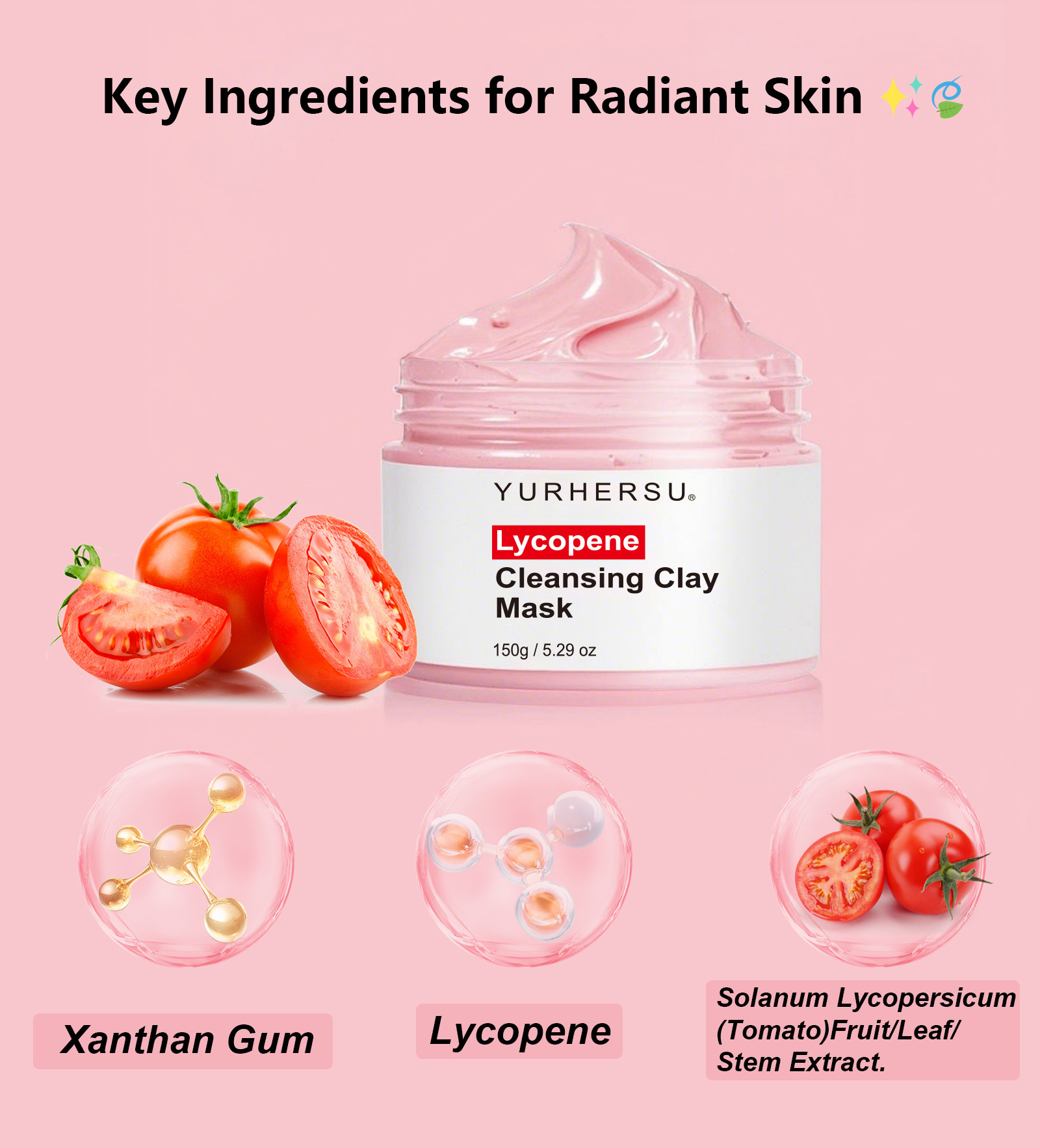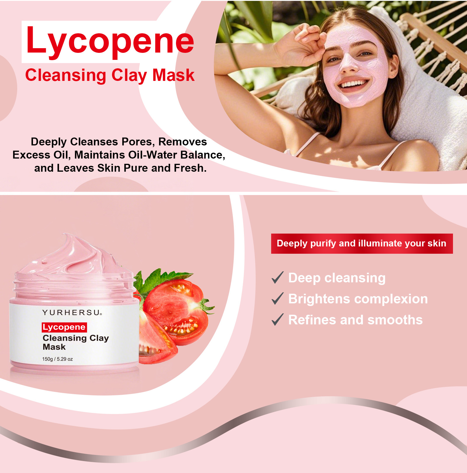 YURHERSU Ликопиновая грязевая маска Глубоко очищающая антиоксидантная осветляющая кожу сужающая поры увлажняющая укрепляющая грязевая маска