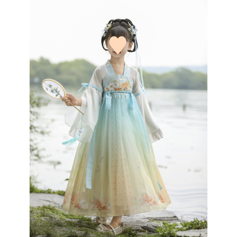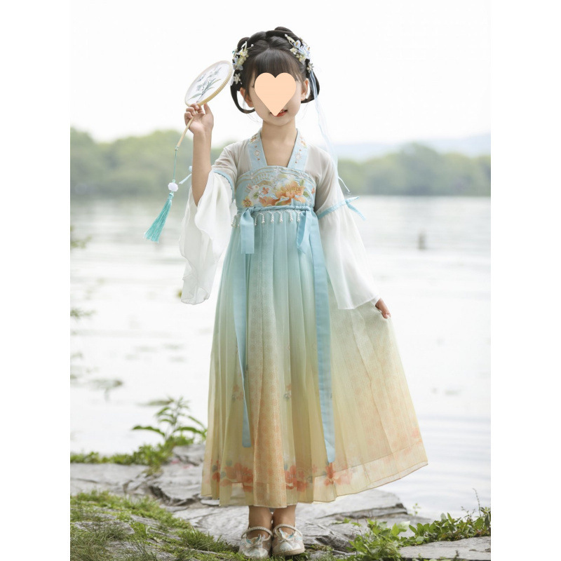 Династия Хань для девочек, весна и лето 2025, новый детский древний костюм в китайском стиле, костюм феи Тан, платье принцессы в древнем стиле для девочек, вышивка