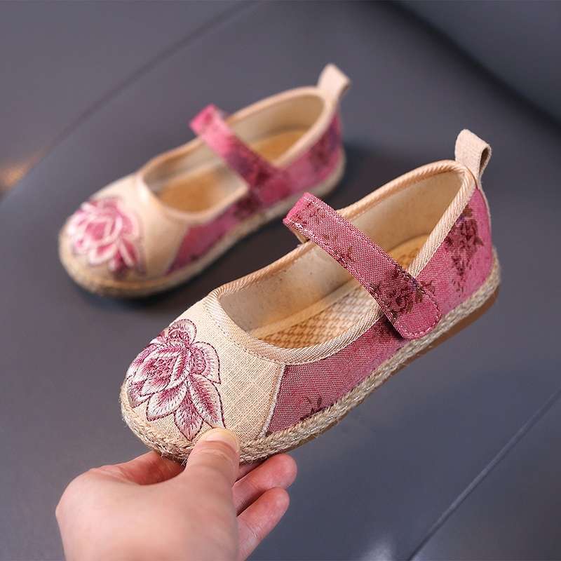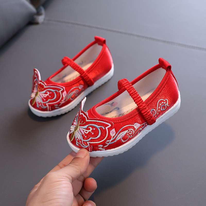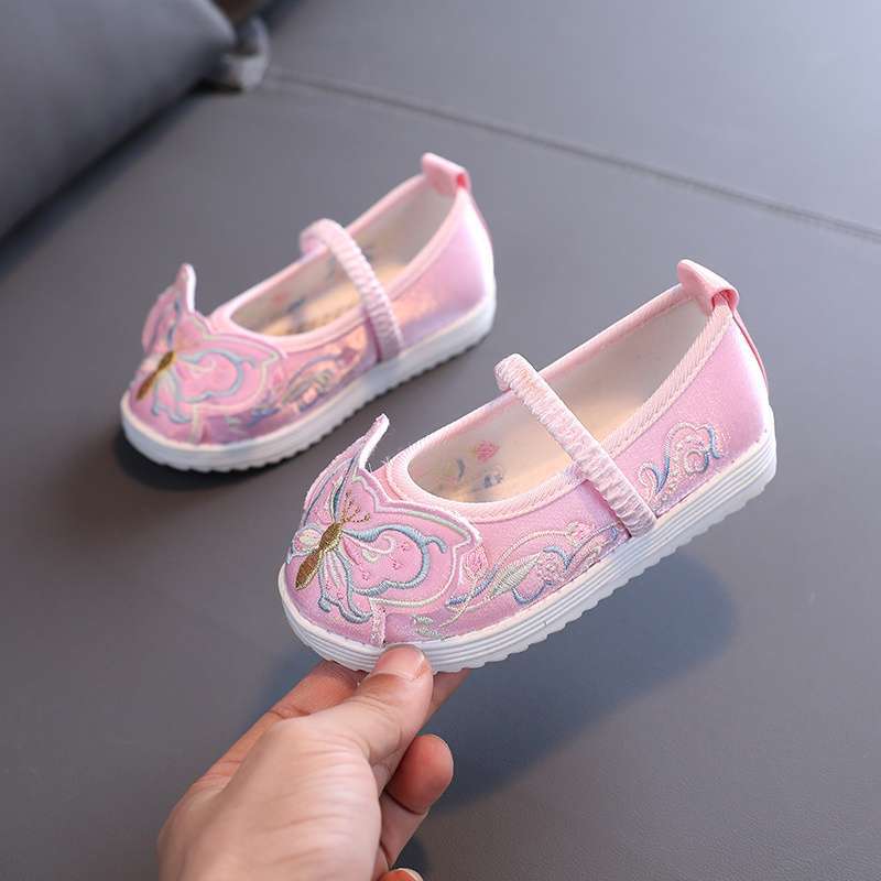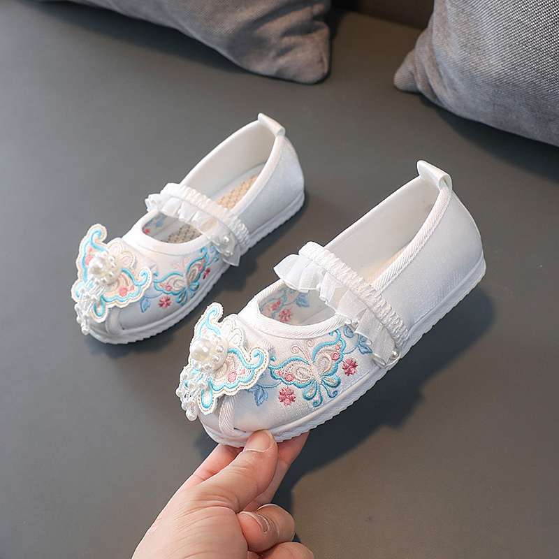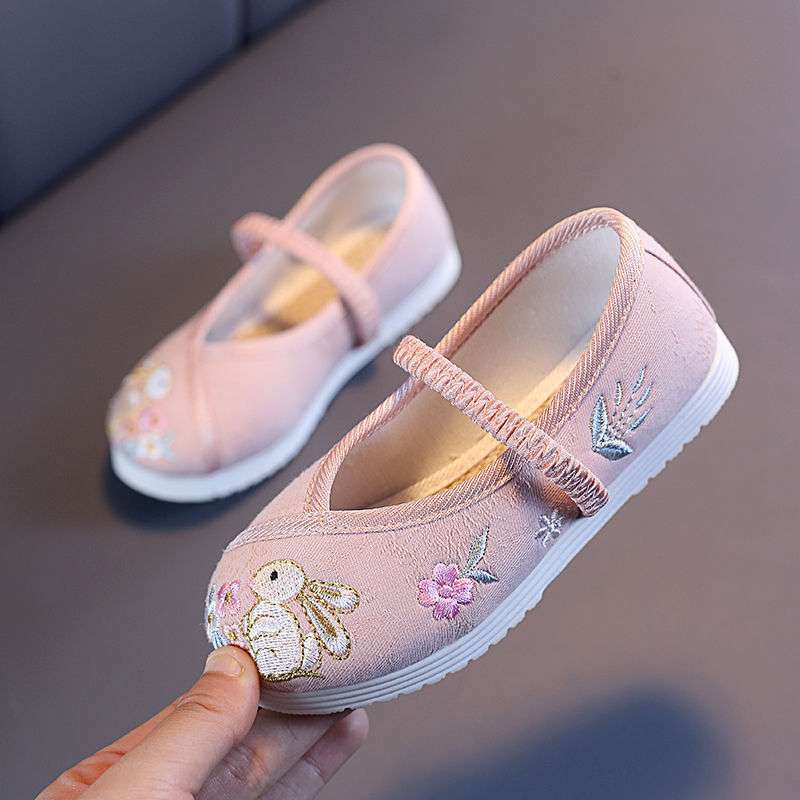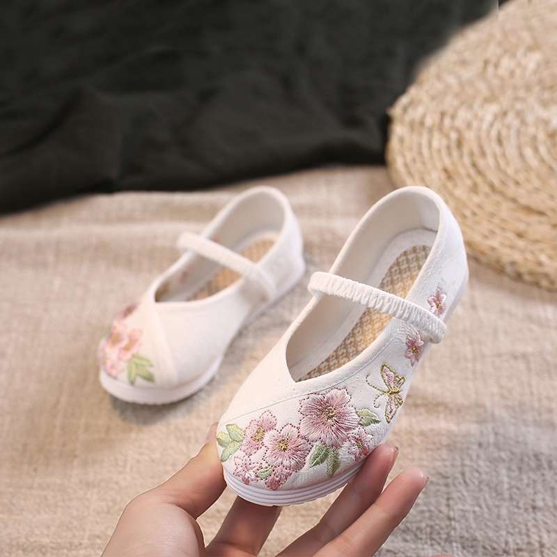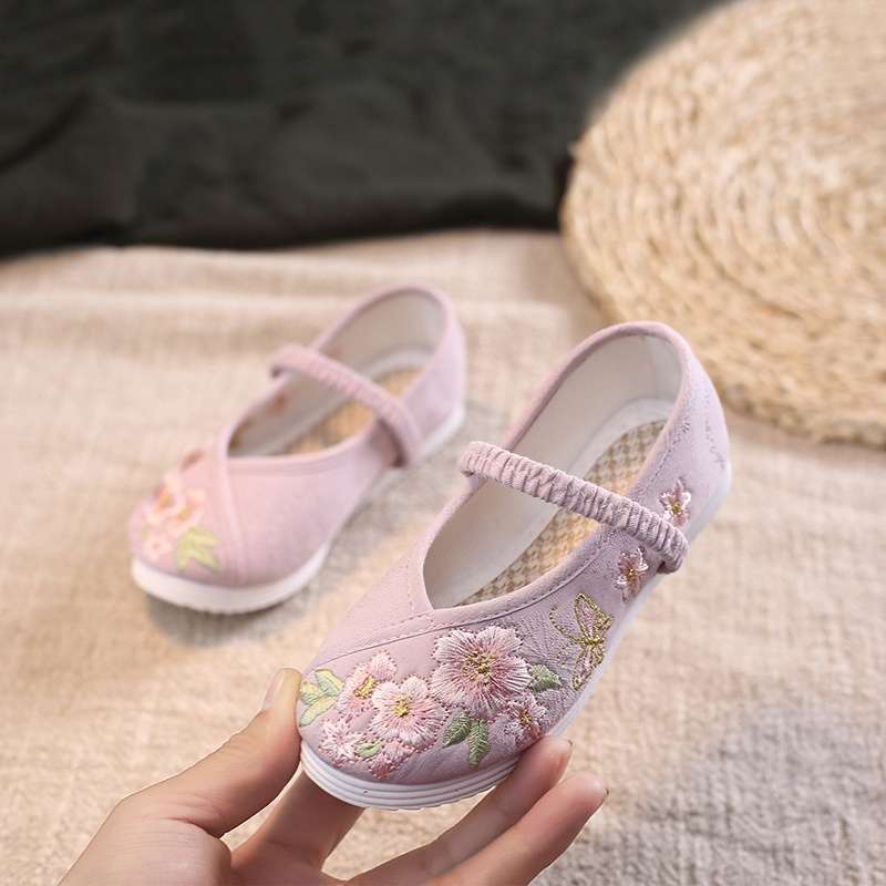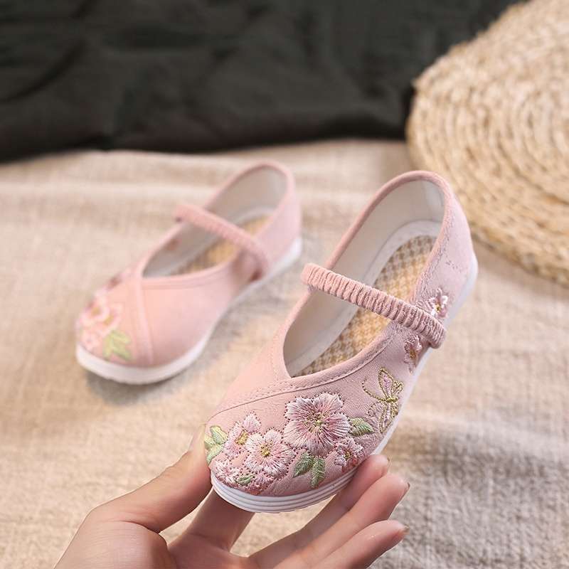 Детская тканевая обувь, туфли с вышивкой для девочек, весенне-осенняя обувь династии Хань, детская обувь в этническом стиле в стиле ретро, туфли с юбкой для маленькой девочки.