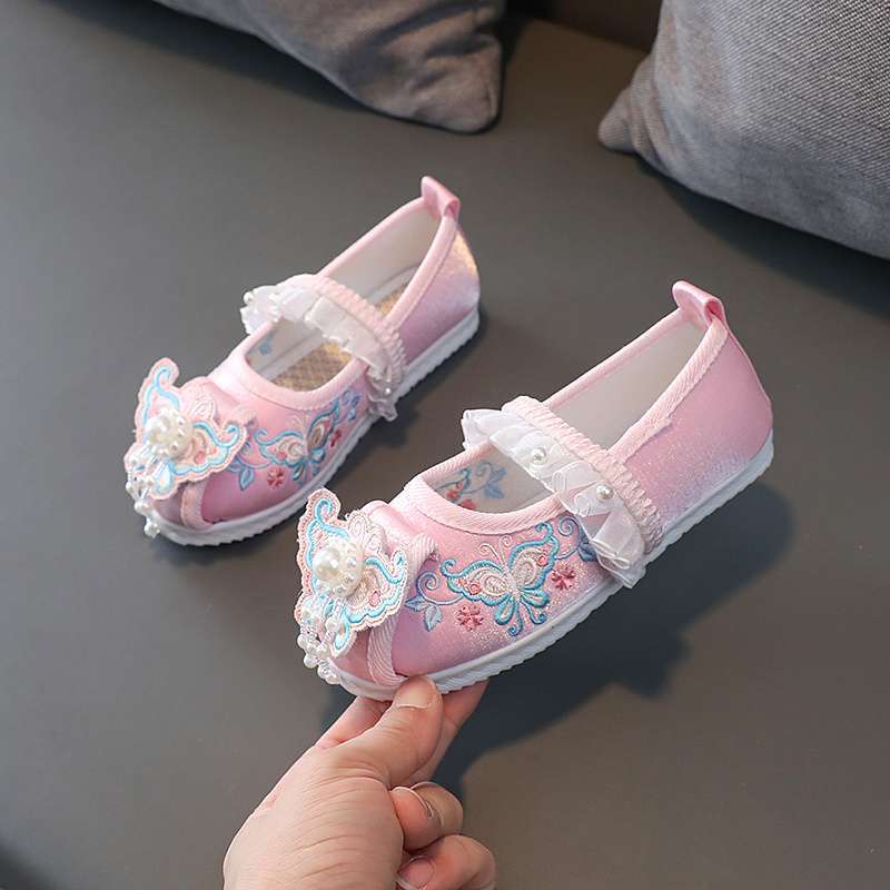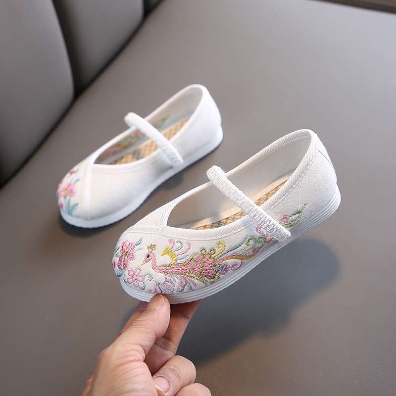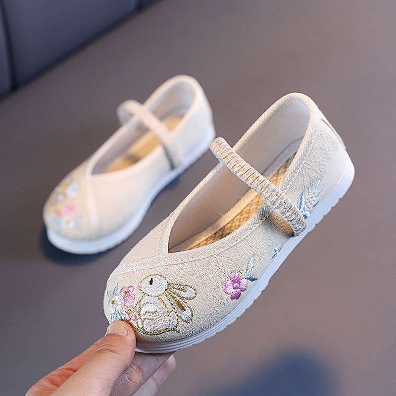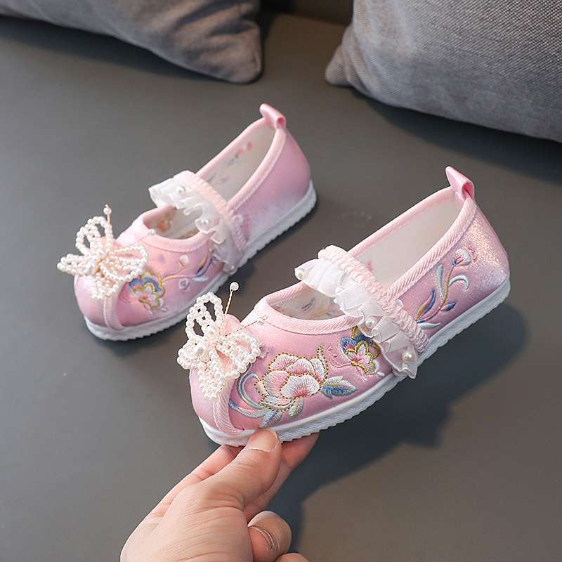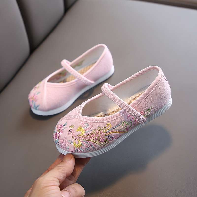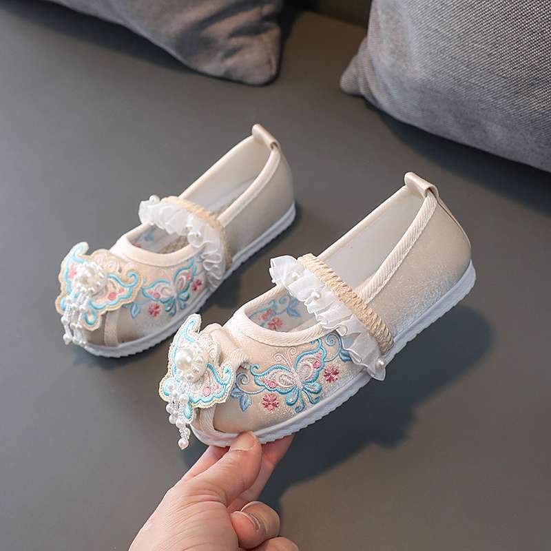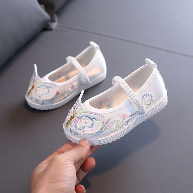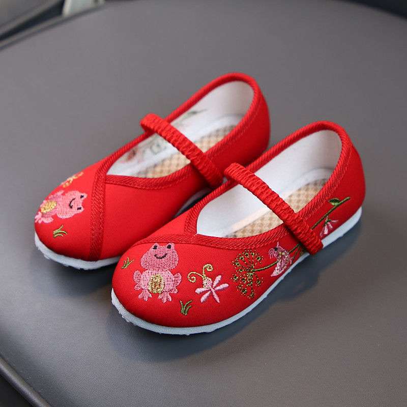 Детская тканевая обувь, туфли с вышивкой для девочек, весенне-осенняя обувь династии Хань, детская обувь в этническом стиле в стиле ретро, туфли с юбкой для маленькой девочки.