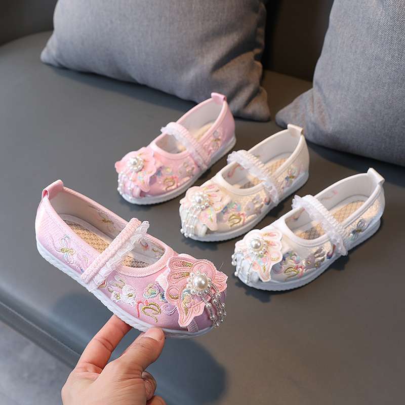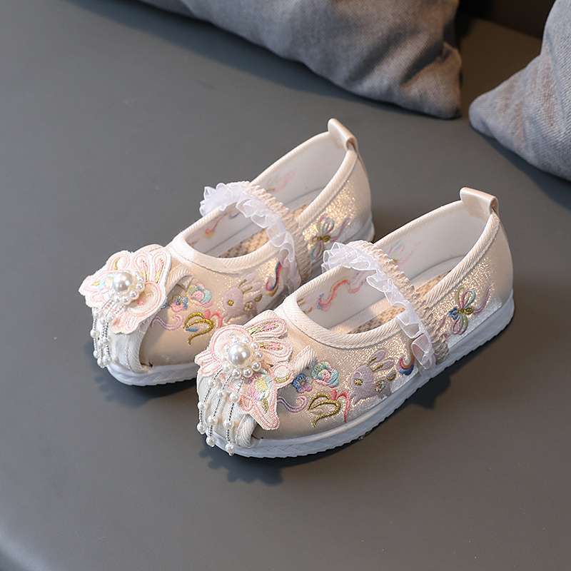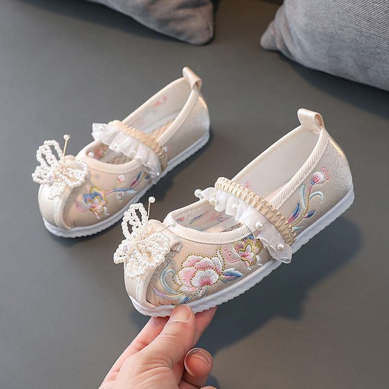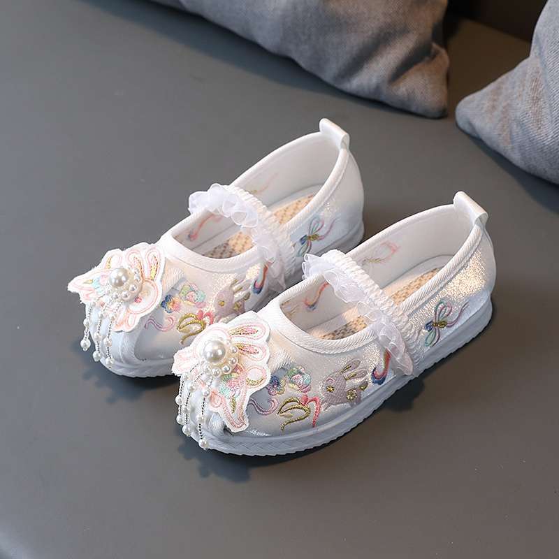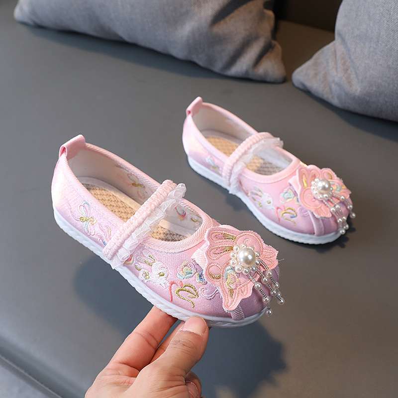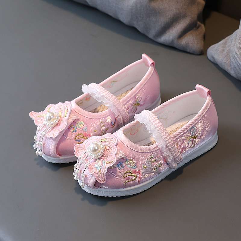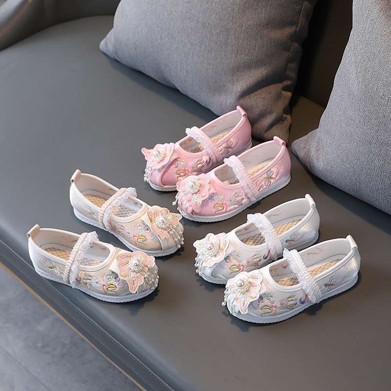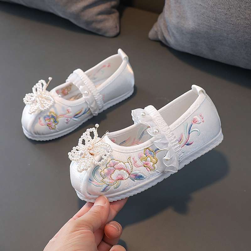 Детская тканевая обувь, туфли с вышивкой для девочек, весенне-осенняя обувь династии Хань, детская обувь в этническом стиле в стиле ретро, туфли с юбкой для маленькой девочки.