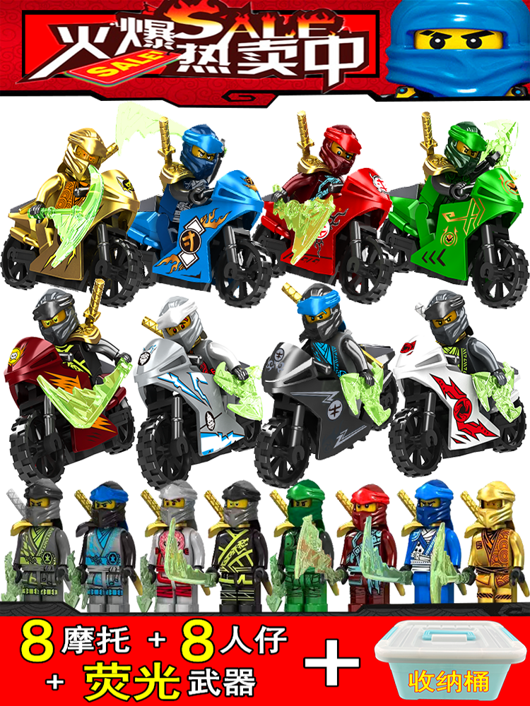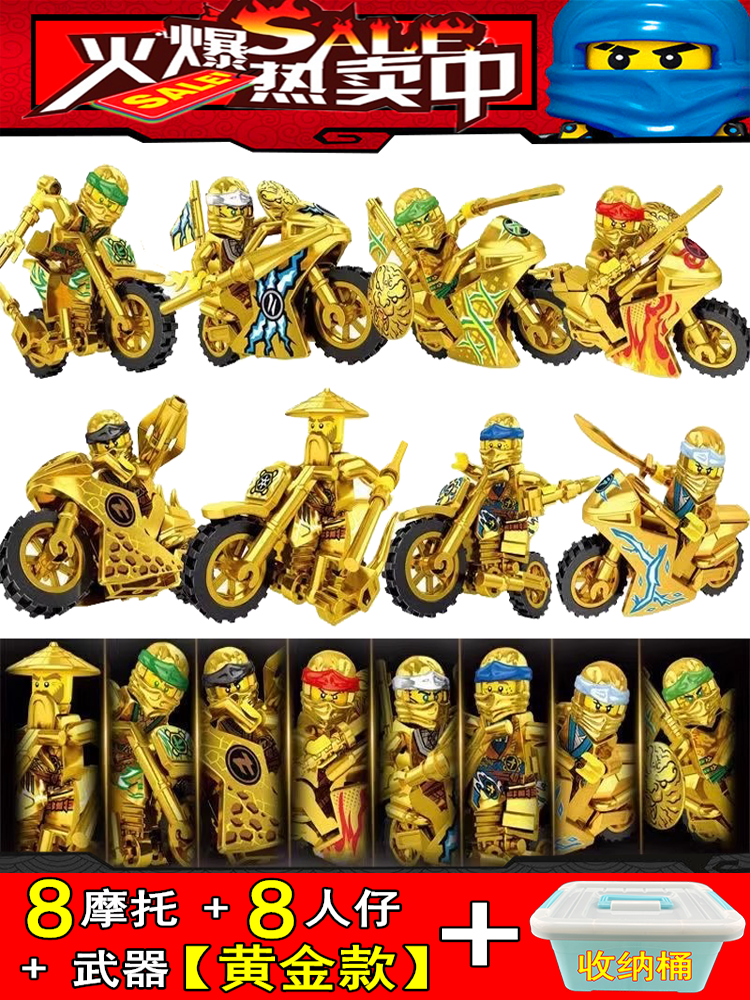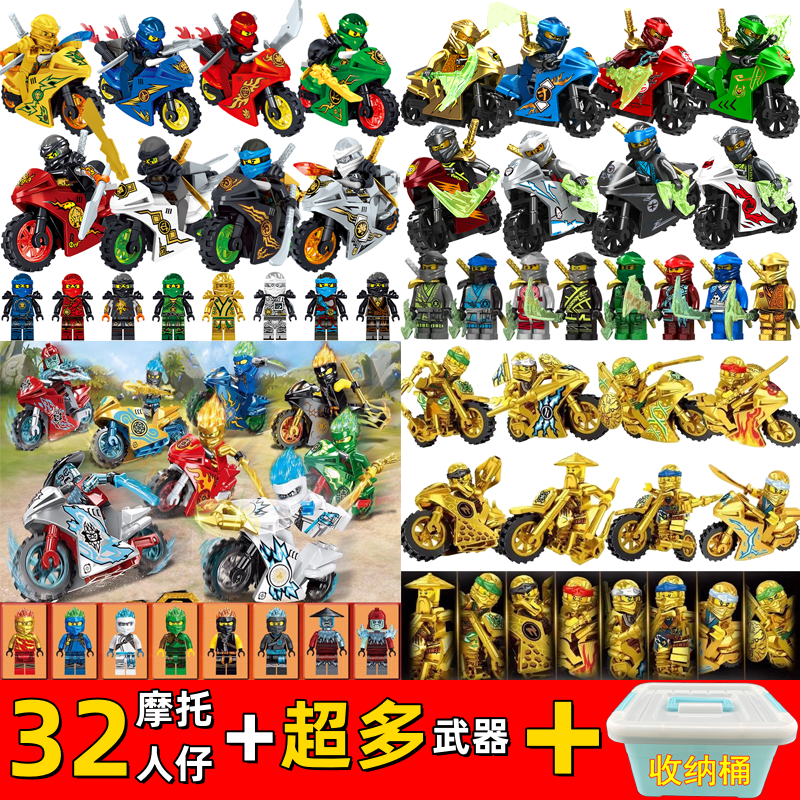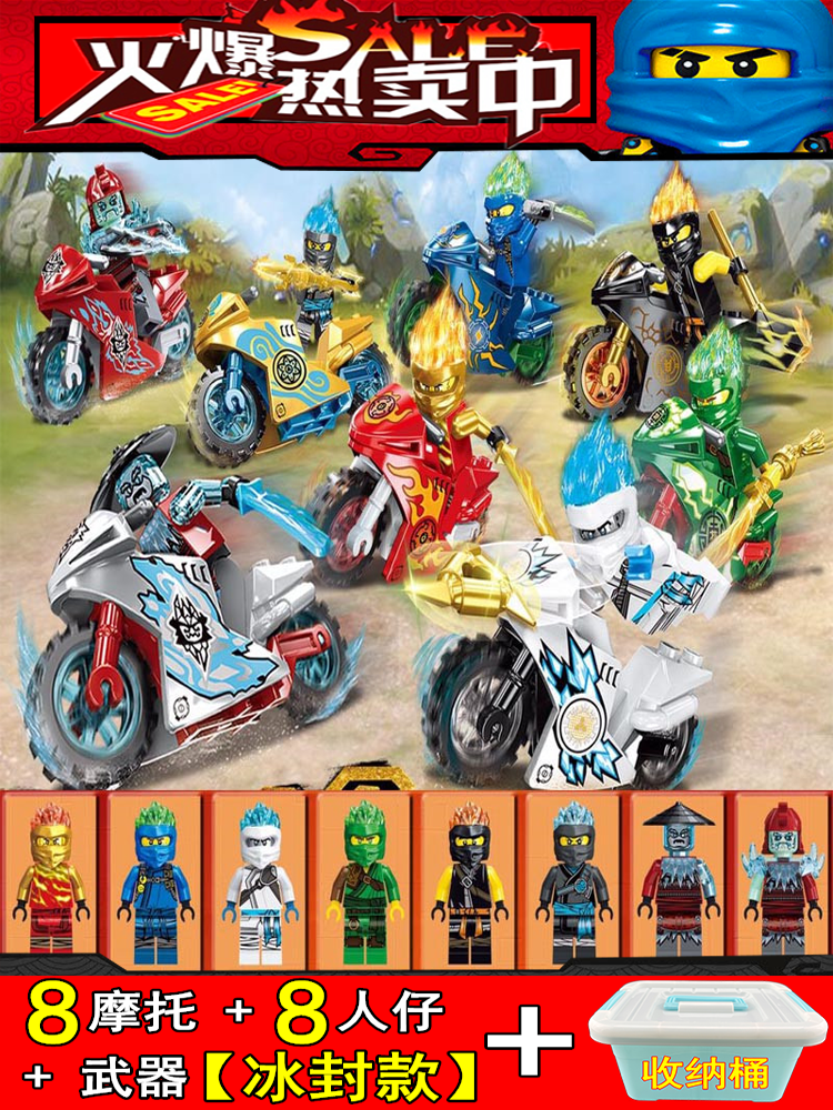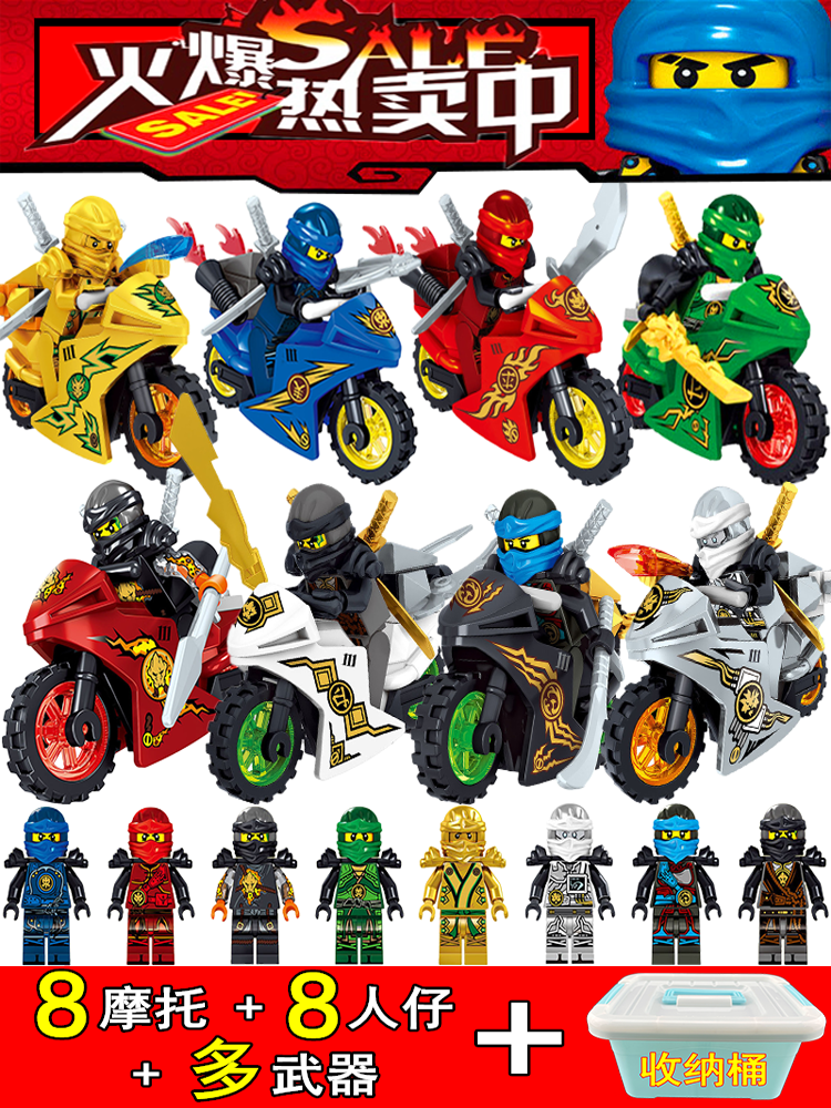 8 мотоциклов + 8 минифигурок + несколько видов оружия [Специальное предложение]; 8 мотоциклов + 8 минифигурок + светящееся оружие [новый стиль]; 8 мотоциклов + 8 минифигурок + оружие [Король ледяных заморозок]; 8 мотоциклов + 8 минифигурок + оружие [золотая модель]; 8 колесниц, превратившихся в меха + 8 минифигурок; Карета огня + мотоцикл + 2 минифигурки; Золотой дракон Ллойда [Новый стиль]; Ледяной колесница + мотоцикл + 2 минифигурки; Лавовый механический лев Кая [Новый стиль]; 4 элемента дракона + 4 минифигурки [Специальное предложение]; Кристаллический король грома Меча [Новый стиль]; 4-элементный дракон + 8 мотоциклов + 12 минифигурок; Фантомный механический бог войны Джей [Новый стиль]; Двойной элемент Дракон + 2 минифигурки [Специальное предложение]; Храм Ниндзяго + 6 минифигурок [Специальное предложение]; 8. Форма Дракона Ниндзя + Оружие + Меч; 8 Золотых ниндзя + Щит оружия + Опорная плита; 6 золотых ниндзя + много оружия + базовая пластина; 8 злых масок + несколько видов оружия + нижняя пластина; 8 Лидер Базилиска + оружие + базовая пластина; 8 минифигурок Нинджаго [Тип А] + базовая пластина; 8 минифигурок Нинджаго [Тип B] + базовая пластина; 8 минифигурок Нинджаго [Тип C] + базовая пластина; 8 минифигурок Нинджаго [Тип D] + базовая пластина; 32 минифигурки + несколько видов оружия + 2 большие базовые пластины [бочка]; 8 мотоциклов + 8 минифигурок + несколько видов оружия [бочка]; 8 мотоциклов + 8 минифигурок + светящееся оружие [бочка]; 8 мотоциклов Ледяного Императора + 8 минифигурок + оружие [бочка]; 5 Шенлун + храм + 12 минифигурок [ведро]; 8 колесниц, превратившихся в меха + 8 минифигурок [бочка]; 8 золотых мотоциклов + 8 минифигурок + оружие [бочка]; 4 Шэньлун + храм + 8 мотоциклов + 18 минифигурок [бочка]; 4 элемента дракона + 4 минифигурки [бочка]; 4-элементный дракон + 8 мотоциклов + 12 минифигурок [бочка]; Храм Ниндзяго + 6 минифигурок [ведро]; 32 Роскошный пакет для мотоцикла [Бочка]; 24 Мотоциклетный бутик-пакет [Бочка]; Двойной элементарный дракон + 2 минифигурки [Бочка]; 8 Мотоцикл «Огонь» + 8 Мотоцикл «Лед» [Бочка]; 8 Мотоцикл «Пламя» + 8 Мотоцикл «Золотой» [Бочка]; Карета огня + мотоцикл + 2 минифигурки [ведро]; Ледяной колесница + мотоцикл + 2 минифигурки [ведро]