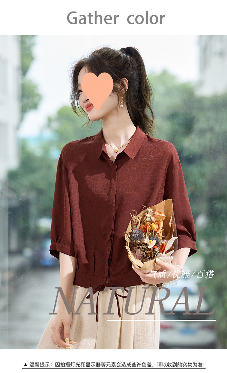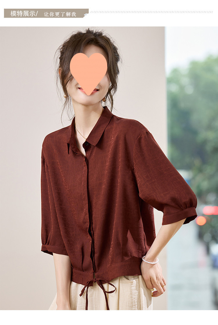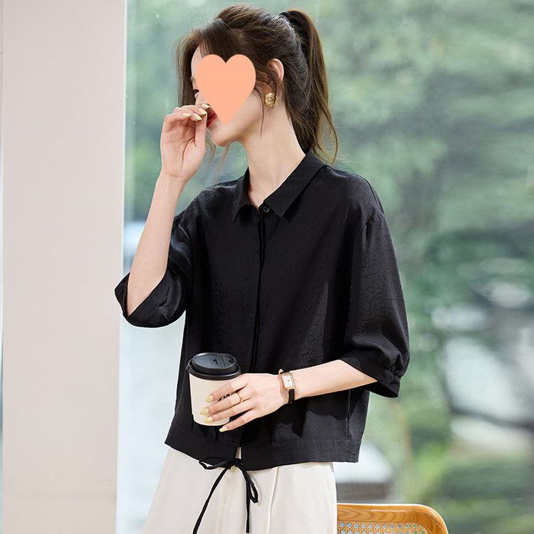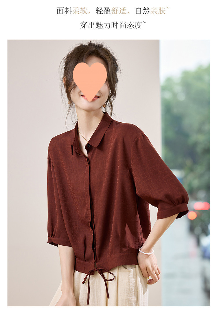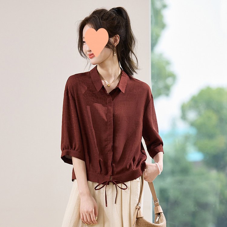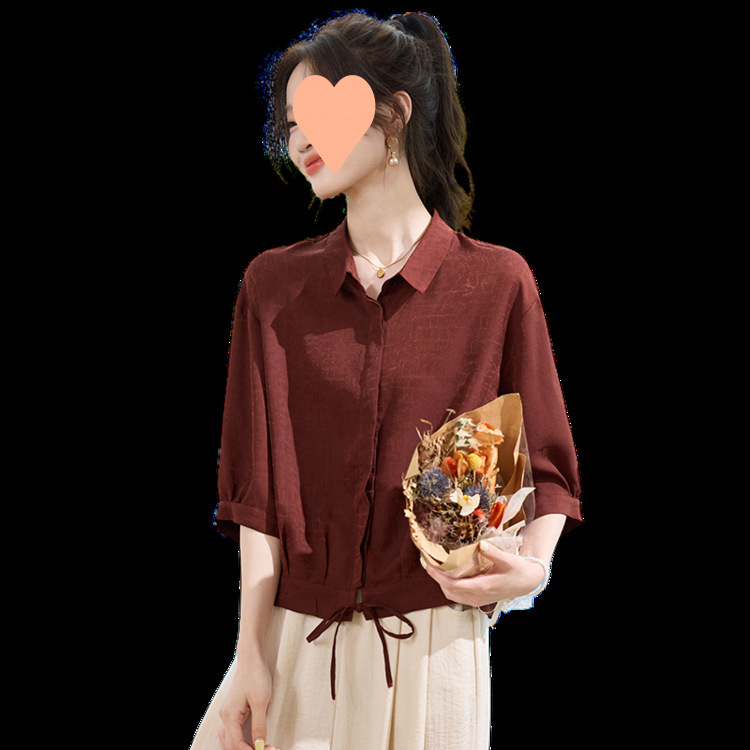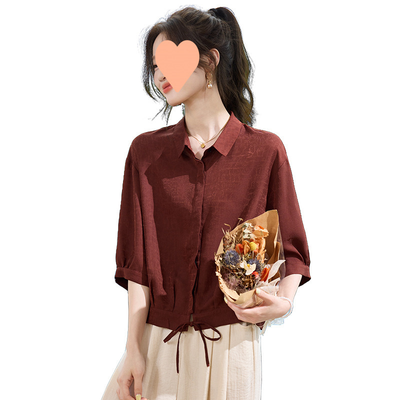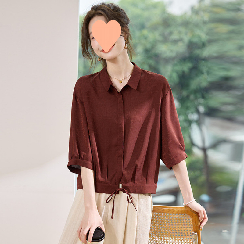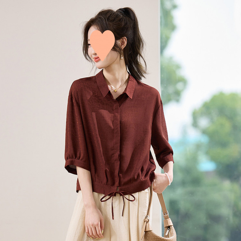 2025 новая летняя свободная модная рубашка для мам среднего возраста, стильная блузка со средним рукавом, тонкий короткий топ, тонкий.