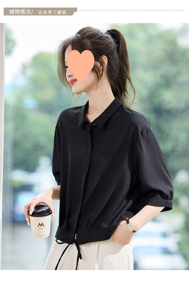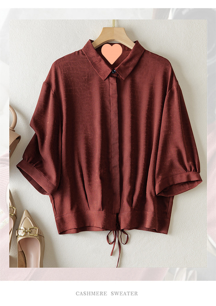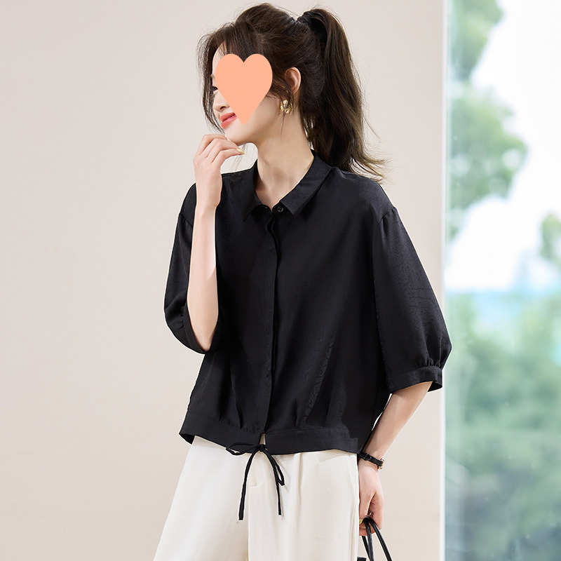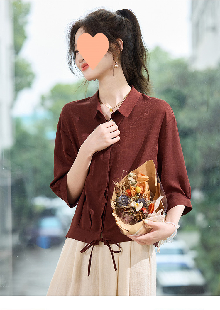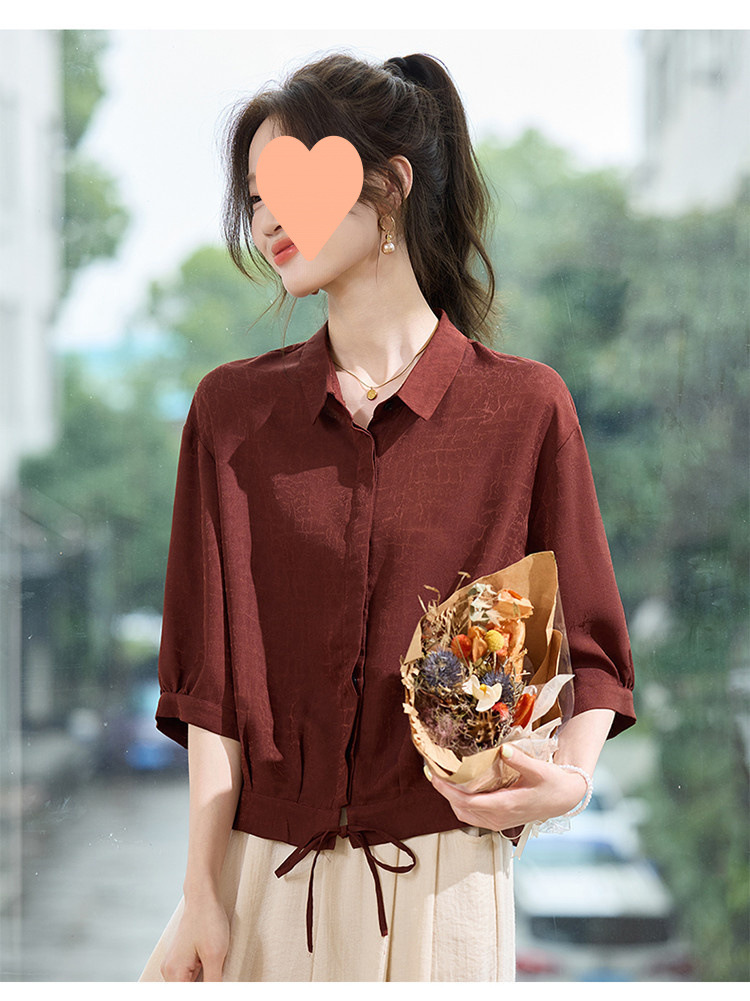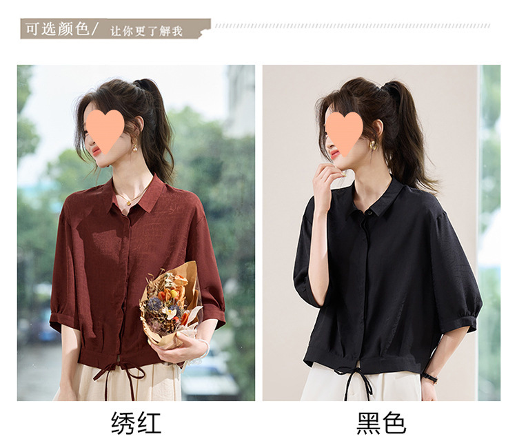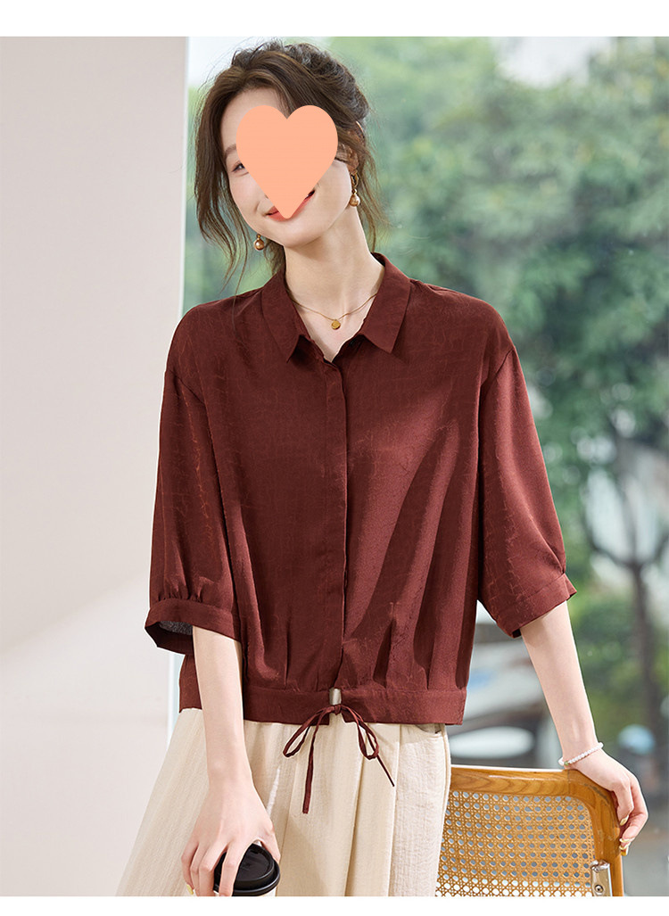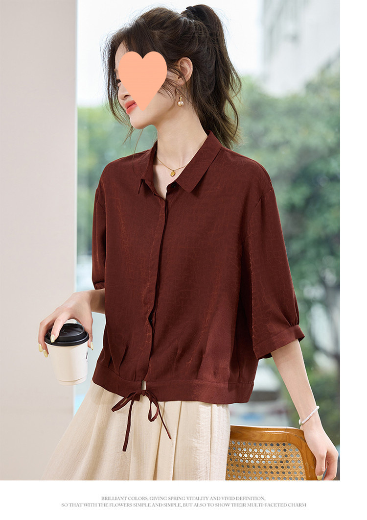 2025 новая летняя свободная модная рубашка для мам среднего возраста, стильная блузка со средним рукавом, тонкий короткий топ, тонкий.