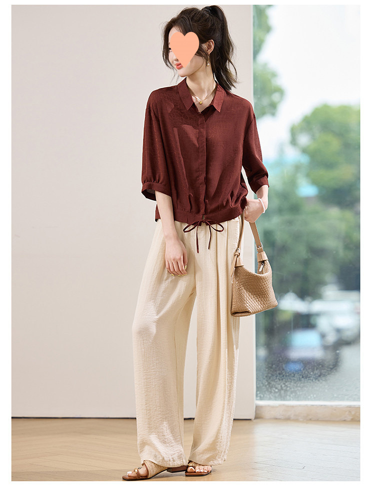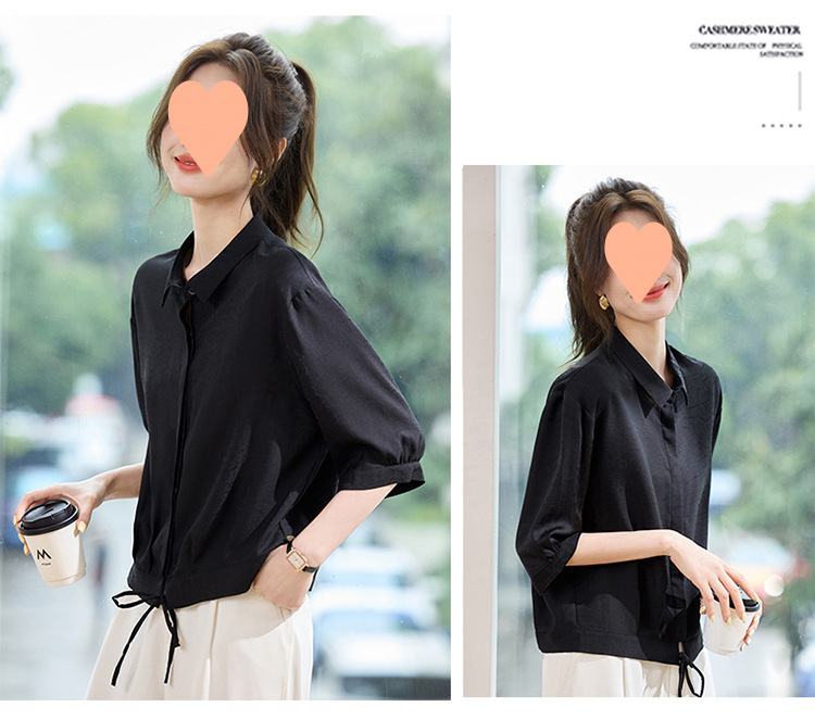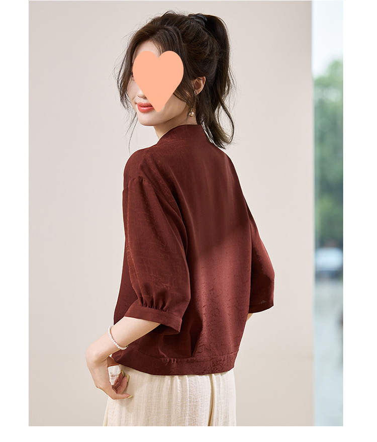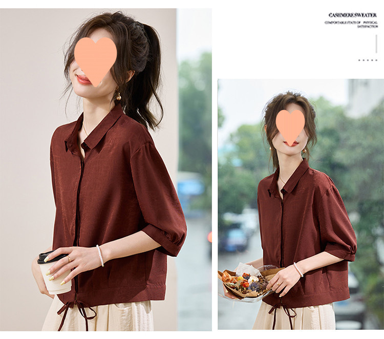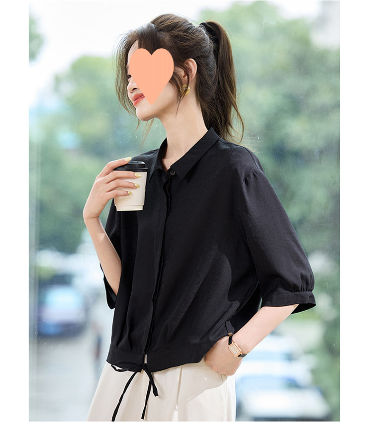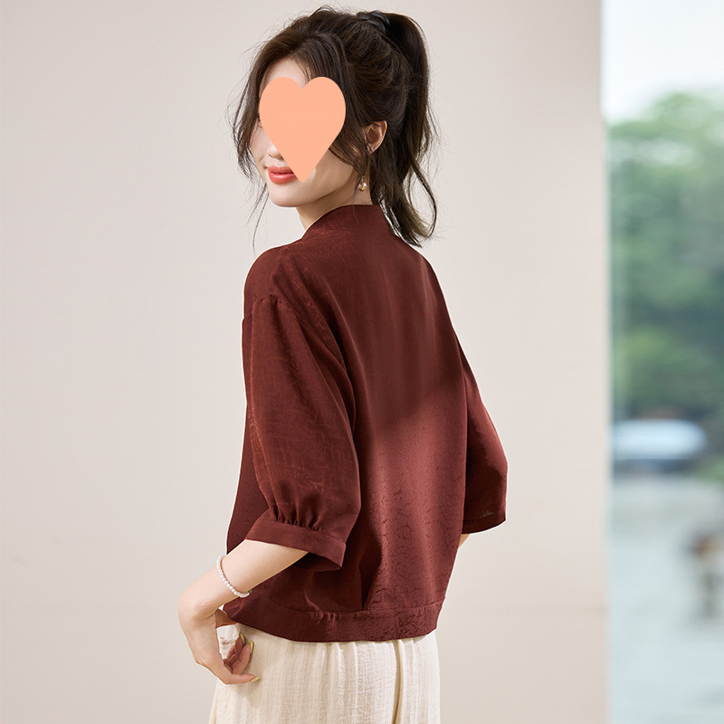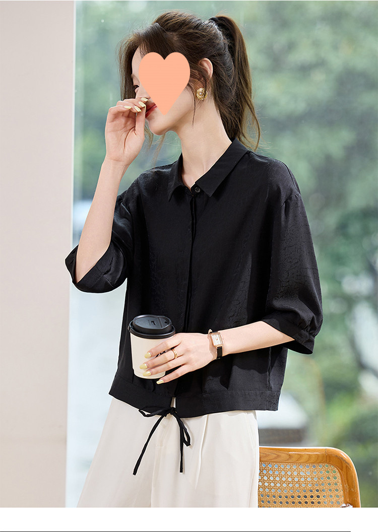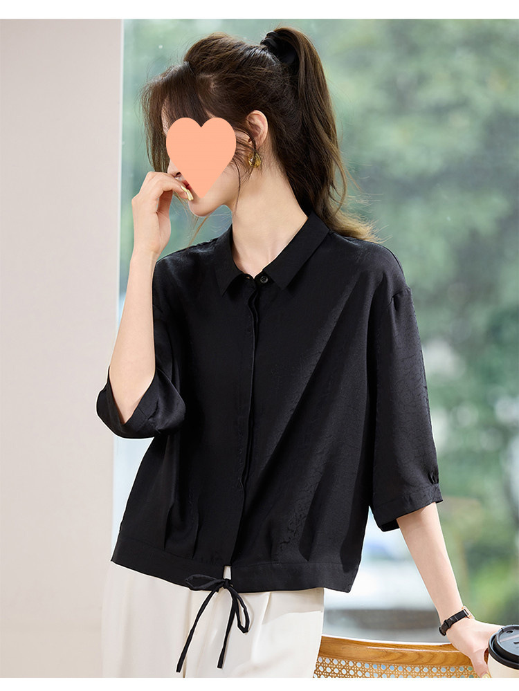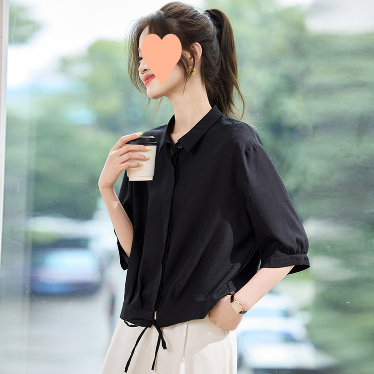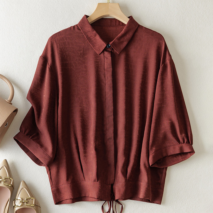 2025 новая летняя свободная модная рубашка для мам среднего возраста, стильная блузка со средним рукавом, тонкий короткий топ, тонкий.