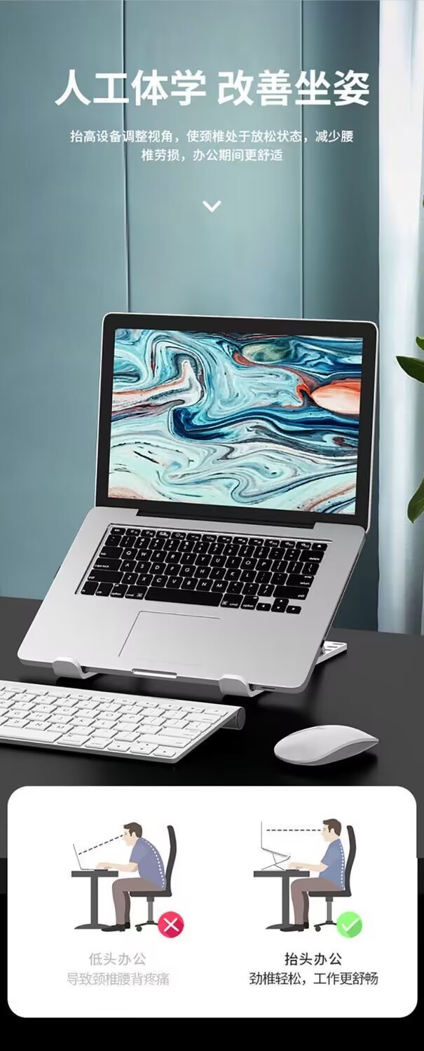 Универсальная настольная подставка для ноутбука с регулируемой высотой и полым дизайном для охлаждения и поддержки.