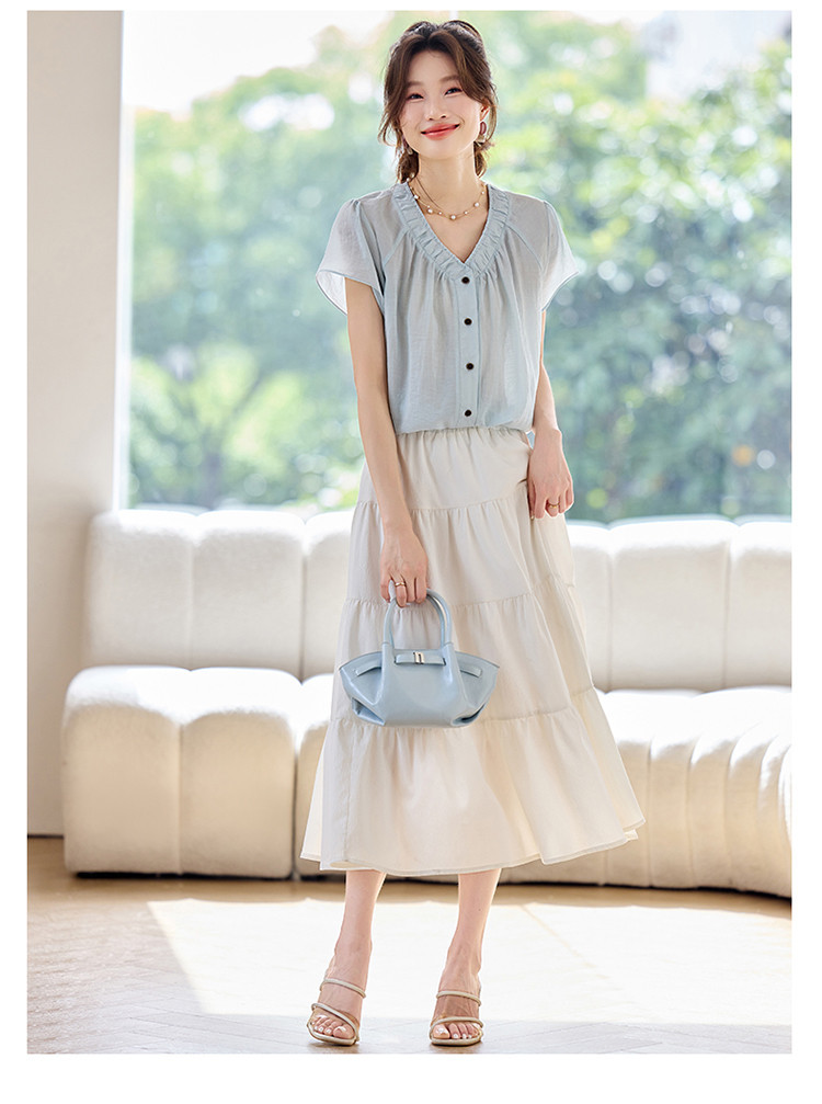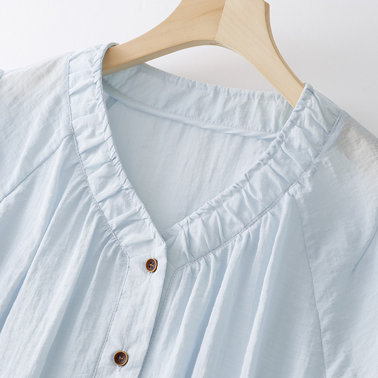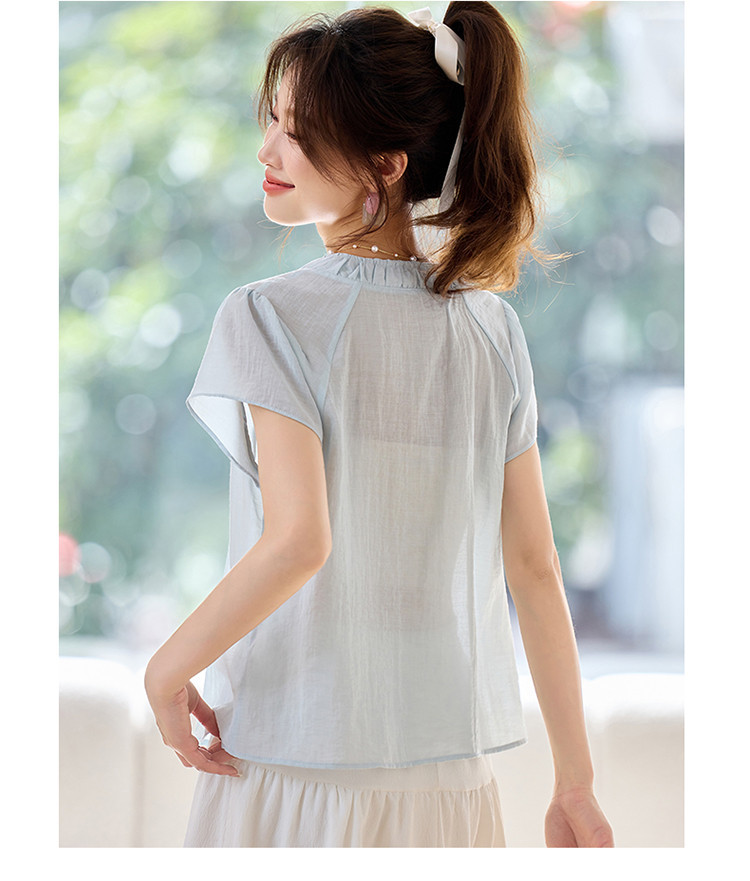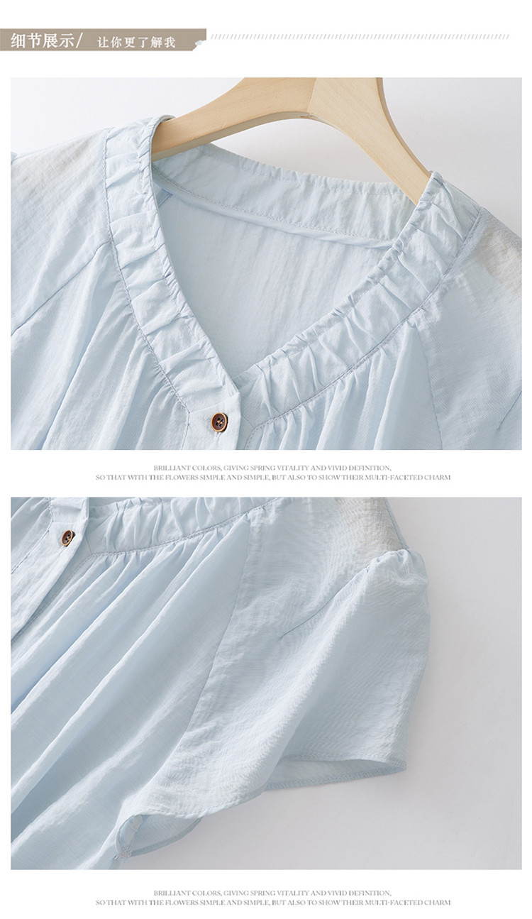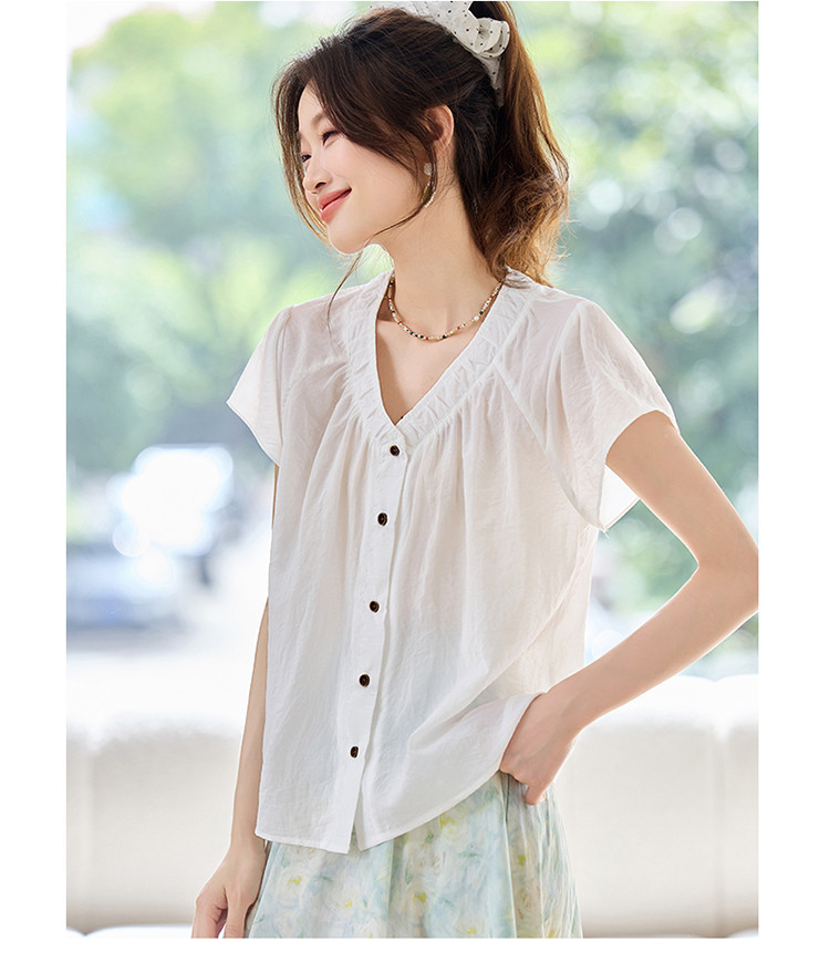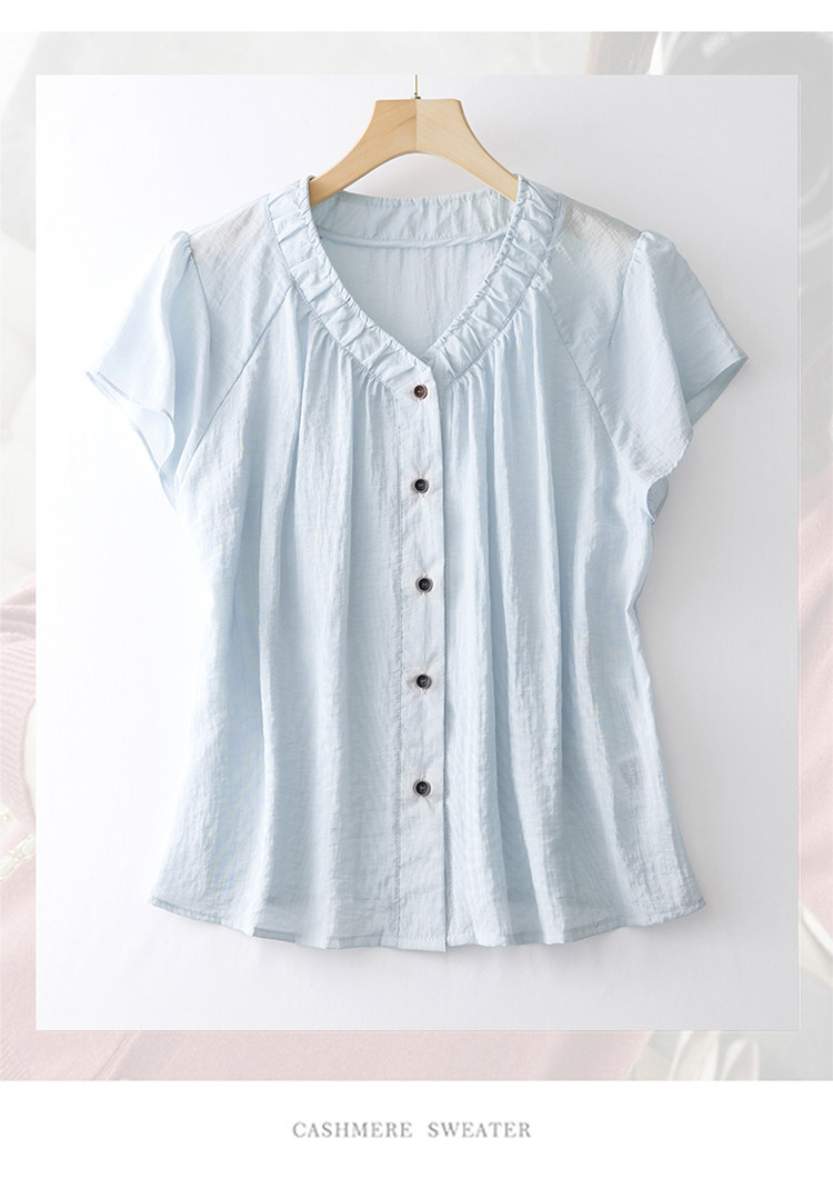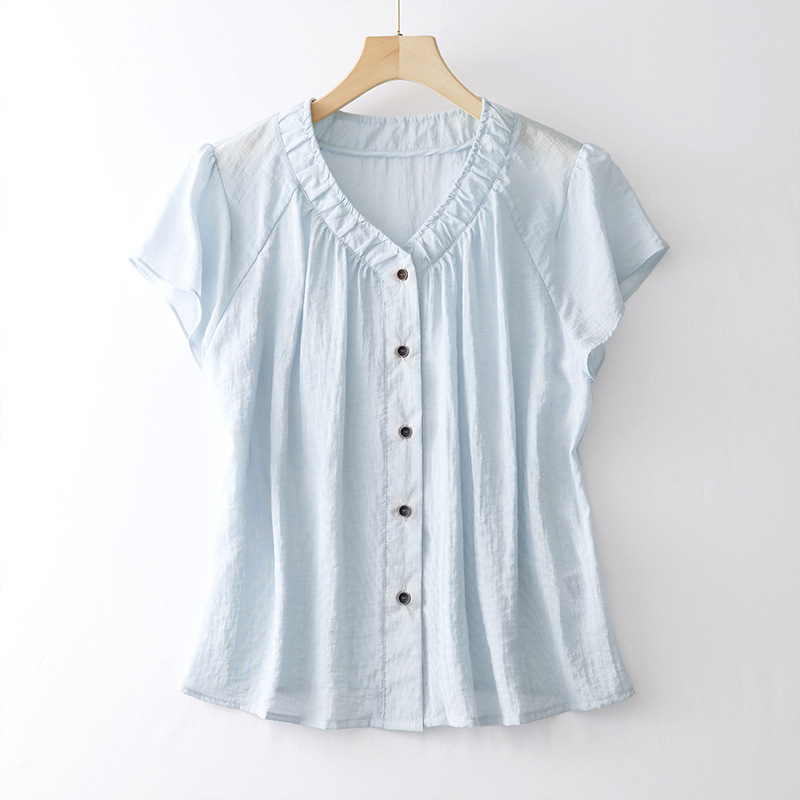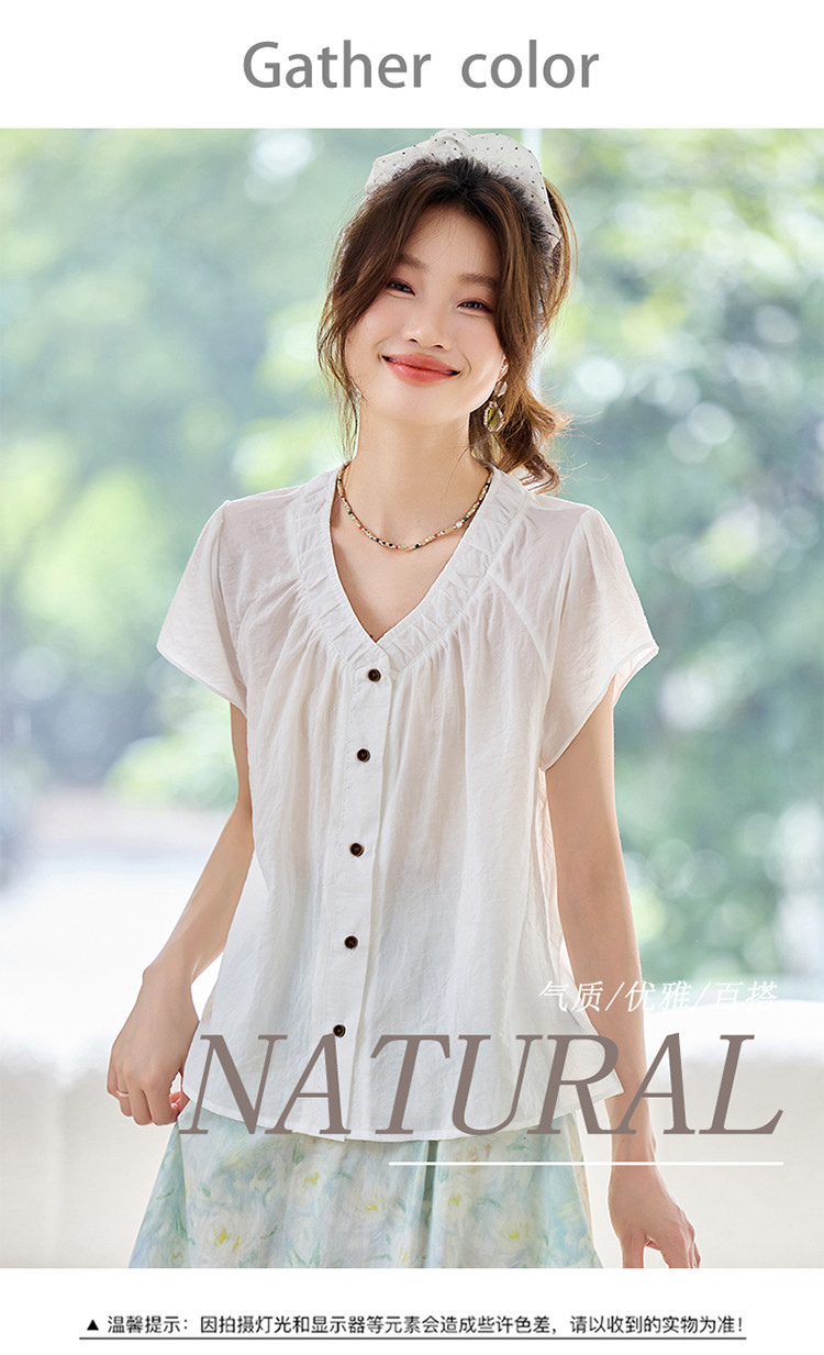 Женская рубашка с коротким рукавом, лето 2025, новый нишевый дизайн, элегантный топ с V-образным вырезом, уникальная тонкая рубашка французского стиля