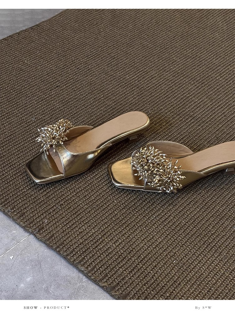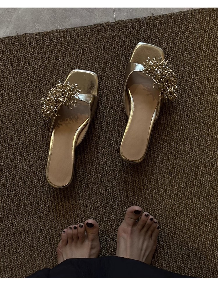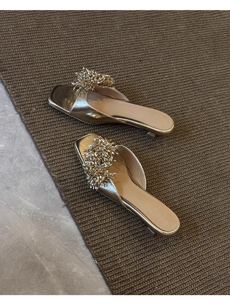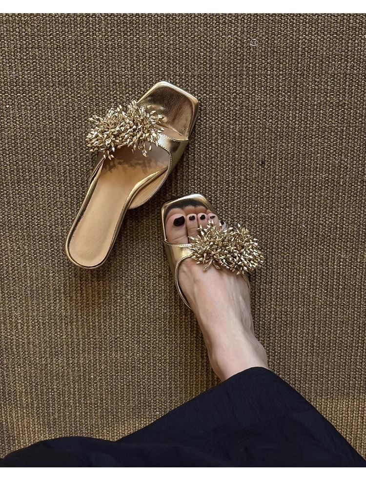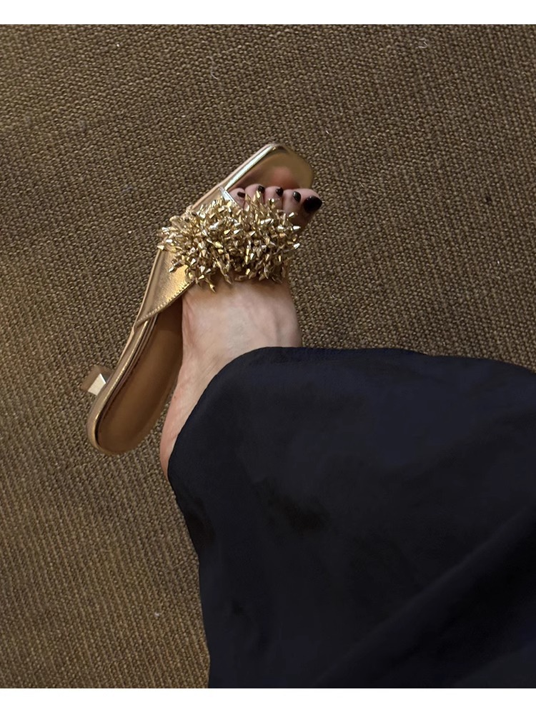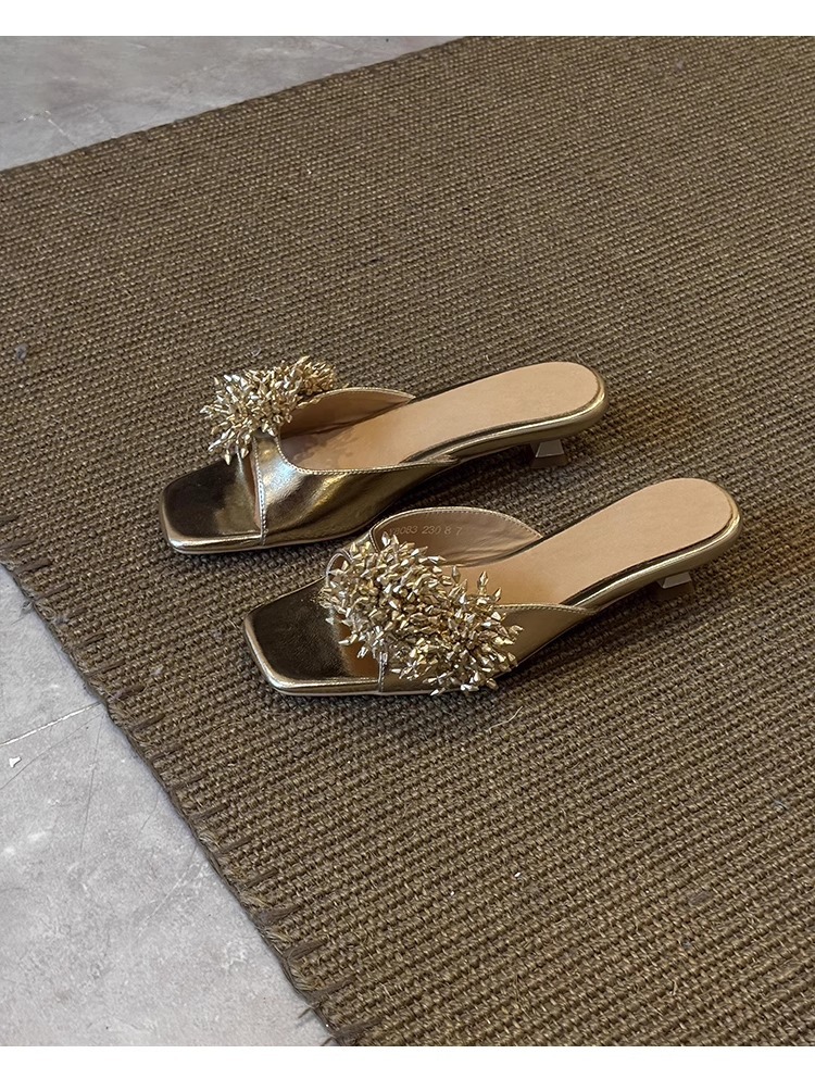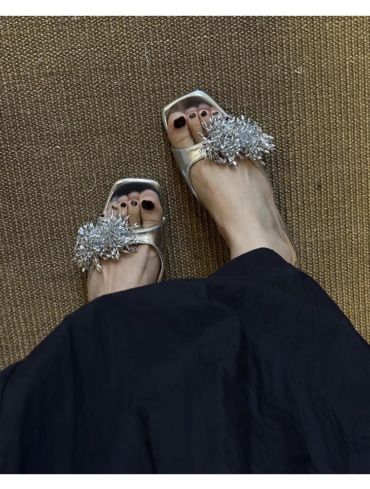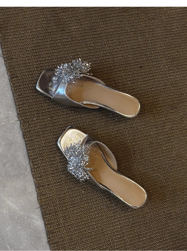 Версия из овчины ~ французские высококачественные женские тапочки из натуральной кожи с фейерверком, универсальные элегантные босоножки на низком каблуке с квадратным носком
