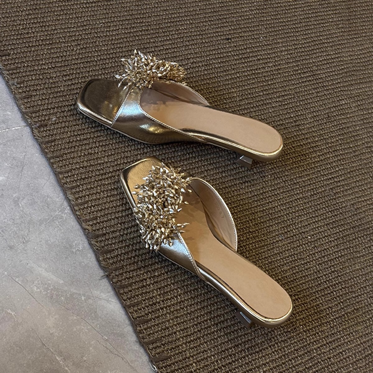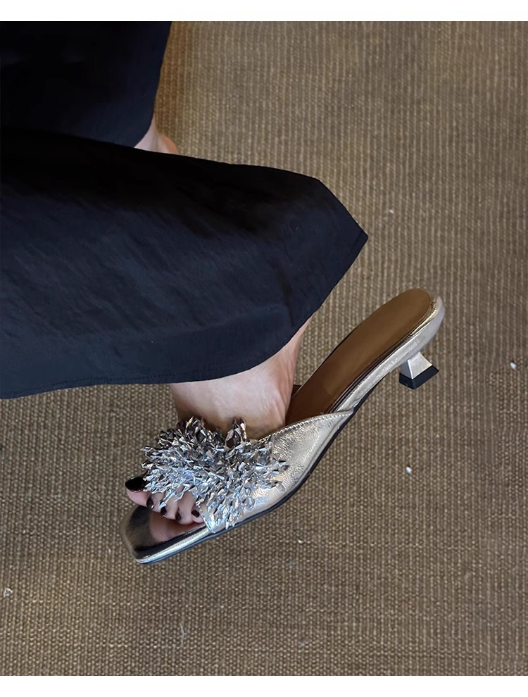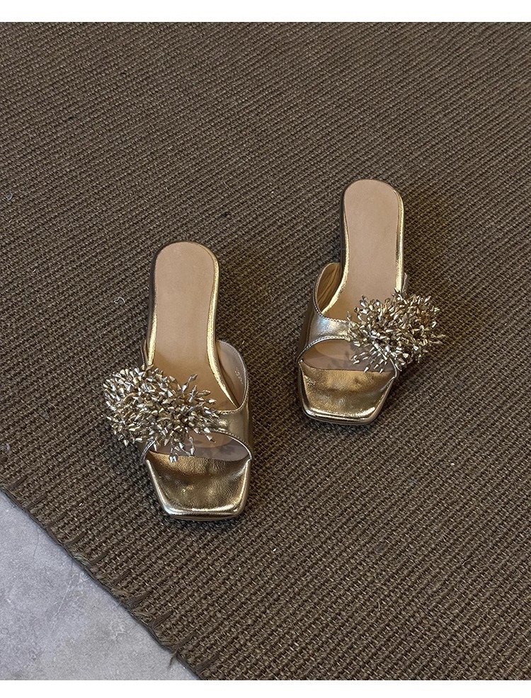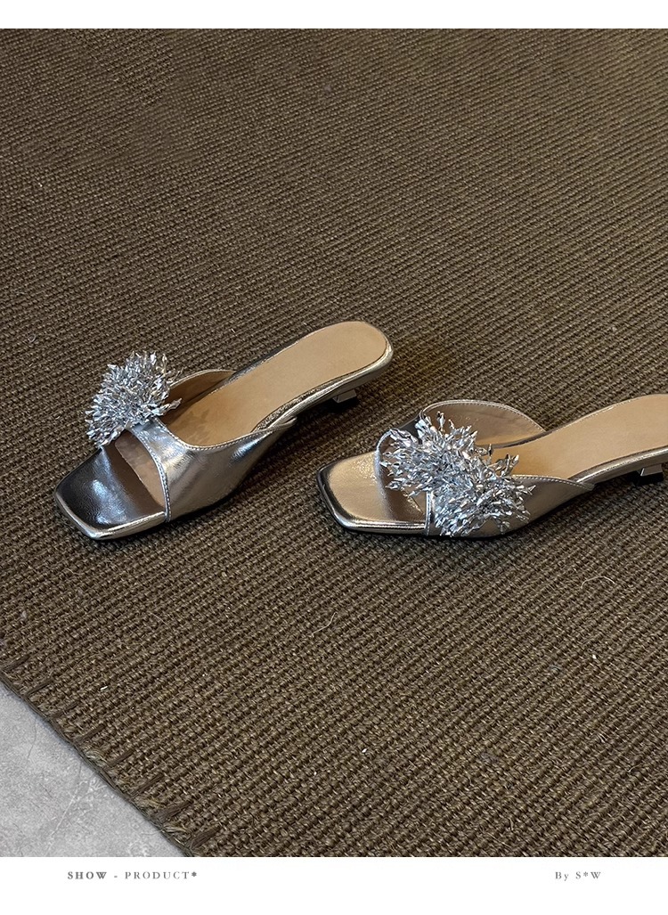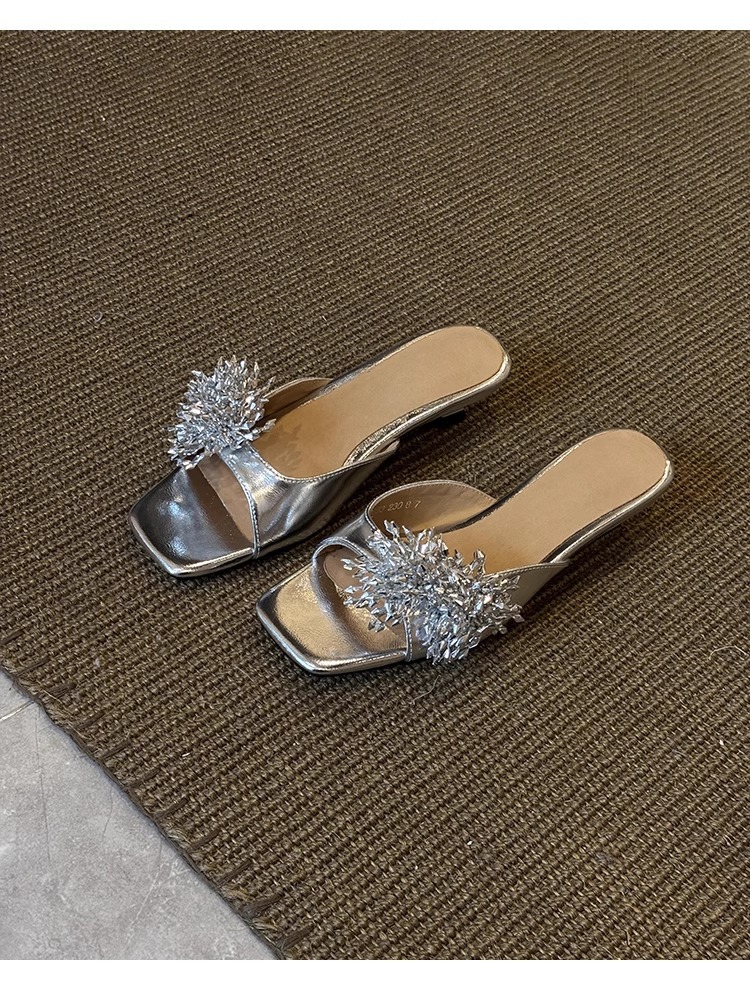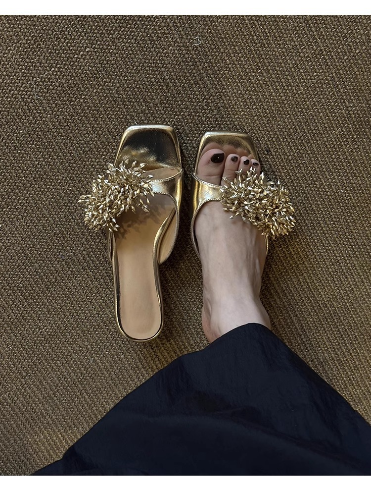 Версия из овчины ~ французские высококачественные женские тапочки из натуральной кожи с фейерверком, универсальные элегантные босоножки на низком каблуке с квадратным носком