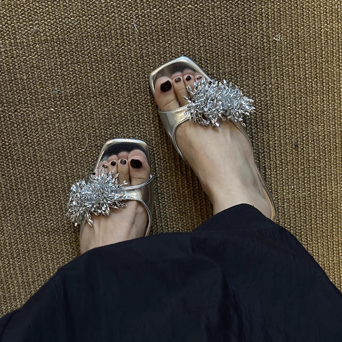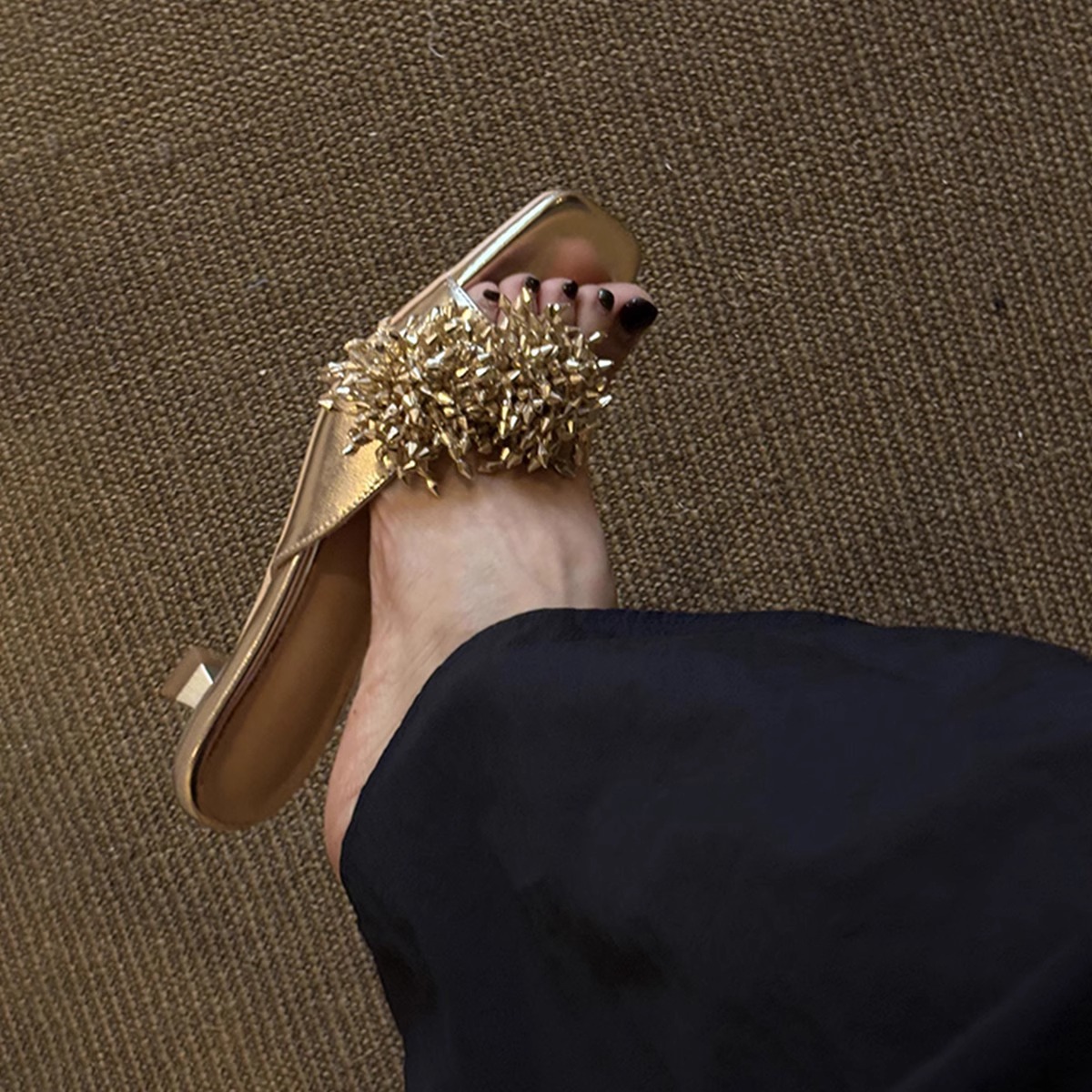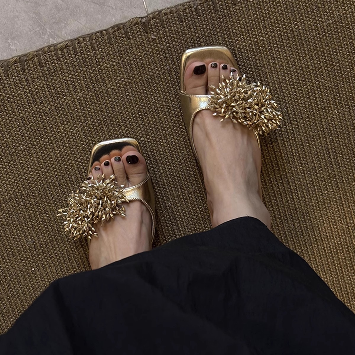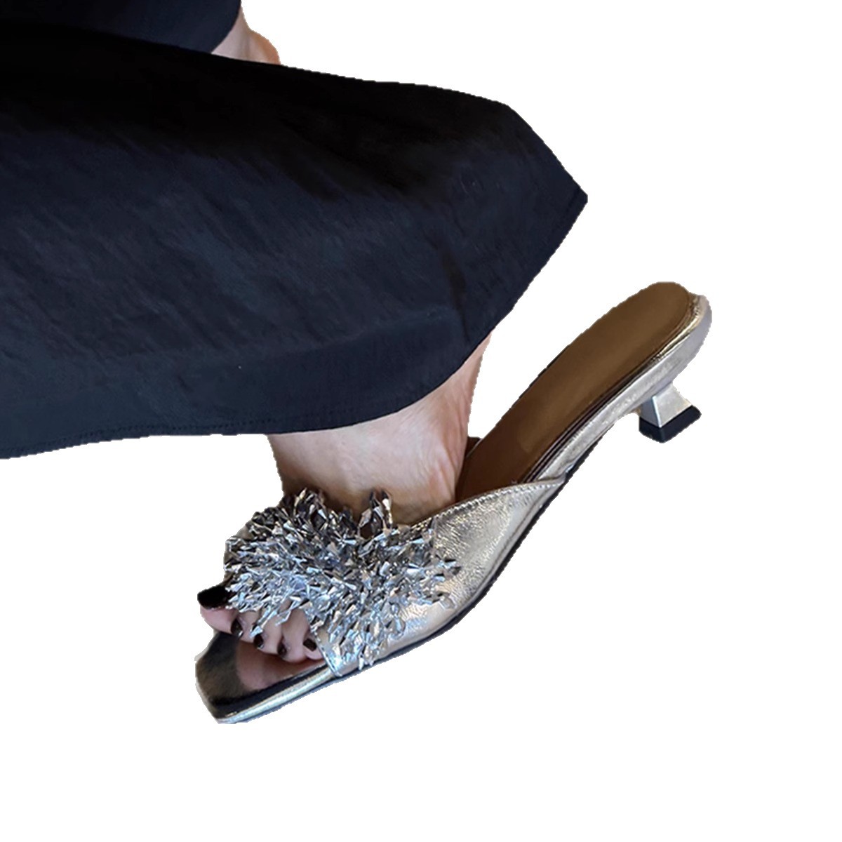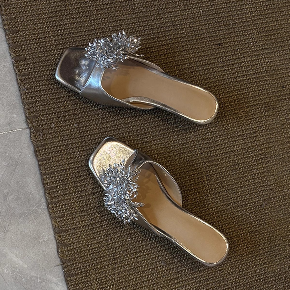 Версия из овчины ~ французские высококачественные женские тапочки из натуральной кожи с фейерверком, универсальные элегантные босоножки на низком каблуке с квадратным носком