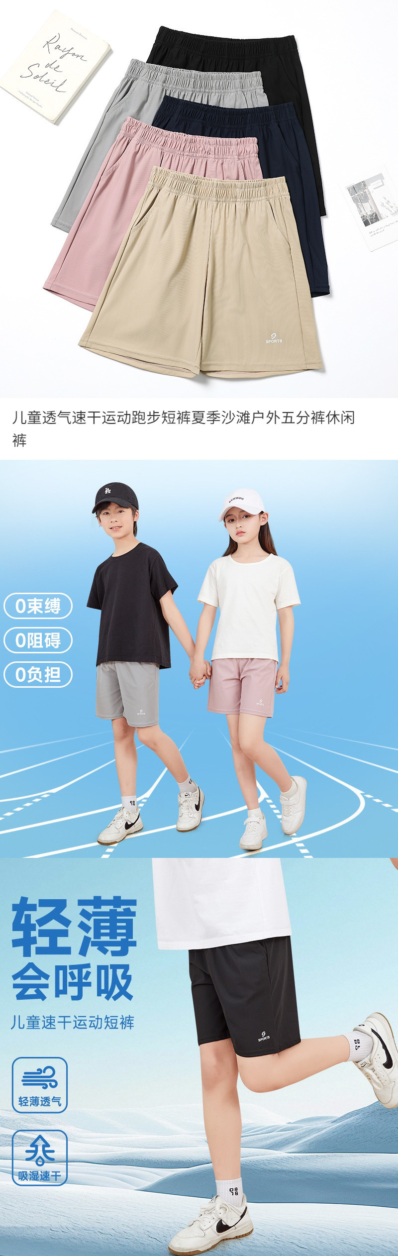 Детские спортивные шорты, быстросохнущие летние крутые пляжные шорты для бега на открытом воздухе, брюки с пятью точками для мальчиков и девочек, тонкие повседневные брюки