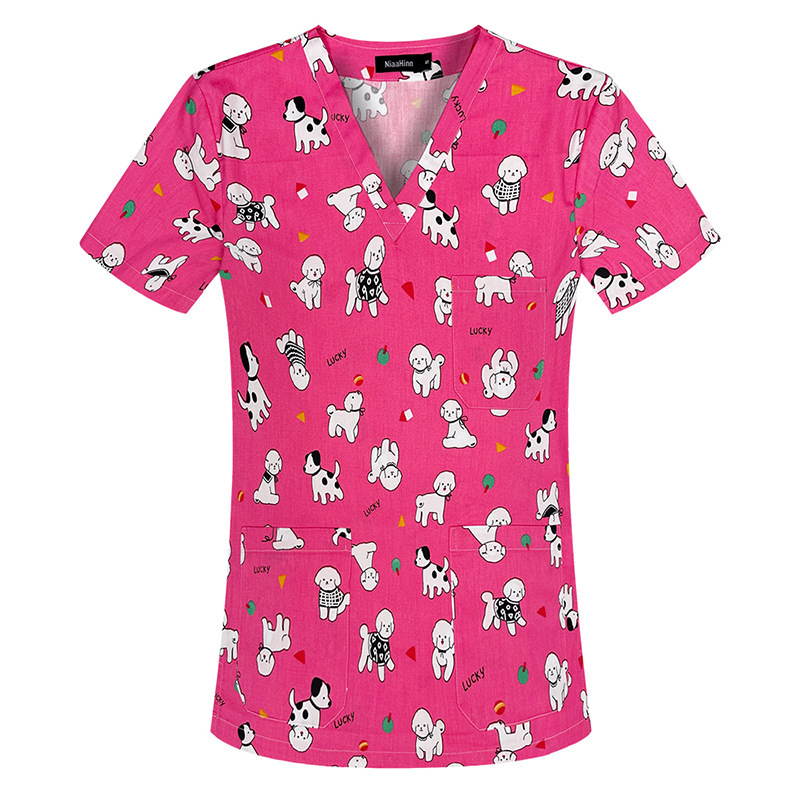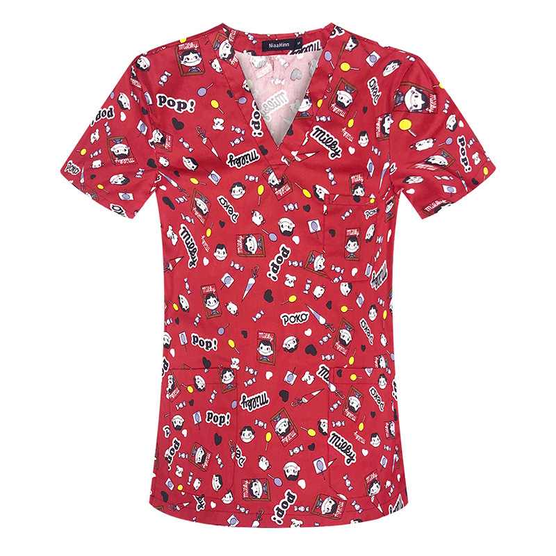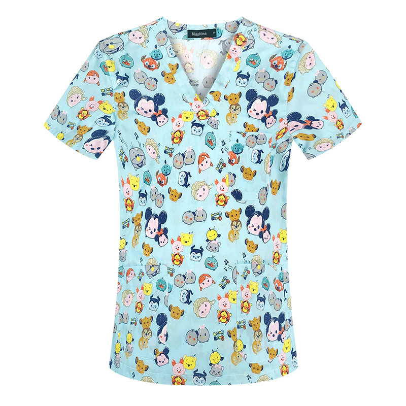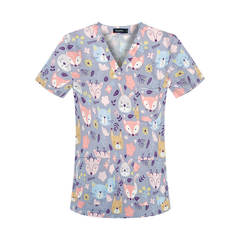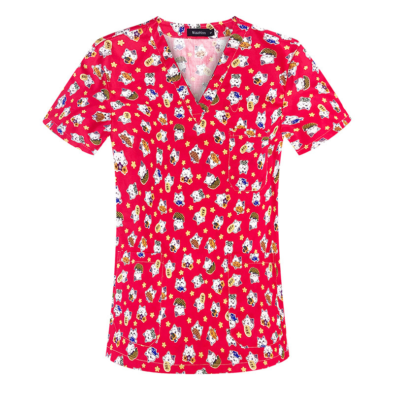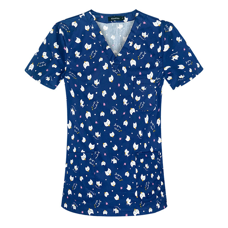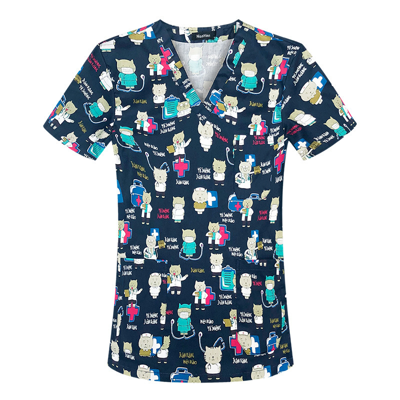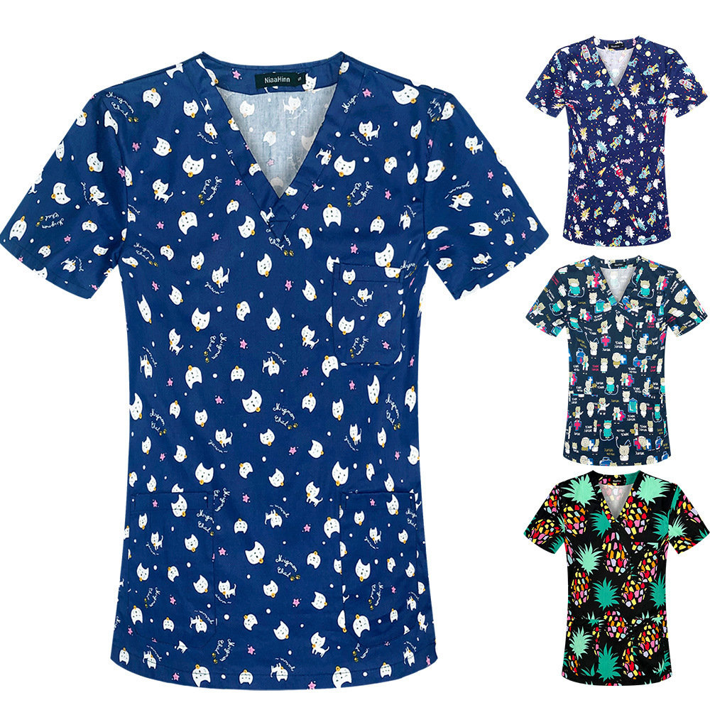 Униформа медсестры с принтом, одежда для мытья рук с короткими рукавами для женщин-докторов, летняя тонкая хлопковая рабочая одежда для домашнего хозяйства, красоты, работы в больнице для домашних животных для мужчин
