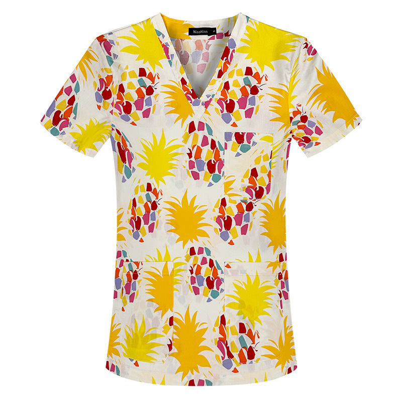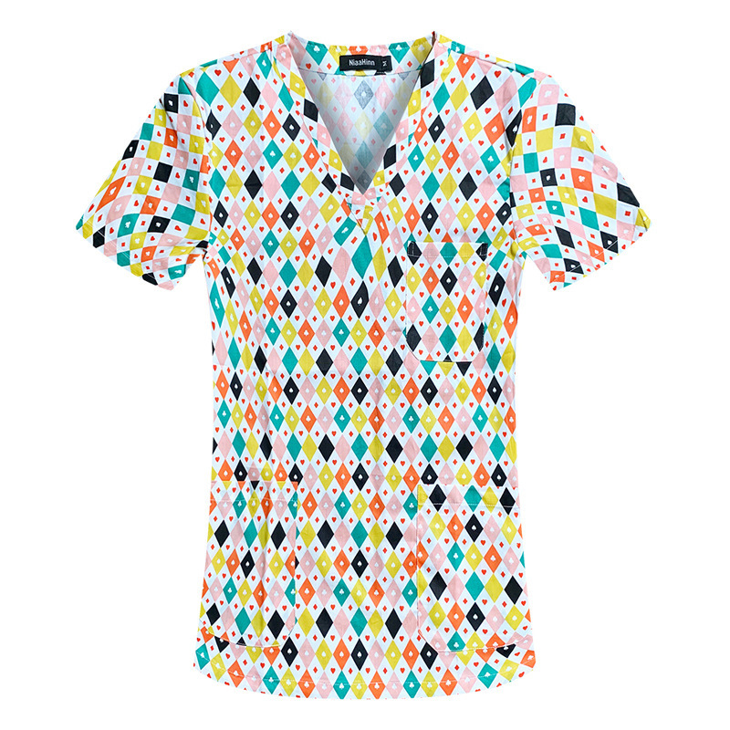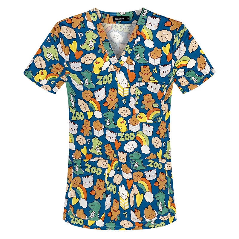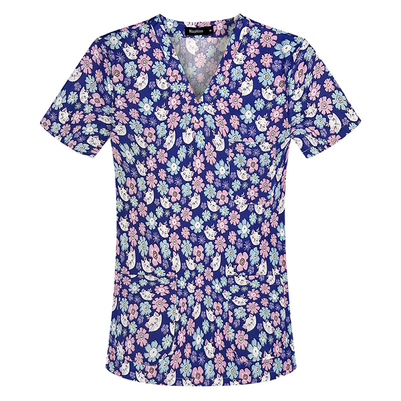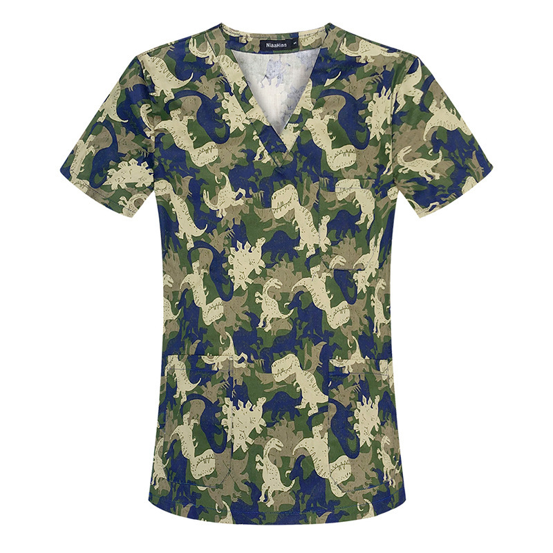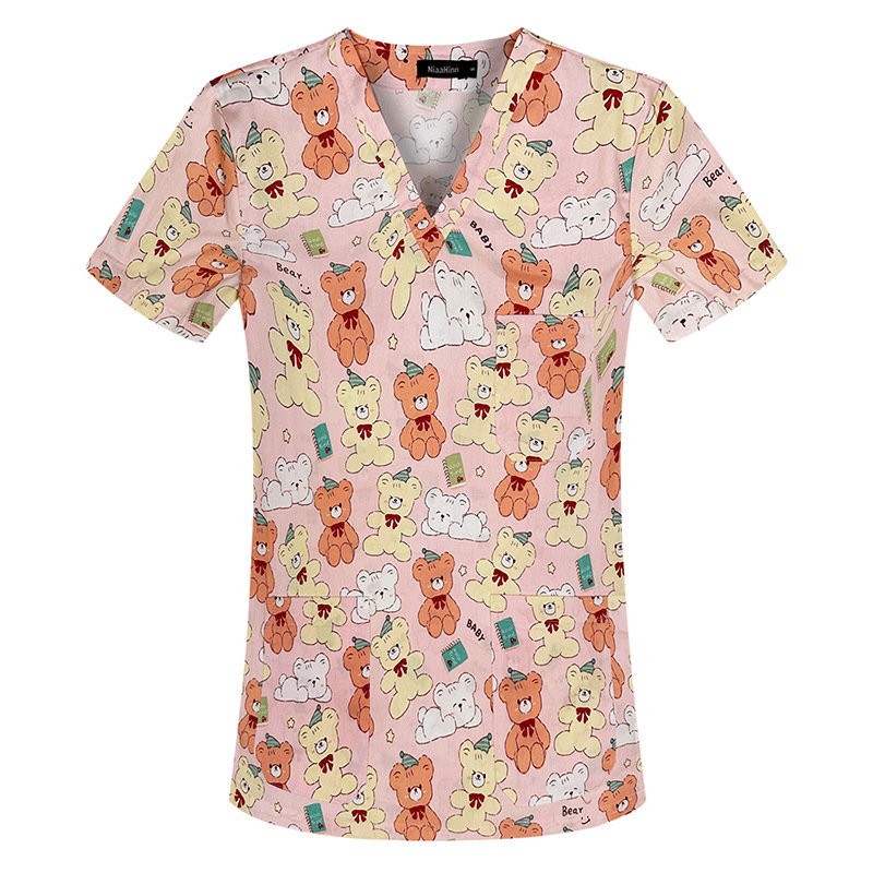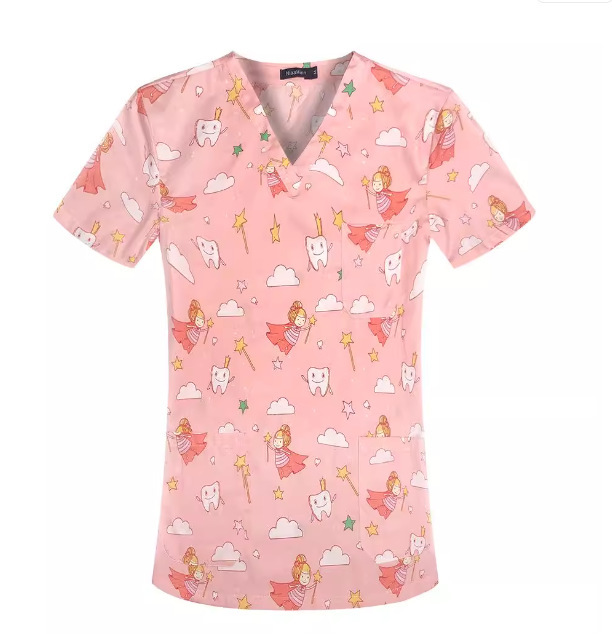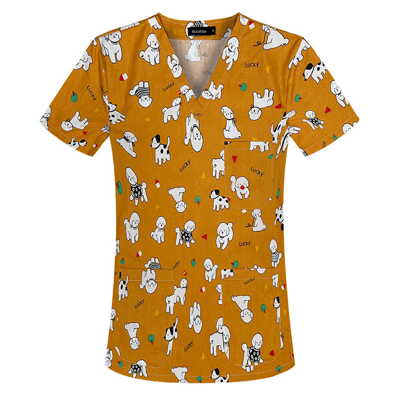 Униформа медсестры с принтом, одежда для мытья рук с короткими рукавами для женщин-докторов, летняя тонкая хлопковая рабочая одежда для домашнего хозяйства, красоты, работы в больнице для домашних животных для мужчин