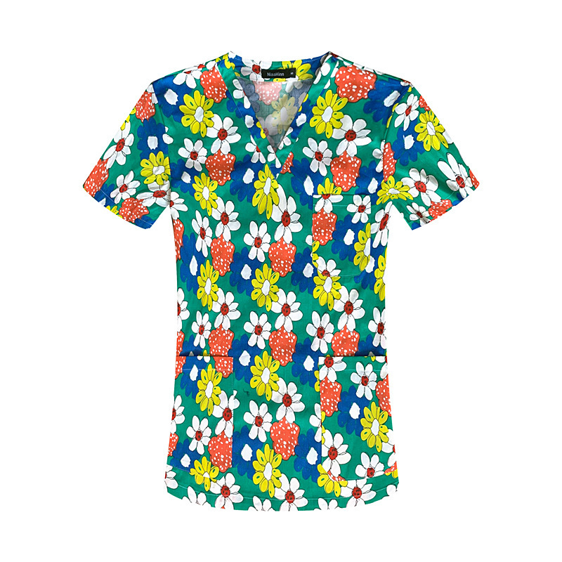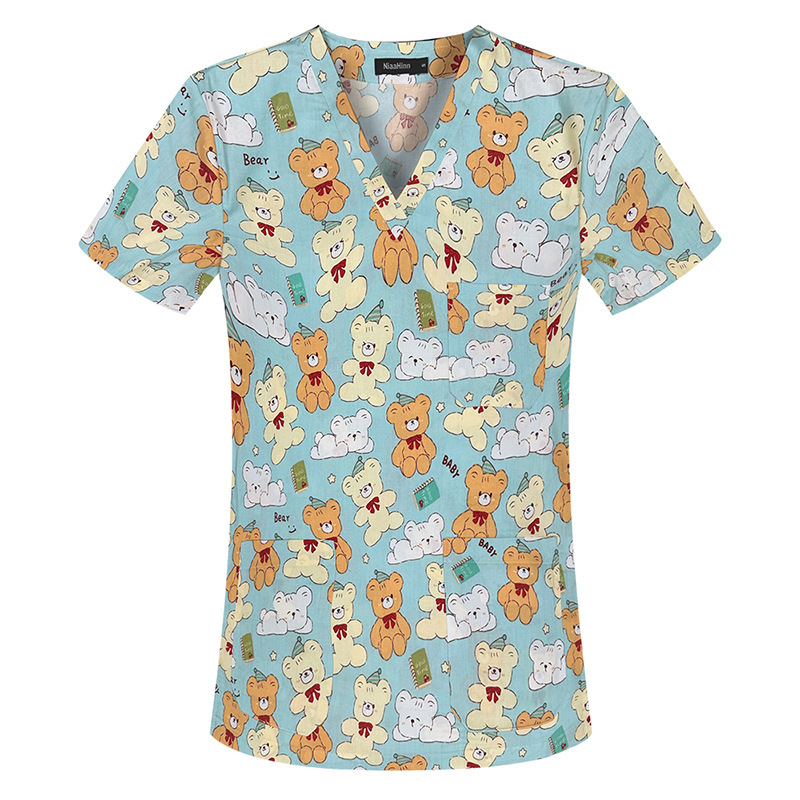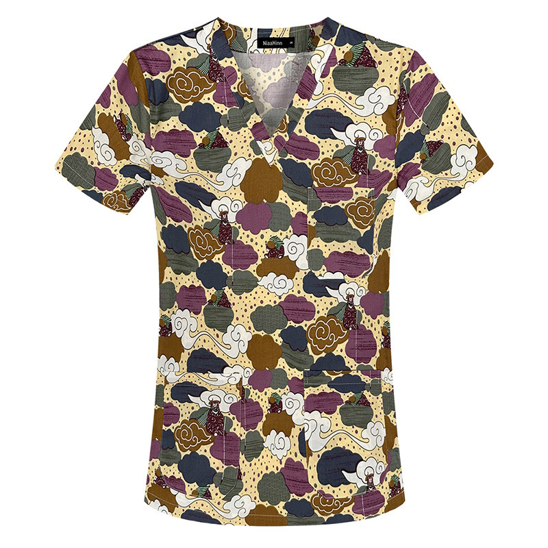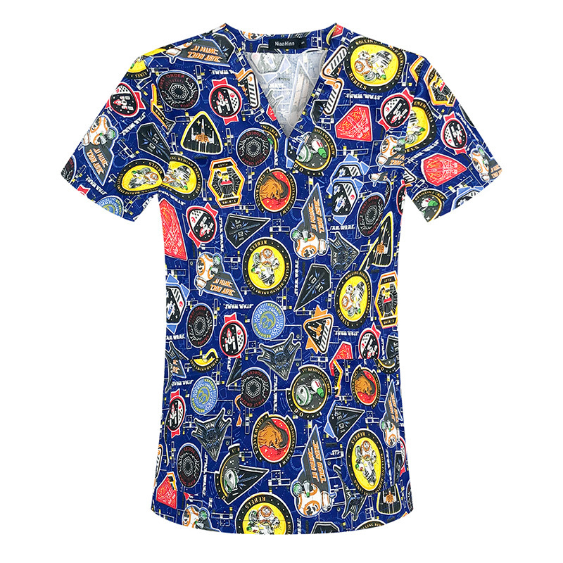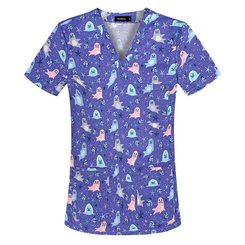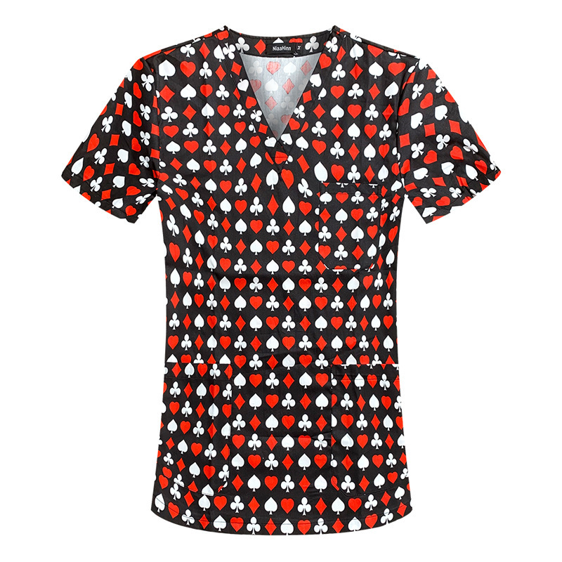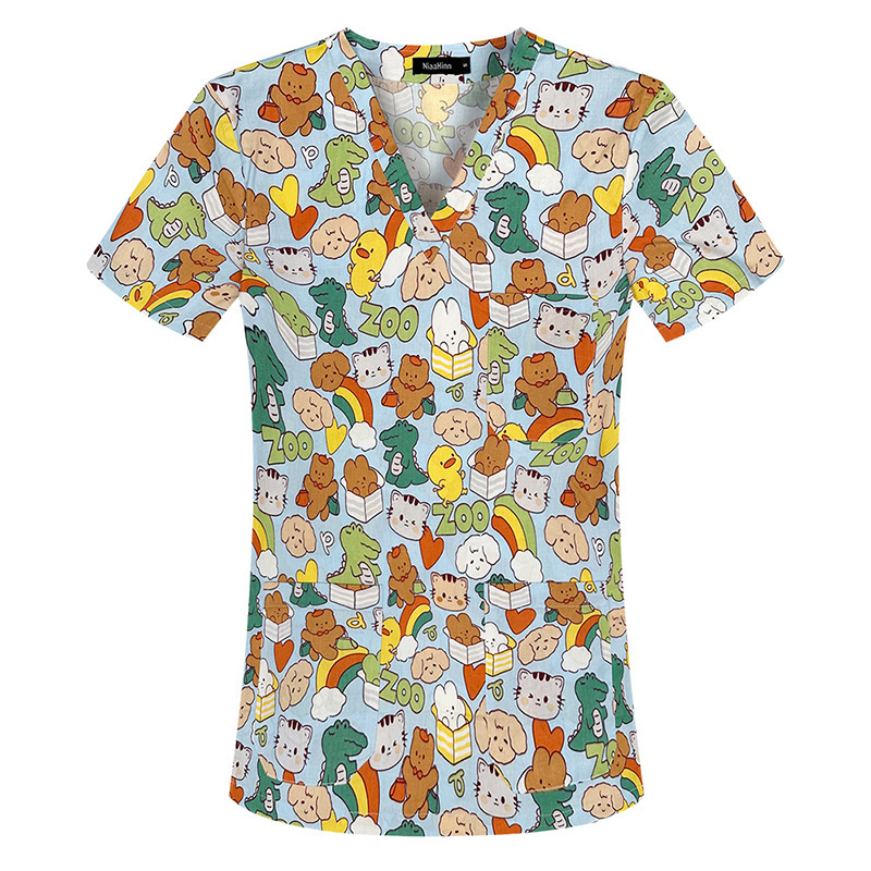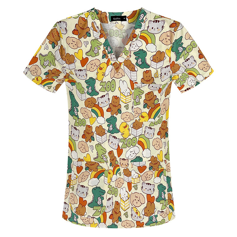Униформа медсестры с принтом, одежда для мытья рук с короткими рукавами для женщин-докторов, летняя тонкая хлопковая рабочая одежда для домашнего хозяйства, красоты, работы в больнице для домашних животных для мужчин