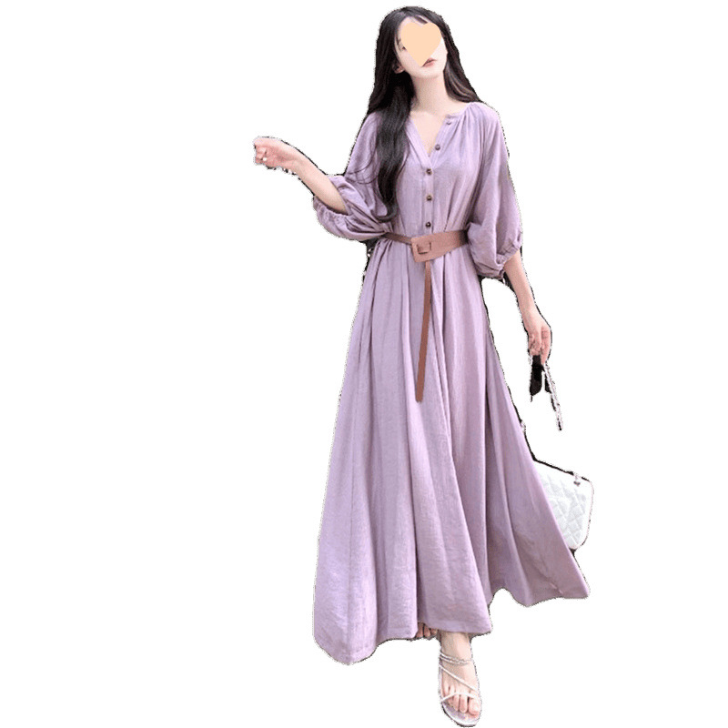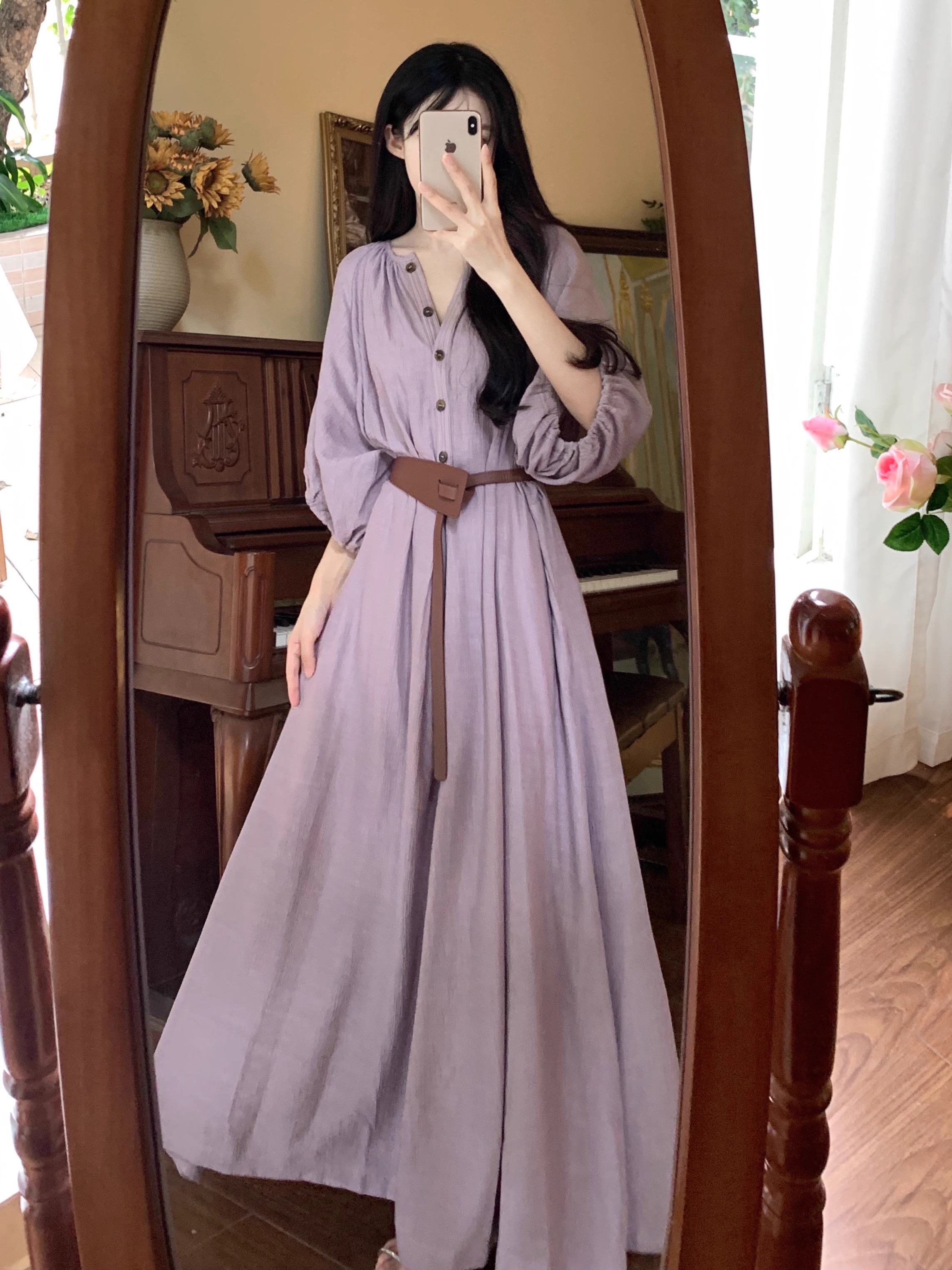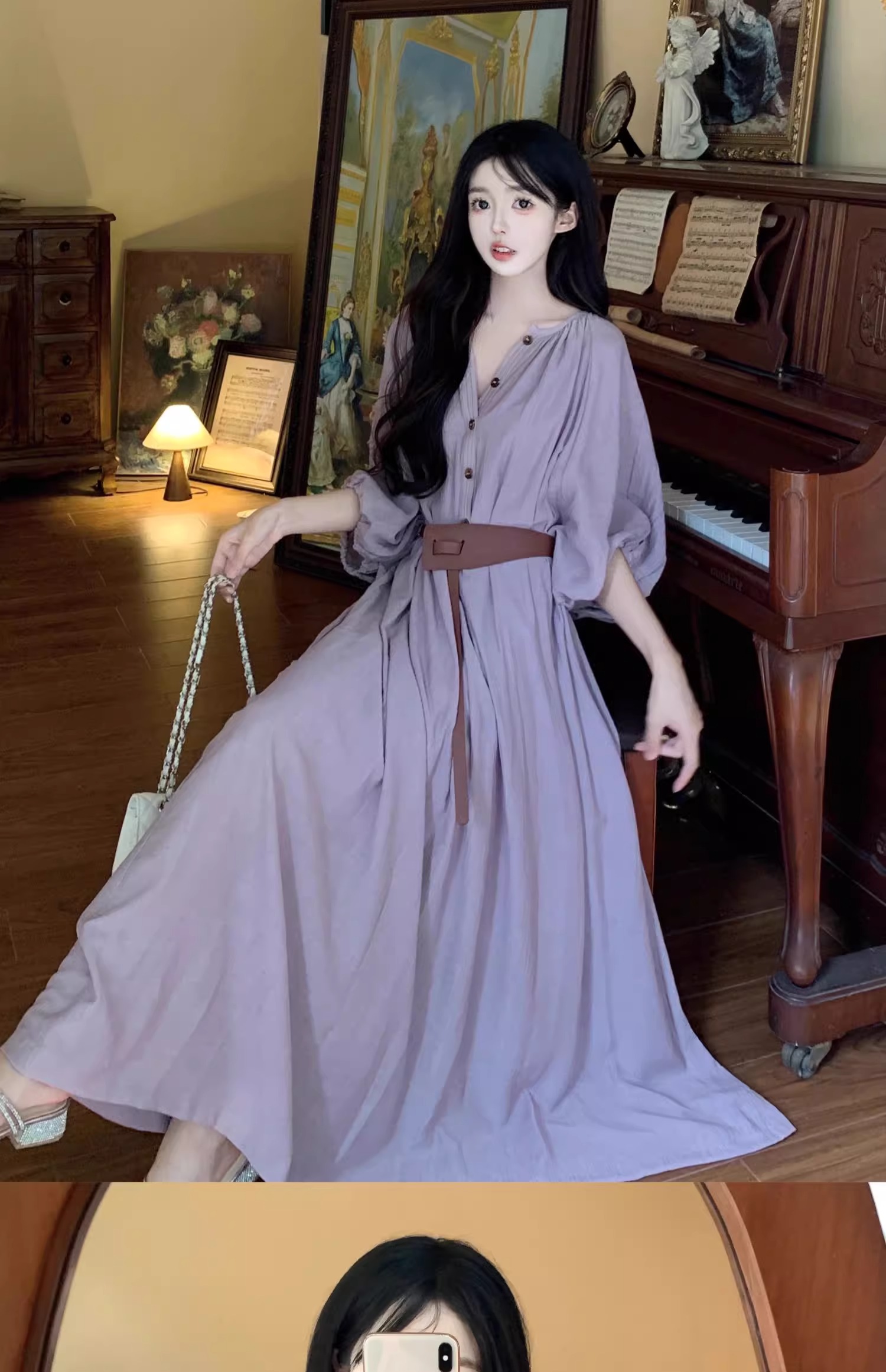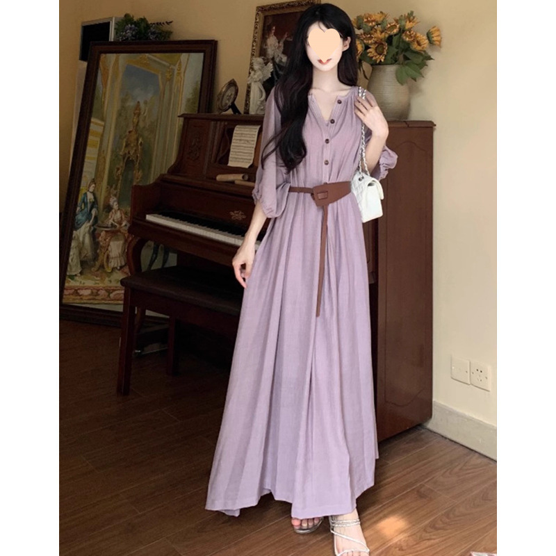 Фиолетовое платье с длинными рукавами больших размеров, женское французское модное раннее лето, толстая мм, красивая одежда дофамина, длинная юбка