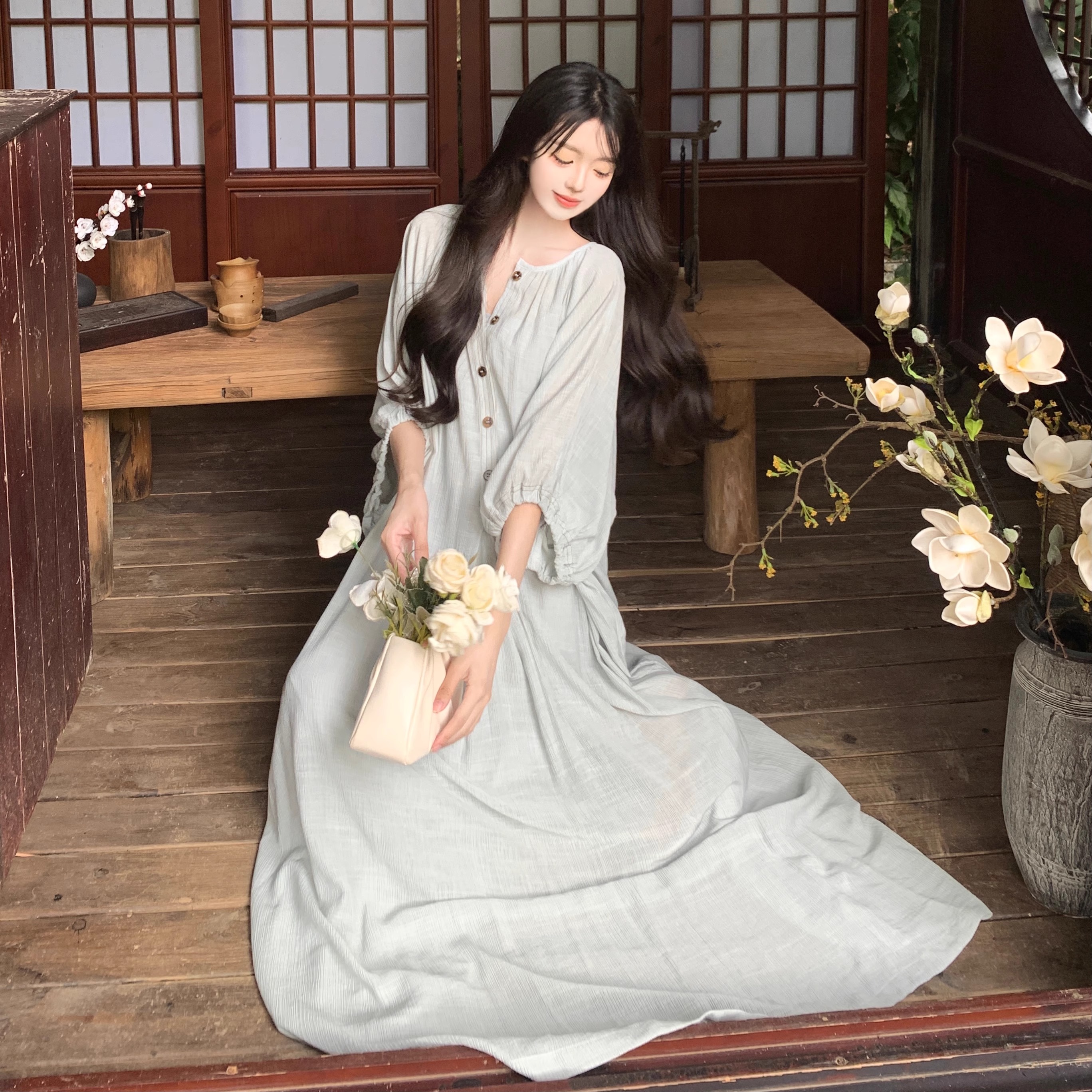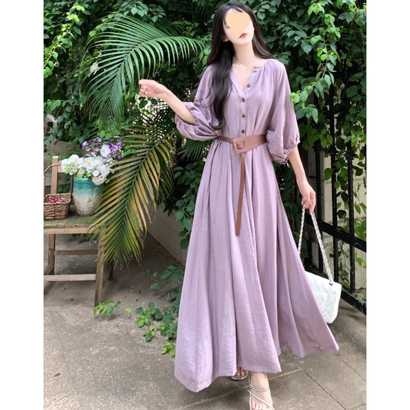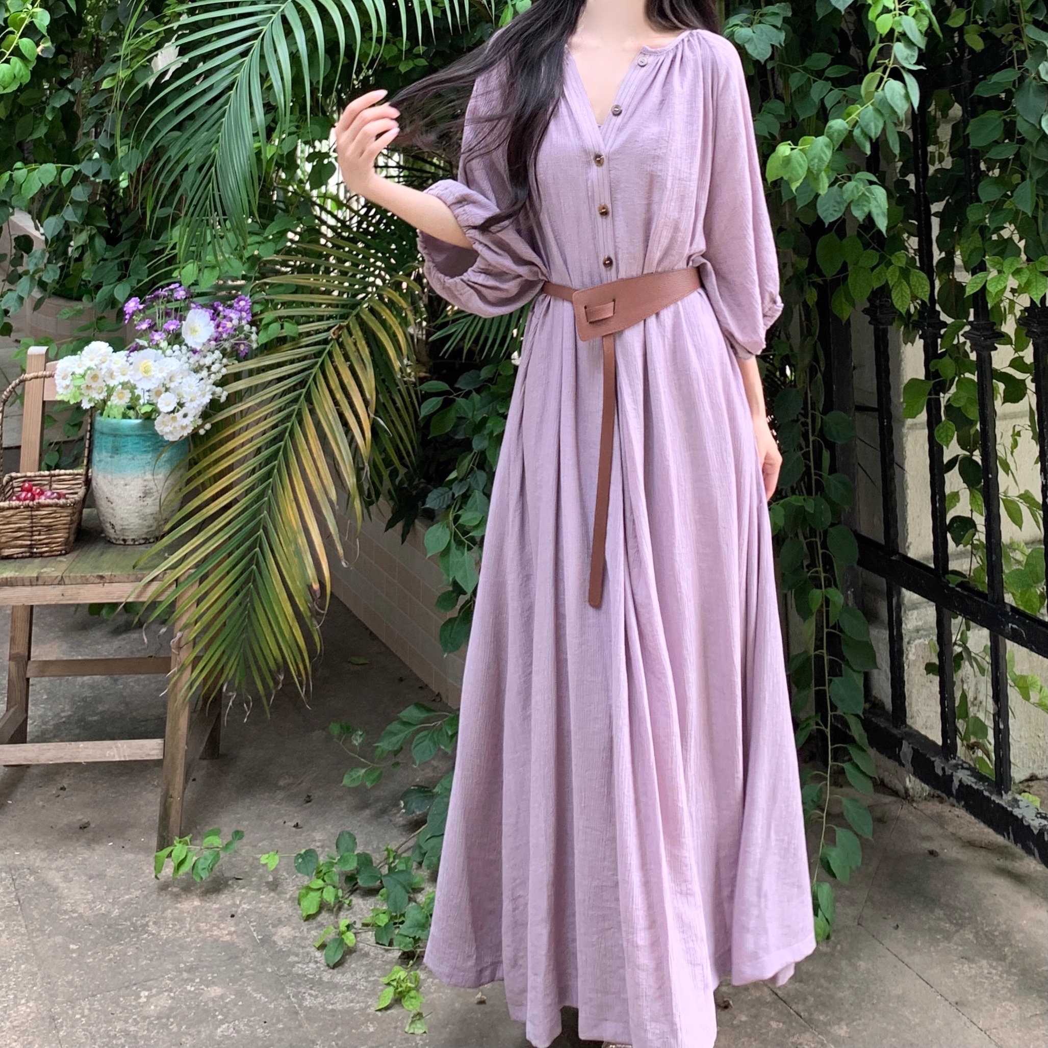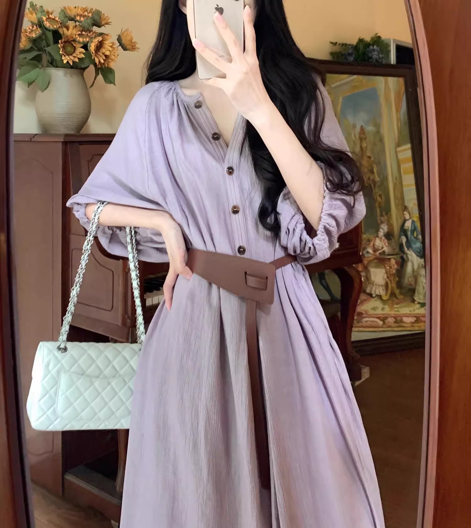 Фиолетовое платье с длинными рукавами больших размеров, женское французское модное раннее лето, толстая мм, красивая одежда дофамина, длинная юбка