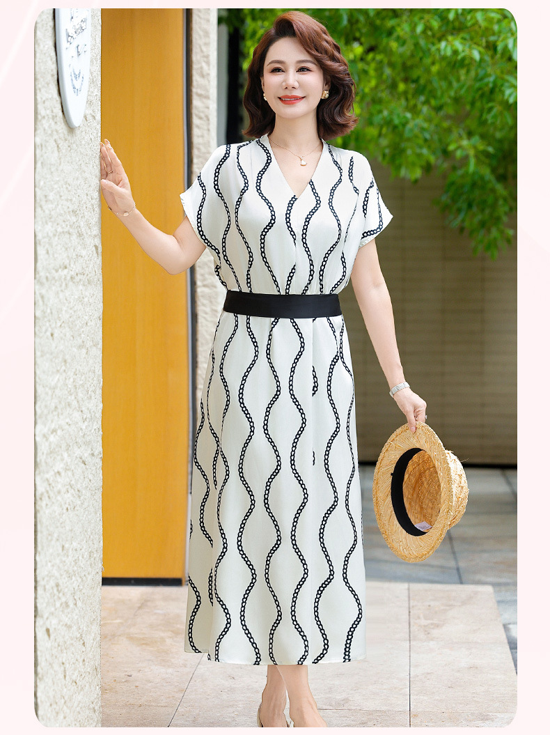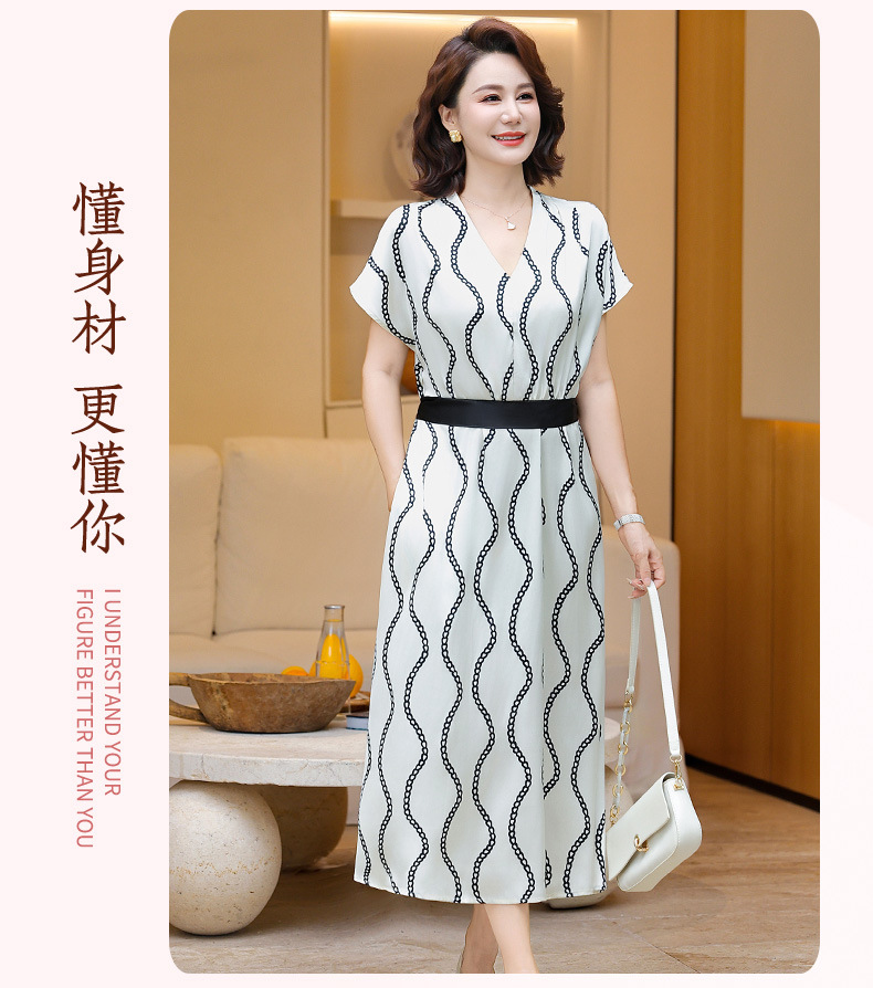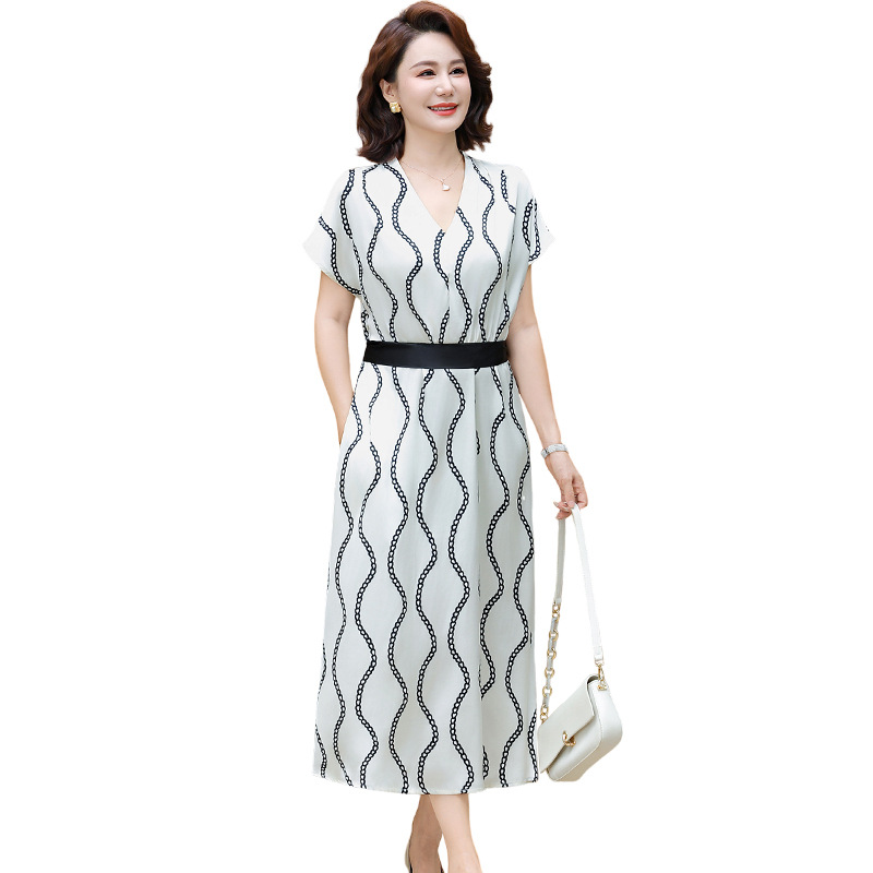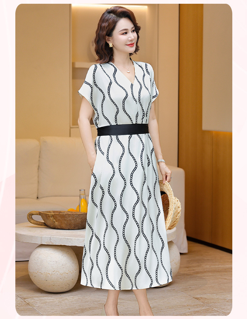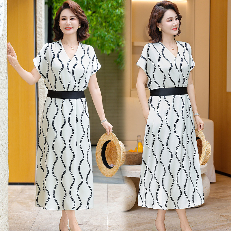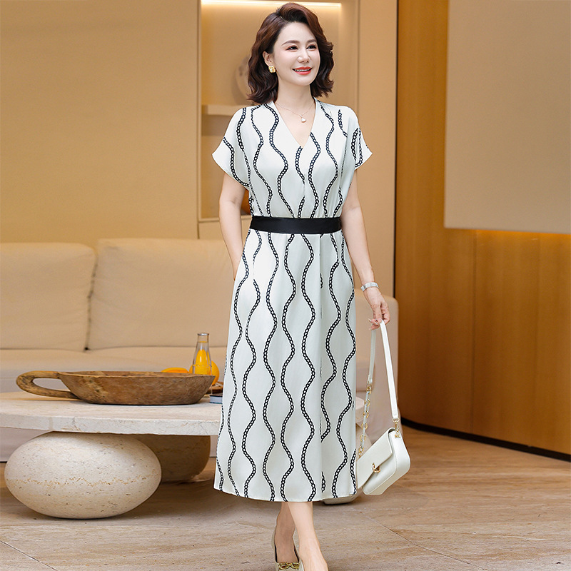 2025 новое платье с короткими рукавами, модное новое платье в полоску с принтом, большой размер, закрывающая живот, утягивающая юбка средней длины