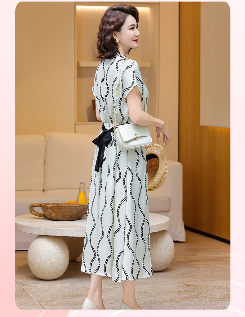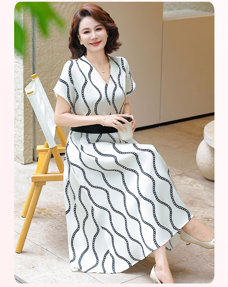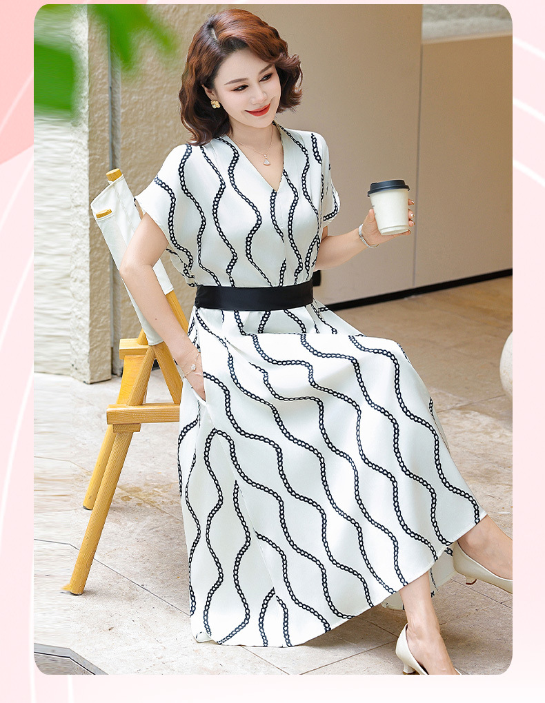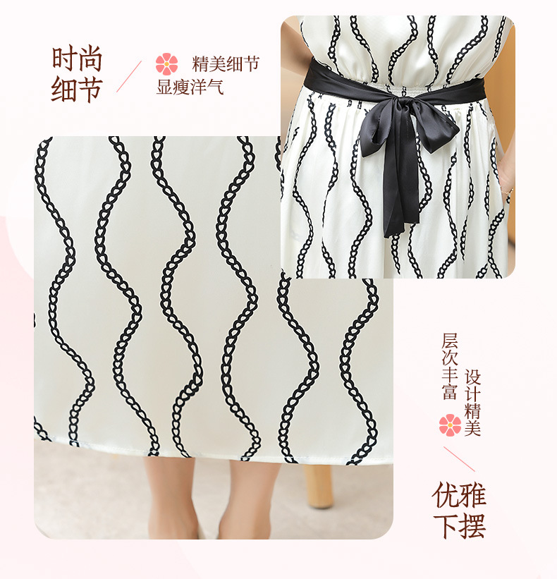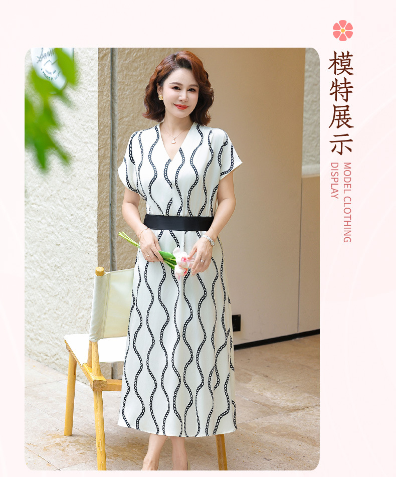 2025 новое платье с короткими рукавами, модное новое платье в полоску с принтом, большой размер, закрывающая живот, утягивающая юбка средней длины