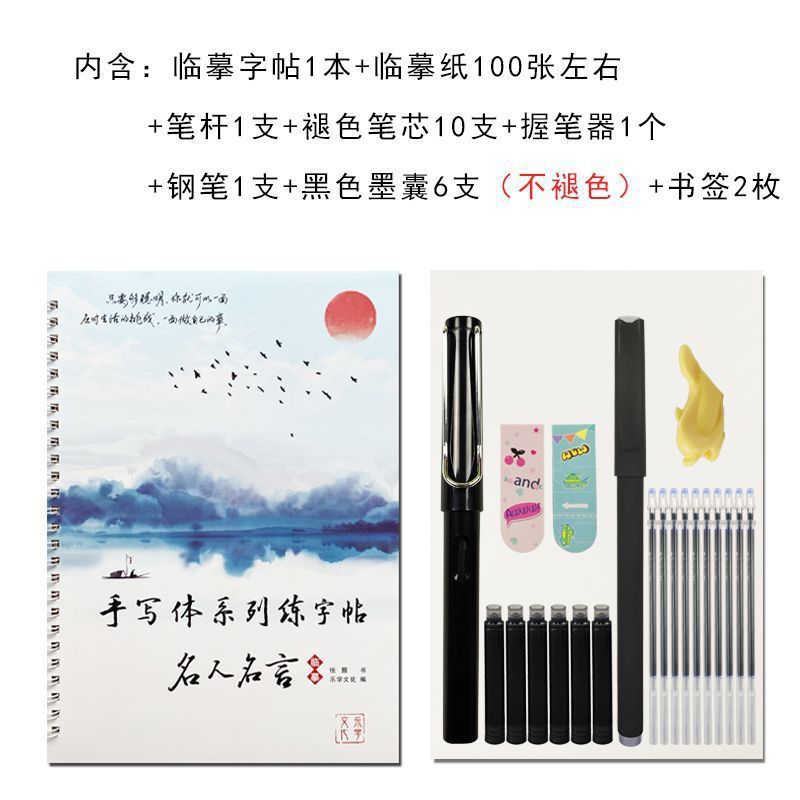Знаменитые цитаты + 10 выцветших стержней; Красивые духовные статьи + 10 выцветших заправок; Известные цитаты + копировальная бумага + 1 ручка + 6 мешочков с чернилами; Красивые духовные статьи + копировальная бумага + 1 ручка + 6 мешочков с чернилами.; Знаменитые цитаты + копировальная бумага + 2 закладки.; Красивые духовные статьи + копировальная бумага + 2 закладки.; Всего 2 книги [Знаменитые цитаты + красивые эссе] + аксессуары для практики каллиграфии; Всего 3 книги [Базовые рифмы + Знаменитые цитаты + Красивые эссе] + Аксессуары; Знаменитые цитаты + копировальная бумага + выцветшая ручка + перьевая ручка; Красивые духовные статьи + копировальная бумага + выцветшая ручка + перьевая ручка