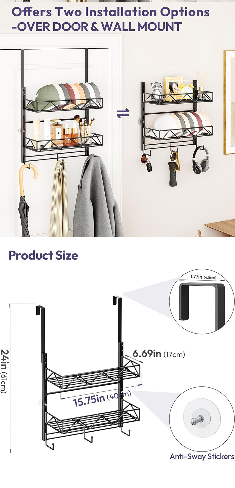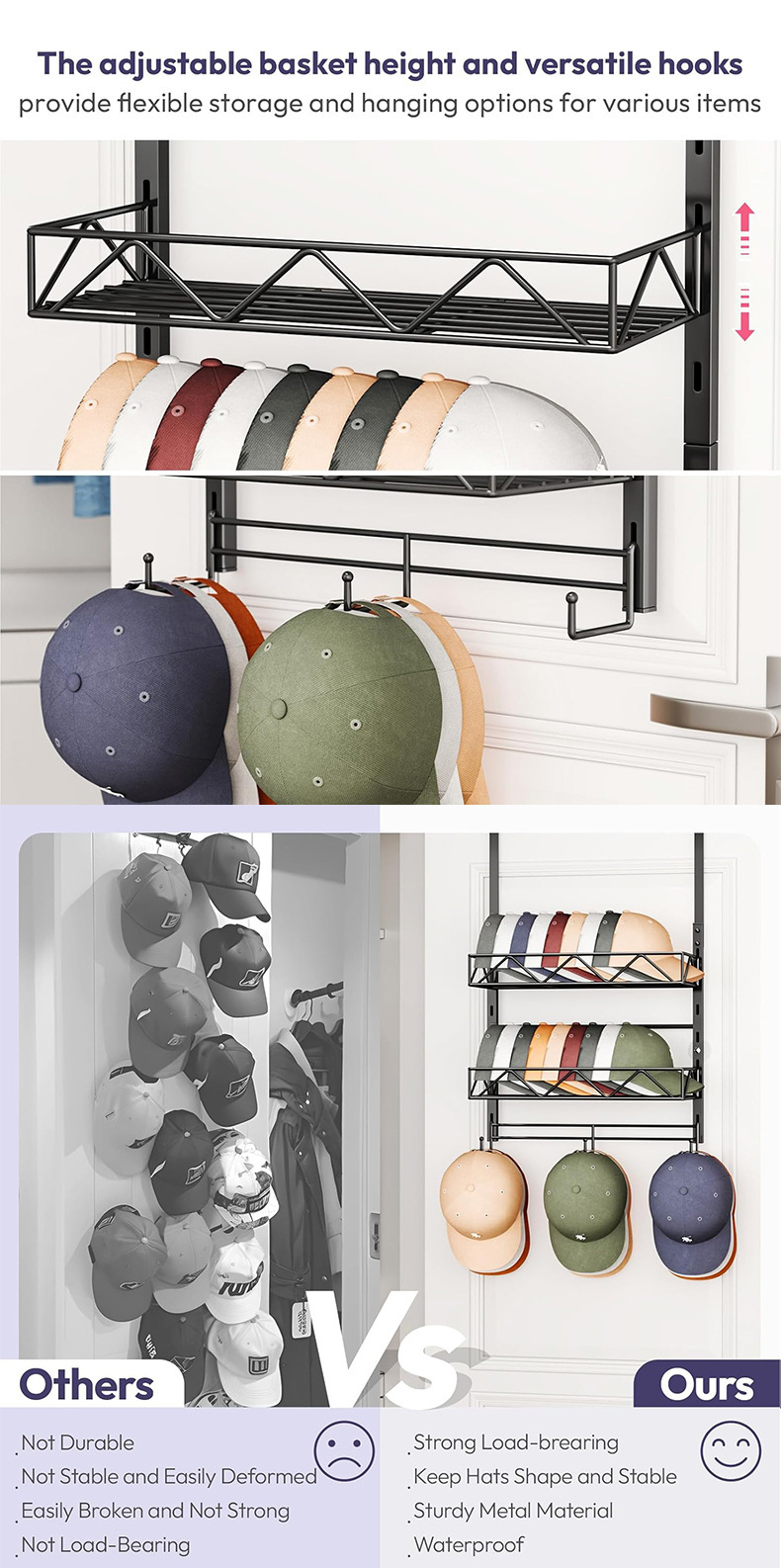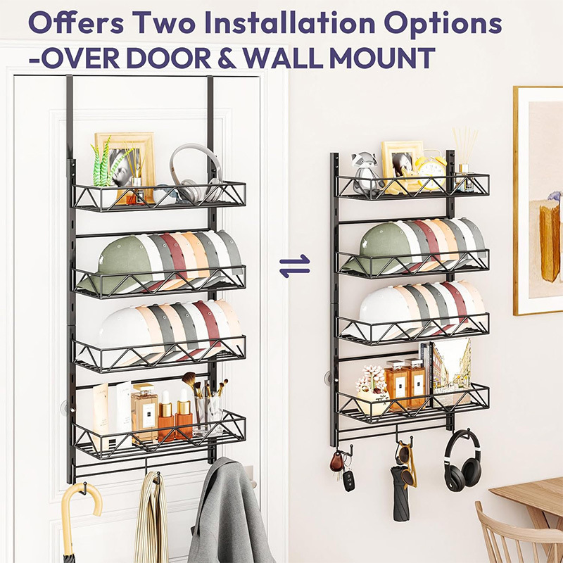 Многоярусная регулируемая настенная подставка для бейсболок, металлическая, для хранения бейсболок в новом стиле, оптом, для установки за дверью