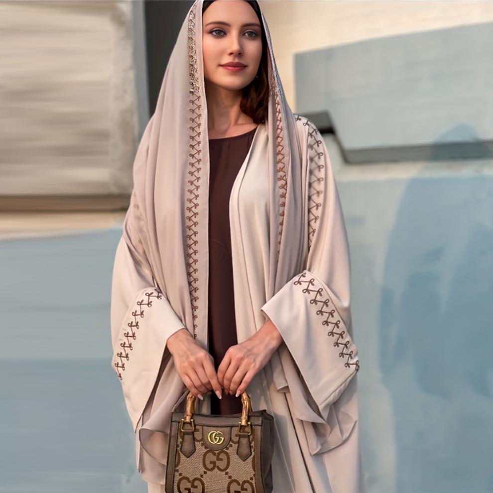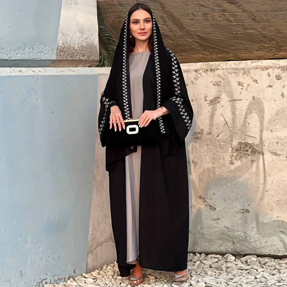 Женская абайя, мусульманский хиджаб, кардиган, вышитая длинная юбка, арабский халат, рукав-крыло, верхняя одежда, трансграничная торговля.