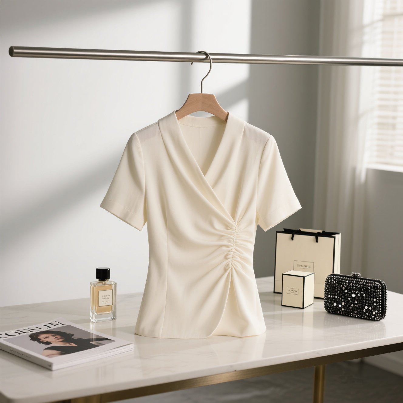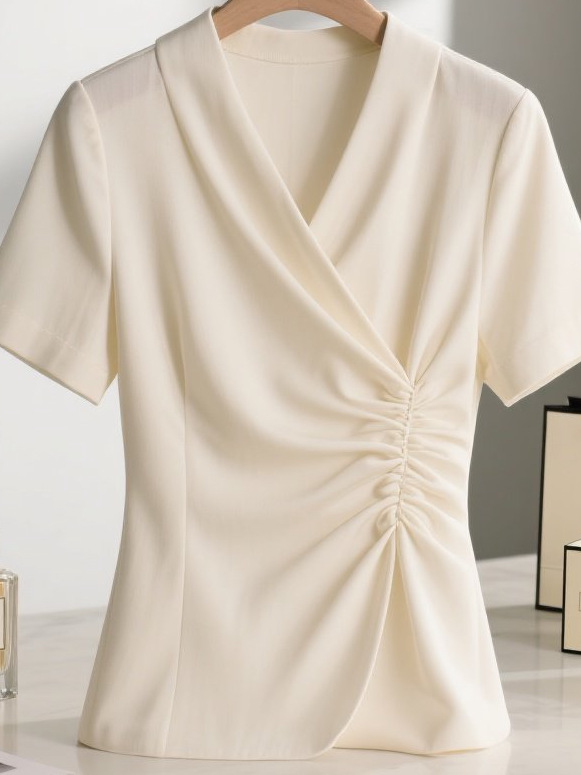 Элегантная женская рубашка лето 2025, новая мода, универсальная, короткий рукав, неровный подол, однотонная.