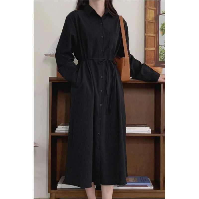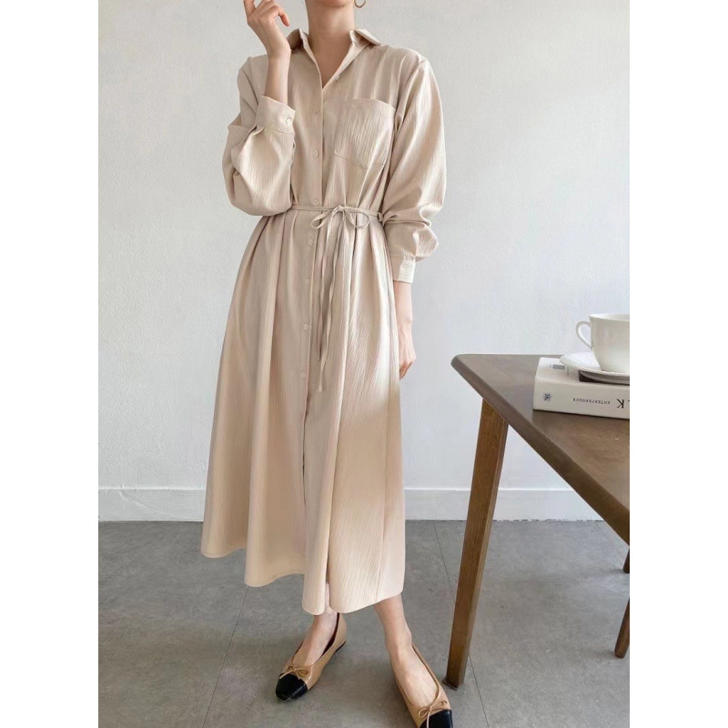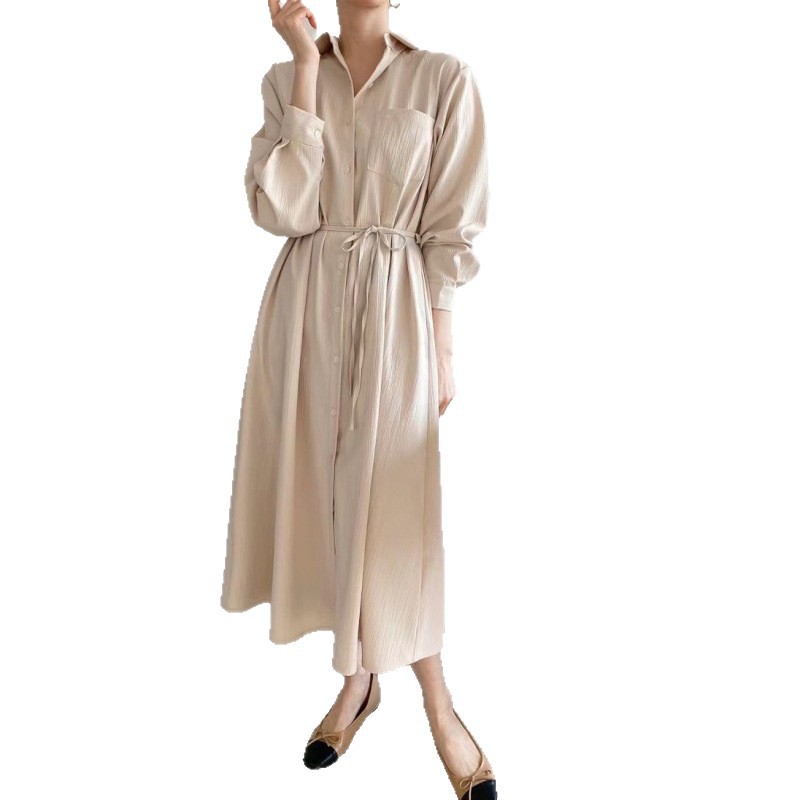 Корейское шикарное весеннее новое универсальное однобортное платье-рубашка с лацканами и шнуровкой на талии для женщин