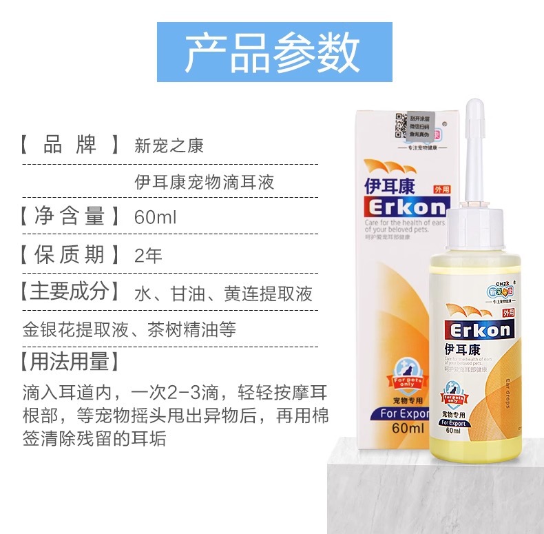 Новый любимый Кан Я И Эр Кан 60 мл; Раствор для чистки ушей Xiaopet, 50 мл/кор.