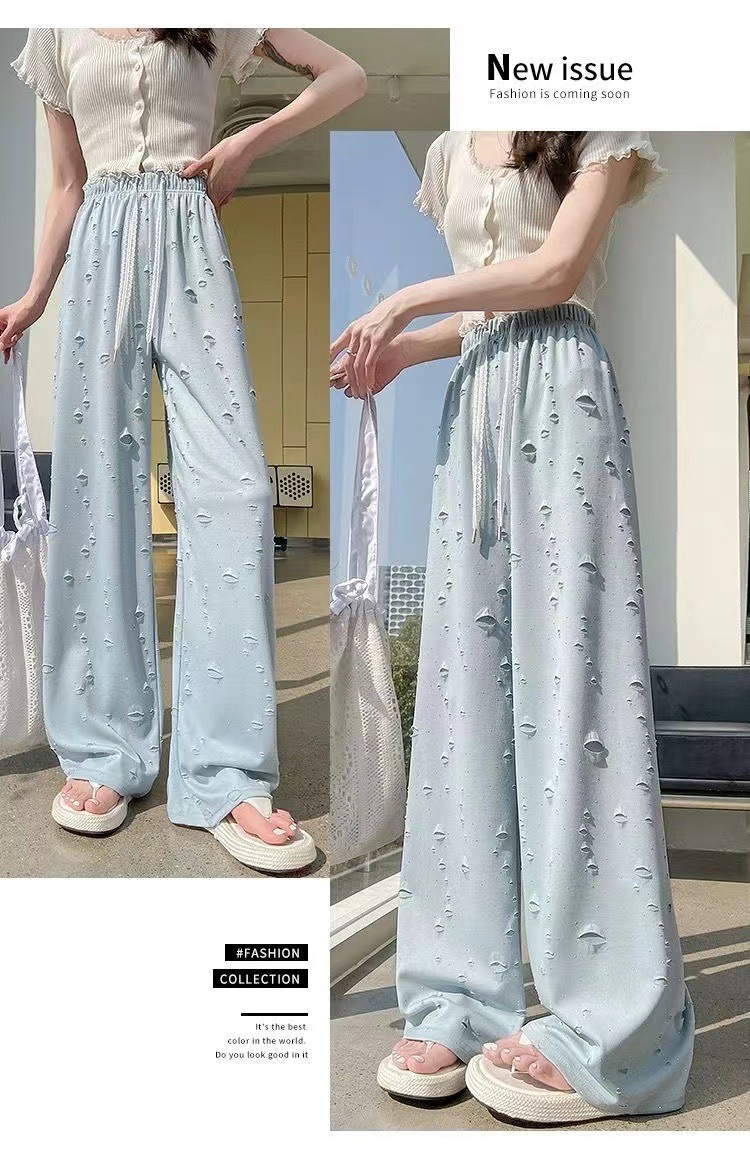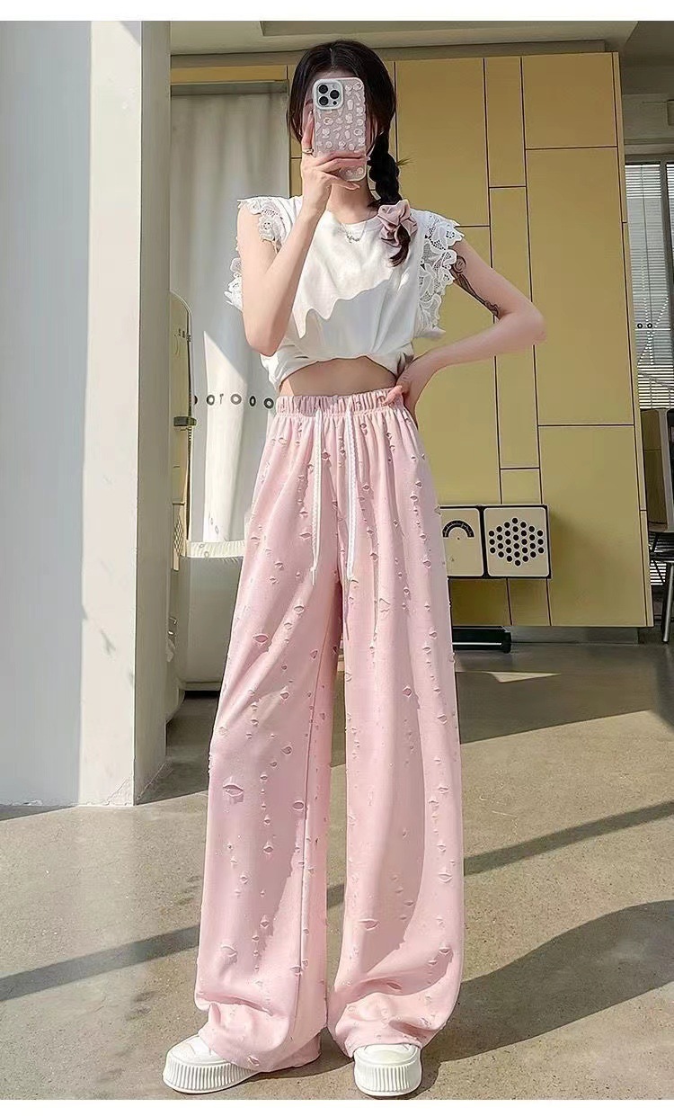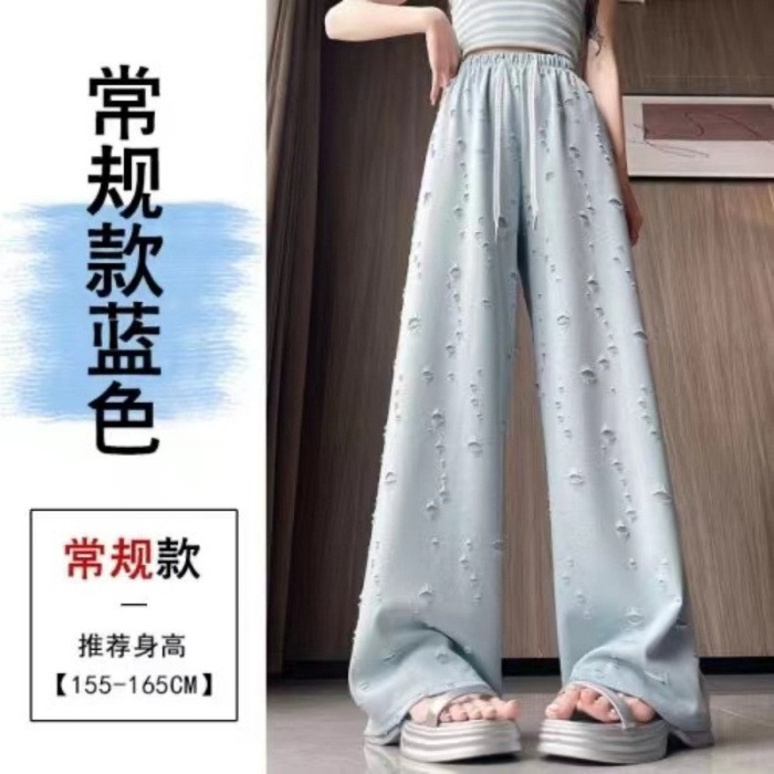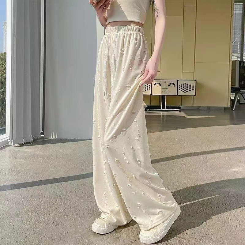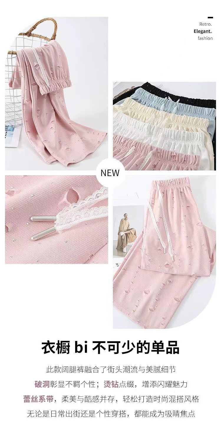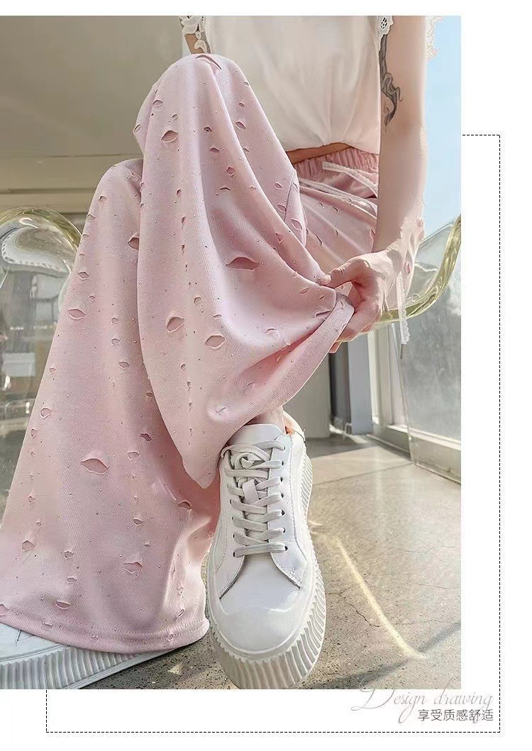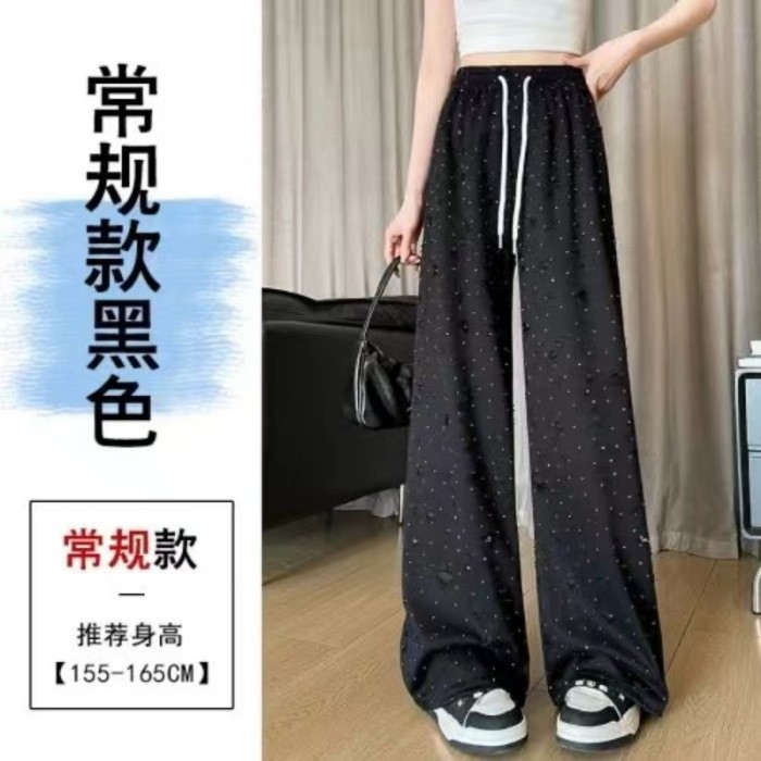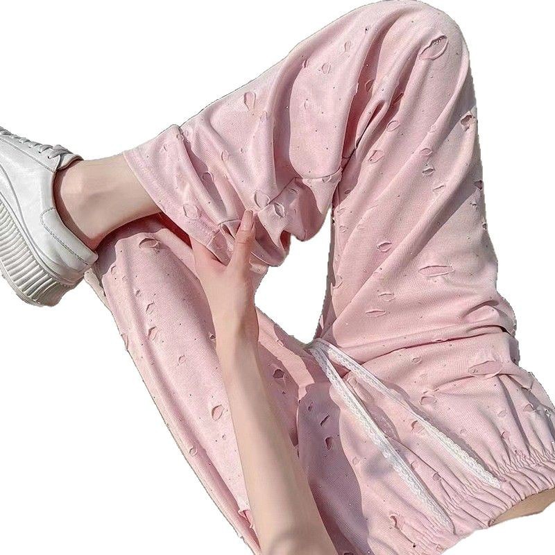 Уличные рваные длинные брюки в корейском стиле на шнурке, повседневные американские брюки Ямамото с высокой талией, милые свободные прямые широкие брюки со стразами