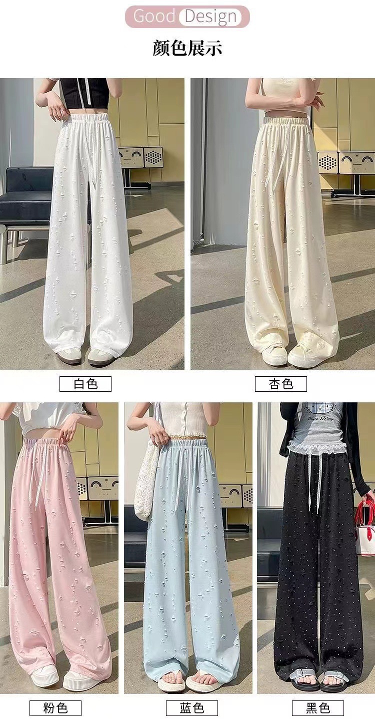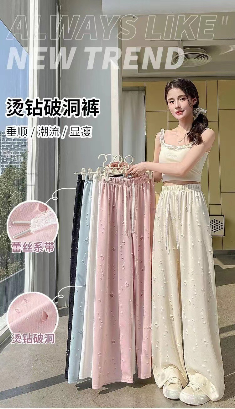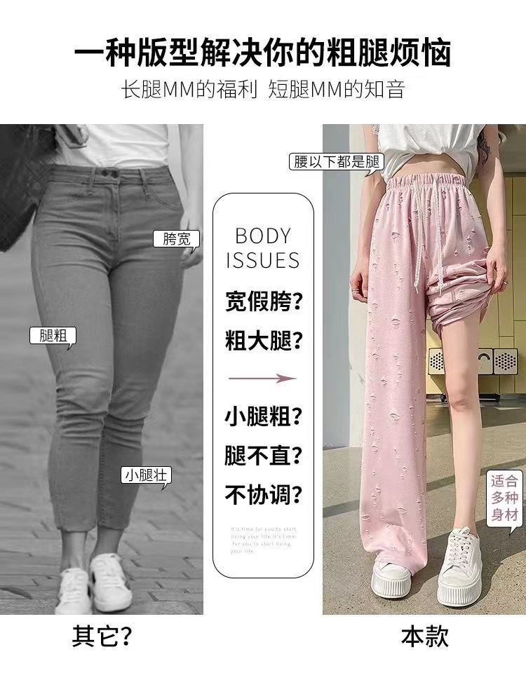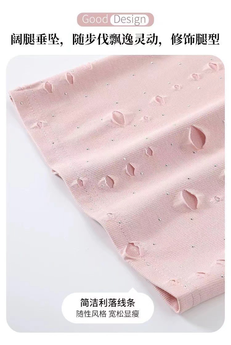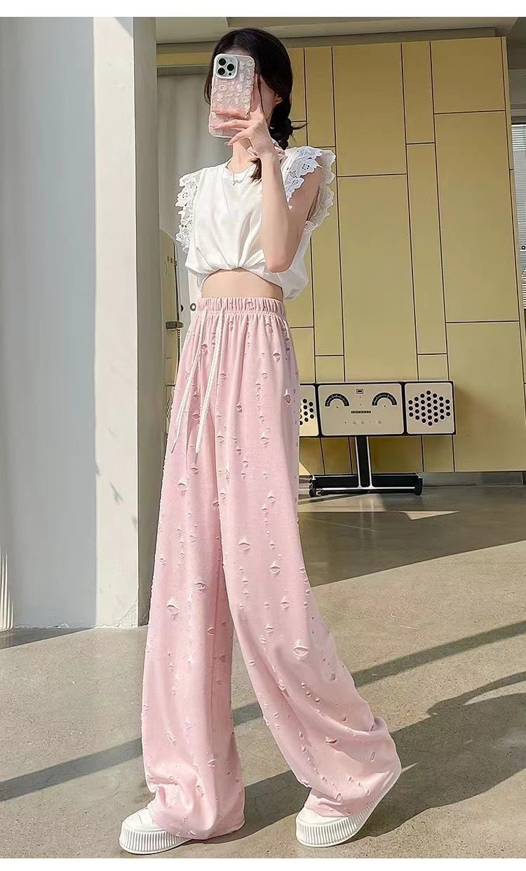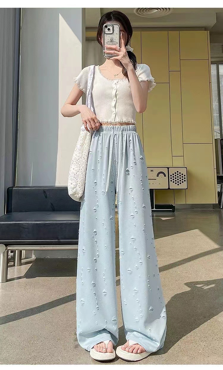 Уличные рваные длинные брюки в корейском стиле на шнурке, повседневные американские брюки Ямамото с высокой талией, милые свободные прямые широкие брюки со стразами