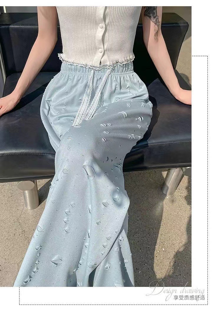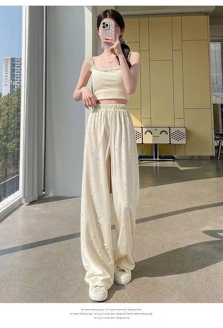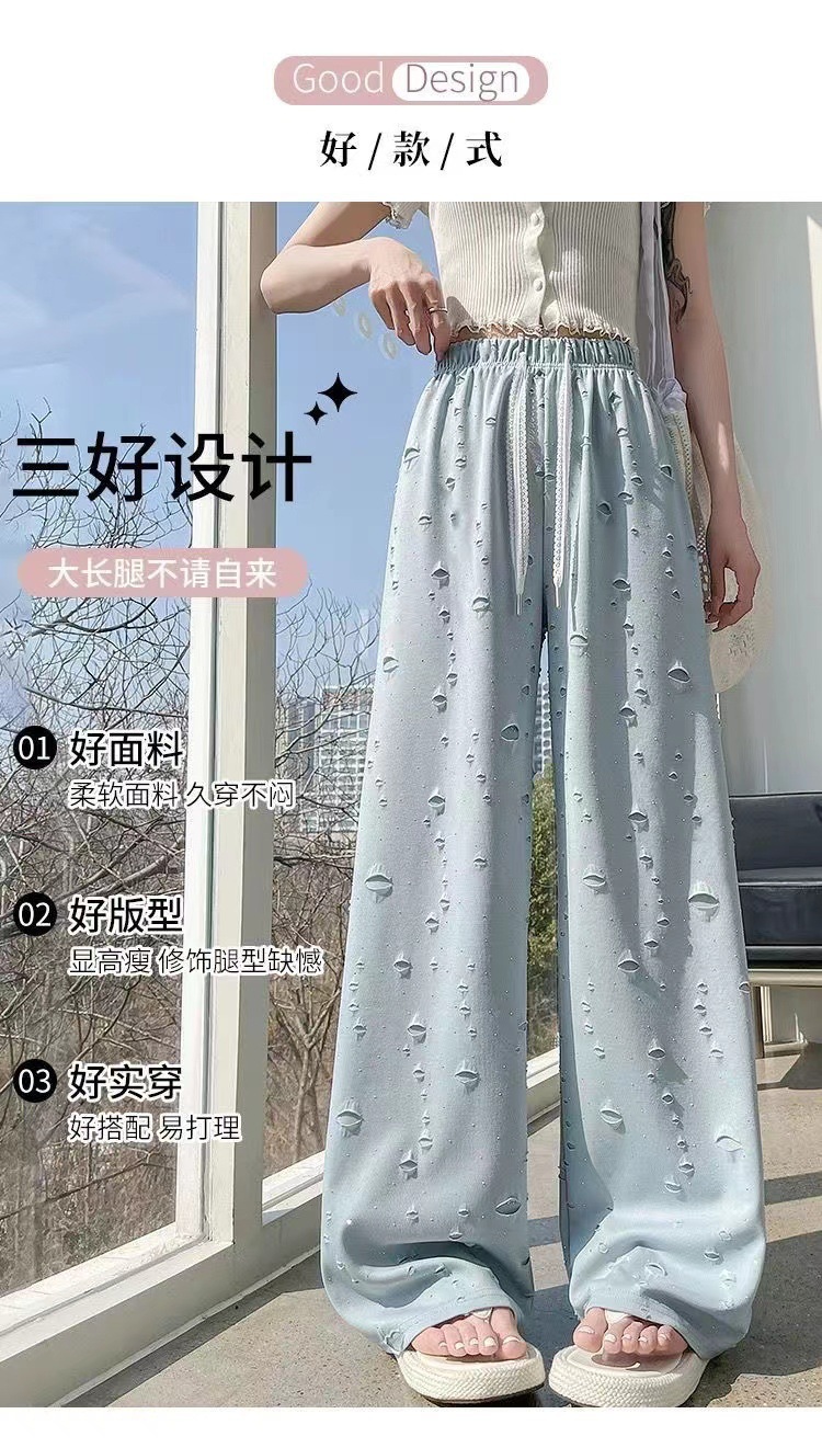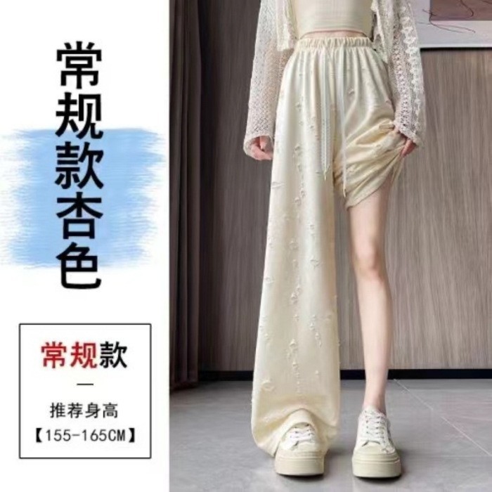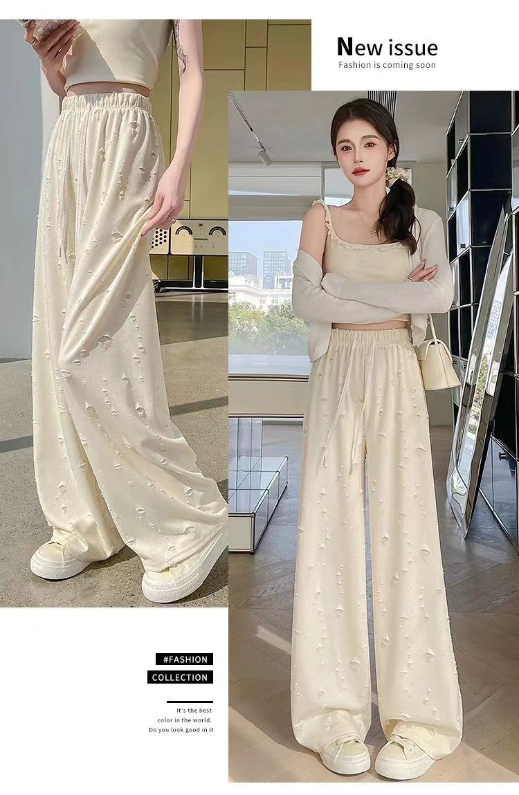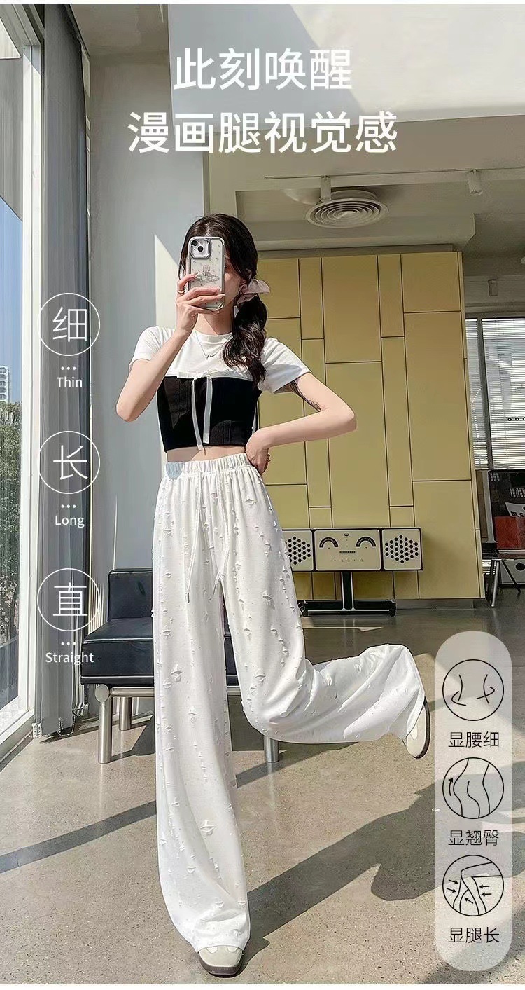 Уличные рваные длинные брюки в корейском стиле на шнурке, повседневные американские брюки Ямамото с высокой талией, милые свободные прямые широкие брюки со стразами