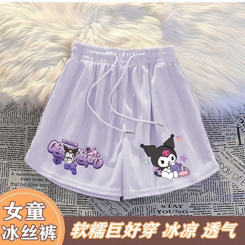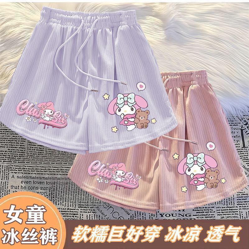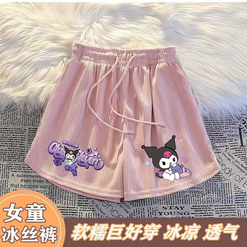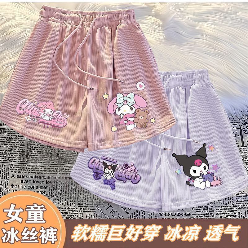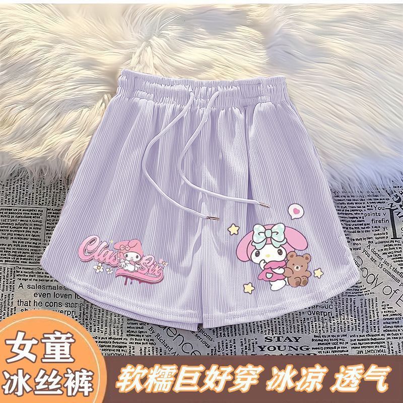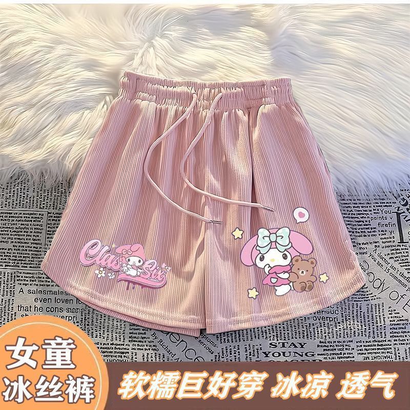 Шорты из ледяного шелка для девочек, летний наряд для маленьких девочек, новые детские тонкие летние штаны с героями мультфильмов для малышей и маленьких детей.